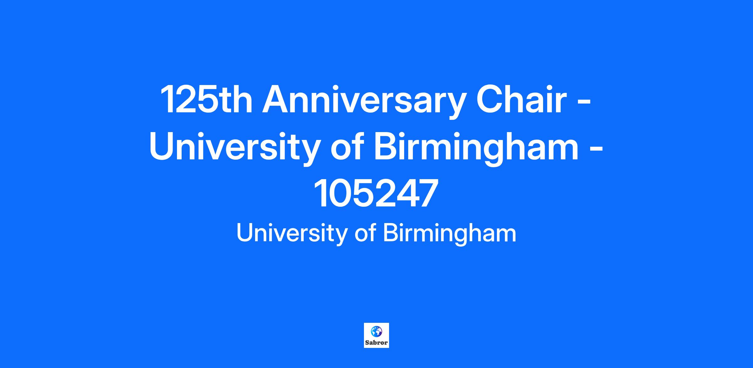 Position Details University of Birmingham Location: University of Birmingham, Edgbaston, Birmingham UK Competitive salary for an outstanding candidate Generous start up package Full Time, Permanent Closing date: 11th January 2026 (Phase three closing date) In 2025, we celebrate 125 years of university status by Royal Charter. To mark this milestone, we are making a significant investment in our research by appointing 125 new Anniversary Fellows and Chairs. In these appointments, we will provide you with the protected research time, resources, and support you need to advance your research. You will also benefit from our many connections with partners in academia, industry and policy, and with our multidisciplinary community of academics. As someone with an outstanding track record in exemplary research, evidenced by high quality impact and funding, this permanent appointment will offer you a sustained focus on advancing your research. With a competitive salary, relocation expenses, and a sector leading start-up package to establish your research at Birmingham, this is a stand-out opportunity. We are seeking diverse talent from across the world to help us make new discoveries and tackle global challenges. As a leader in your field, this is a unique opportunity to shape your career at a prestigious institution. You will work with the brightest minds at the forefront of different subject areas, to tackle the most pressing global challenges, have the opportunity to collaborate across our strong networks of partners, and to be mentored and supported by senior leaders at the University. Our University is home to a vibrant community of individuals, and we continue to seek different perspectives from a broad range of academics. We are continuing to diversify our workforce and particularly encourage applications from women, and people from minoritised ethnic groups. Birmingham is an outstanding place to live and carry out your research. We are a family friendly employer, focused on supporting staff to develop and grow their career with us. Find out more about our range of staff benefits. You will be critical in driving the excellence of our research to make an even greater difference to the world around us. Join us as we celebrate our 125th anniversary, and be part of our ambitious, exciting future. Learn more about our appointed anniversary researchers by visiting the 125th Anniversary Fellows and Chairs directory. Person Specification A PhD or equivalent qualification or body of work. An outstanding track record of internationally excellent publications and research output. Evidence of attracting significant funding, planning and delivering exemplary research. Demonstrable experience of inspirational leadership and successful research and teaching collaborations. Role model academic citizenship, giving your time generously and getting actively involved with university life. Demonstrable evidence of internationally recognised and world leading research excellence through highly cited publications. Proven ability to plan and lead the delivery of impactful research programmes. Evidence of successful collaborations with other teams/institutions and significant success in obtaining external grants. Experience of attracting and supervising high quality doctoral students and early career researchers. Track record in interdisciplinary working in research and bringing multi-disciplinary teams together to deliver high levels of research productivity. Track record of leading innovative curriculum design and implementation. For more information and to download Further Particulars, please visit the 125th Anniversary Fellows and Chairs website We welcome applications from international applicants and can offer support for work visas. We believe there is no such thing as a 'typical' member of University of Birmingham staff and that diversity in its many forms is a strength that underpins the exchange of ideas, innovation and debate at the heart of University life. We are committed to proactively addressing the barriers experienced by some groups in our community and are proud to hold Athena SWAN, Race Equality Charter and Disability Confident accreditations. We have an Equality Diversity and Inclusion Centre that focuses on continuously improving the University as a fair and inclusive place to work where everyone has the opportunity to succeed. You can find out more about our work to create a fairer university for everyone on our website.