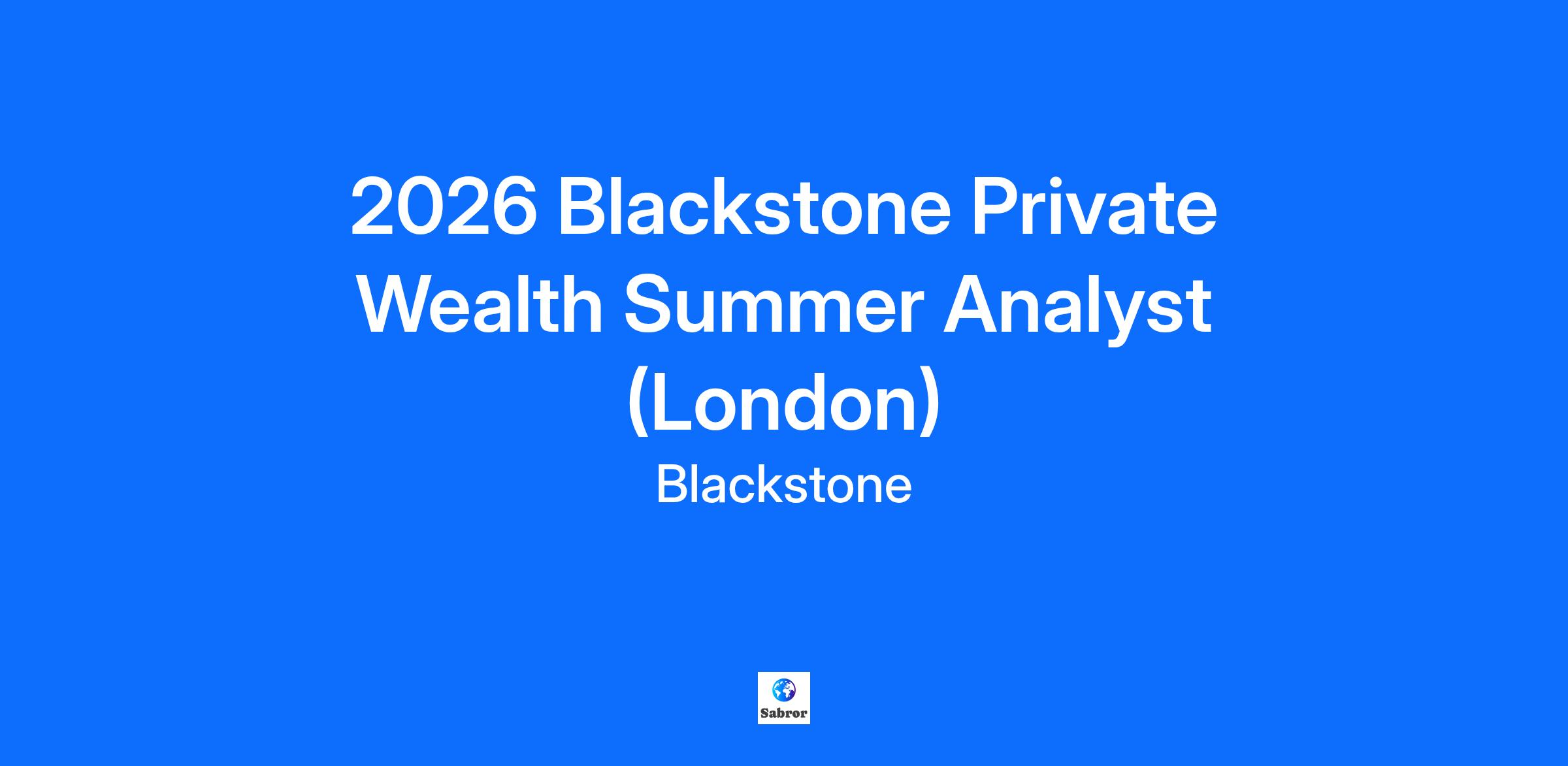 Blackstone is the world’s largest alternative asset manager. We seek to create positive economic impact and long-term value for our investors, the companies we invest in, and the communities in which we work. We do this by using extraordinary people and flexible capital to help companies solve problems. Our $1.1 trillion in assets under management include investment vehicles focused on private equity, real estate, public debt and equity, infrastructure, life sciences, growth equity, opportunistic, non-investment grade credit, real assets and secondary funds, all on a global basis. Further information is available at www.blackstone.com. Follow @blackstone on LinkedIn, X, and Instagram. 2026 Blackstone Private Wealth Summer Analyst Blackstone Private Wealth Blackstone Private Wealth was established to answer the growing demand for Blackstone products from high-net worth investors. Partnering with many of the world’s largest private banks and wealth management firms as well as family offices, Blackstone’s Private Wealth team packages and delivers the full breadth of Blackstone’s alternative product capability to these firms and their clients and provides ongoing product and advisor support, as well as education and training around alternatives. Programme Description Blackstone's Summer Analyst Program is a 10 week in-person experience, offering participants extensive exposure across the firm. This program provides Summer Analysts with valuable guidance through mentorship, continuous feedback, technical and soft skill training, networking opportunities with professionals across the firm and the unique chance to fully immerse themselves in Blackstone's culture. Job Description Blackstone’s Private Wealth Summer Analyst program is a unique experience among financial firms, enabling analysts to gain exposure to all aspects of private wealth business. The analyst role is focused on supporting several areas of Blackstone Private Wealth in capacities ranging from fund development, marketing , capital raising to product management, client servicing and business analytics. Summer Analyst work may include: Supporting our client management teams with fund due diligence, onboarding, market intelligence and fundraising Analyzing business/market trends and providing targeted prospecting guidance to sales and service teams Collaborating across various Blackstone business units to drive and support Private Wealth initiatives and activities Presenting projects, analysis, and key insights to senior management Qualifications Blackstone seeks to hire individuals who work well in a team-driven working group, are highly motivated, intelligent, have sound judgment and have demonstrated excellence in prior endeavors. The successful candidate must possess: Strong verbal and written communication skills A desire to work in a team environment with dynamic roles A basic knowledge of accounting and finance Self-motivation to find solutions independently, and humility to acknowledge limits and uncertainties Sincere commitment to personal and professional development Excellent attention to detail Intellectual curiosity Good judgement To be considered for the 2026 Summer Analyst Programme, applicants must meet the following criteria: Currently enrolled as an undergraduate or master’s student Anticipated graduation date: Summer 2027 CV must include expected graduation month/year and grade CV must be in PDF format Please note applications are reviewed on an ongoing basis. Applications will close on Friday 31 October 2025 If you do not meet these criteria, please see Blackstone’s Careers website for other opportunities that may be available, including other entry level positions. The duties and responsibilities described here are not exhaustive and additional assignments, duties, or responsibilities may be required of this position. Assignments, duties, and responsibilities may be changed at any time, with or without notice, by Blackstone in its sole discretion. Blackstone is committed to providing equal employment opportunities to all employees and applicants for employment without regard to race, color, creed, religion, sex, pregnancy, national origin, ancestry, citizenship status, age, marital or partnership status, sexual orientation, gender identity or expression, disability, genetic predisposition, veteran or military status, status as a victim of domestic violence, a sex offense or stalking, or any other class or status in accordance with applicable federal, state and local laws. This policy applies to all terms and conditions of employment, including but not limited to hiring, placement, promotion, termination, transfer, leave of absence, compensation, and training. All Blackstone employees, including but not limited to recruiting personnel and hiring managers, are required to abide by this policy. If you need a reasonable accommodation to complete your application, please contact Human Resources at 212-583-5000 (US), +44 (0)20 7451 4000 (EMEA) or +852 3656 8600 (APAC). Depending on the position, you may be required to obtain certain securities licenses if you are in a client facing role and/or if you are engaged in the following: Attending client meetings where you are discussing Blackstone products and/or and client questions; Marketing Blackstone funds to new or existing clients; Supervising or training securities licensed employees; Structuring or creating Blackstone funds/products; and Advising on marketing plans prepared by a sales team or developing and/or contributing information for marketing materials. Note: The above list is not the exhaustive list of activities requiring securities licenses and there may be roles that require review on a case-by-case basis. Please speak with your Blackstone Recruiting contact with any questions. To submit your application please complete the form below. Fields marked with a red asterisk * must be completed to be considered for employment (although some can b