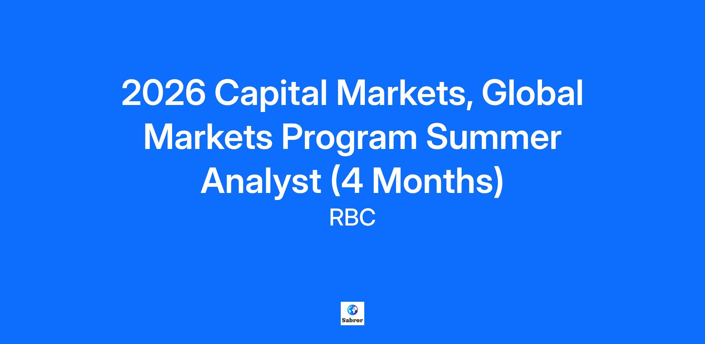 Job Description RBC Capital Markets is a part of the Royal Bank of Canada, one of the largest providers of financial services in the world. RBC ranks among the top five banks in North America by market capitalization and has one of the highest credit ratings of any financial institution in the world. Our Global Markets division provides industry leading sales, trading, structuring, research and advisory services across a number of different asset classes, to institutions, corporations, governments and high net worth clients around the world. We strive to add value for our clients by providing focused, in-depth expertise in a range of products, services, sectors and markets. What is the opportunity? Summer 2026 internship within RBC Capital Markets Montreal office for energetic, bright and talented undergraduates and graduates. Successful candidates will be placed in Fixed Income, Currencies & Commodities team. The Summer program extends for 16 weeks and provides interns the opportunity to gain in-depth, hands-on experience while working and learning alongside our experienced market professionals. Based on performance during Summer 2026 interested students will be getting an opportunity to be considered for full time opportunities post-graduation within the Global Markets Program. What will you do? Summer Analysts will be assigned various projects that may include: Key new business initiatives Market and/or credit analysis Marketing campaigns Client pitches and presentations Equity or debt sales and trading exposure What do you need to succeed? Must-have: Candidates must be graduating from their undergraduate programs in either December 2026 or Spring 2027 Desire to learn and an eagerness to make a meaningful contribution to the team environment at RBC Capital Markets Track record of outstanding academic achievement Proven technical and analytical skills Diversity of extracurricular activities Strong oral and written communication skills Initiative and the ability to play a key role as a team member in a fast-paced and challenging work environment Bilingualism (English and French) required, as you will regularly do business with RBC partners and/or employees across Canada with English and French speaking needs What’s in it for you? We thrive on the challenge to be our best, progressive thinking to keep growing, and working together to deliver trusted advice to help our clients thrive and communities prosper. We care about each other, reaching our potential, making a difference to our communities, and achieving success that is mutual. Leaders who support your development through coaching and managing opportunities Ability to make a difference and lasting impact Work in a dynamic, collaborative, progressive, and high-performing team In order for your application to be considered, please upload your COVER LETTER and RESUME as ONE PDF FILE. We thank all interested candidates; however, only those selected for an interview will be contacted. Candidates will be shortlisted on a rolling basis. We thrive on the challenge to be our best, progressive thinking to keep growing, and working together to deliver trusted advice to help our clients thrive and communities prosper. We care about each other, reaching our potential, making a difference to our communities, and achieving success that is mutual. Job Skills Additional Job Details Address: 1 PLACE VILLE MARIE:MONTRÉAL City: Montréal Country: Canada Work hours/week: 37.5 Employment Type: Full time Platform: CAPITAL MARKETS Job Type: Student/Coop (Fixed Term) Pay Type: Salaried Posted Date: 2024-12-12 Application Deadline: 2025-09-22 Note: Applications will be accepted until 11:59 PM on the day prior to the application deadline date above Inclusion and Equal Opportunity Employment At RBC, we believe an inclusive workplace that has diverse perspectives is core to our continued growth as one of the largest and most successful banks in the world. Maintaining a workplace where our employees feel supported to perform at their best, effectively collaborate, drive innovation, and grow professionally helps to bring our Purpose to life and create value for our clients and communities. RBC strives to deliver this through policies and programs intended to foster a workplace based on respect, belonging and opportunity for all. Join our Talent Community Stay in-the-know about great career opportunities at RBC. Sign up and get customized info on our latest jobs, career tips and Recruitment events that matter to you. Expand your limits and create a new future together at RBC. Find out how we use our passion and drive to enhance the well-being of our clients and communities at jobs.rbc.com. Royal Bank of Canada is a global financial institution with a purpose-driven, principles-led approach to delivering leading performance. Our success comes from the 84,000+ employees who bring our vision, values and strategy to life so we can help our clients thrive and communities prosper. As Canada’s biggest bank, and one of the largest in the world based on market capitalization, we have a diversified business model with a focus on innovation and providing exceptional experiences to more than 16 million clients in Canada, the U.S. and 34 other countries. Learn more at rbc.com. We are proud to support a broad range of community initiatives through donations, community investments and employee volunteer activities. See how at rbc.com/community-social-impact.