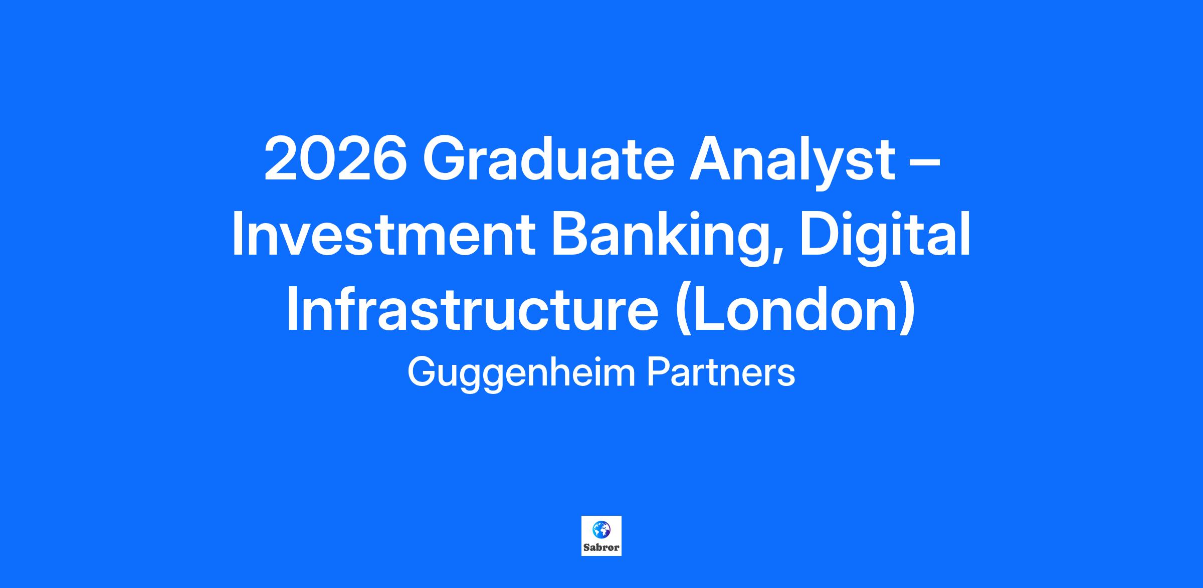 Job Description: Guggenheim Securities (“GS”) is seeking an exceptional Analyst to join its Digital Infrastructure Investment Banking group based in London. Our London-based Digital Infrastructure team is an integral part of GS’ global TMT franchise and leads the coverage and execution of transactions for TMT companies across Europe. The group advises clients on a broad range of financial and strategic matters, including mergers and acquisitions, equity/equity-linked and debt financings, joint ventures, restructurings, and private capital raises. Graduate Analysts at GS are valued members of lean, high-performing deal teams. You will work closely with senior bankers on live transactions and strategic advisory assignments, gaining exposure to clients and helping to drive execution from day one. The role offers a highly dynamic environment that accelerates professional development through meaningful, hands-on experience on high-profile assignments. In a client services business like ours, our people are the product, the service, and the offering. We invest heavily in professional development through best-in-class Investment Banking training—both formal and on-the-job—to build your professional toolkit across M&A process management, financial modelling, data analysis, commercial judgement, presentation skills, professional communication (verbal, written and virtual), negotiations, and more. We are looking for ambitious, intellectually curious individuals with a strong work ethic who can excel in an unstructured environment where initiative, creativity, maturity, and enthusiasm for learning are highly valued. The role is suited to candidates with a desire to build a long-term career in investment banking with a view to earning a promotion to Associate at the culmination of their Analyst program. Essential Job Functions Support execution of M&A and capital raising transactions across the Digital Infrastructure sector Assist in the preparation of client presentations, pitch materials and marketing documents Support deal teams in developing, maintaining and using complex financial models and valuation analyses under guidance from senior team members Draft internal and client-facing materials including memoranda, management presentations, and marketing content Conduct company, market, and sector research to support deal execution and business development Collaborate with deal teams and external parties including clients, lawyers, and accountants throughout the transaction process Management of several projects at once and work effectively as an individual and as part of a team Preferred Qualifications Demonstrated interest in investment banking, finance, or corporate strategy (through internships or academic focus - relevant internship experience in investment banking preferred) Demonstrable experience with Microsoft Excel, PowerPoint and Outlook Commitment to meet the demands of high volume and high-end client services Strong analytical and problem-solving skills High level of attention to detail and ability to manage multiple tasks Excellent written and verbal communication skills Resourcefulness, intellectual curiosity, enthusiasm and a genuine interest in finance High level of maturity, attention to detail, and ability to work with external executives and senior management Self-starter with the ability to manage multiple workstreams under tight deadlines Desire to join a rapidly growing, entrepreneurial platform Interest in technology and digital infrastructure is a plus Basic Qualifications Bachelor’s degree (or final-year student expecting to graduate in the current academic year, 2026) Strong academic performance with coursework in finance, economics, business, engineering, or related fields preferred Work Location Currently, this role is expected to be in the London office at least 4 days per week. About Us: Guggenheim Securities is the investment banking and capital markets business of Guggenheim Partners, a global investment and advisory firm. Guggenheim Securities offers services that fall into four broad categories: Advisory, Financing, Sales and Trading, and Research. Guggenheim Securities is headquartered in New York, with additional offices in Chicago, Boston, Atlanta, San Francisco, and Houston. For more information, please visit GuggenheimSecurities.com, follow us on LinkedIn or contact us at GSIBCampusRecruiting@guggenheimpartners.com or 212.518.9200. Guggenheim Securities is the investment banking and capital markets business of Guggenheim Partners, a global investment and advisory firm. We offer services in Advisory, Financing, Sales and Trading, and Research. Discover what it is like to work with us through the stories of our colleagues. We are headquartered in New York, with additional offices in Chicago, Boston, Atlanta, San Francisco, Houston, and in London, UK. For more information, please email GS IB Campus Recruiting or call +1 212.518.9200