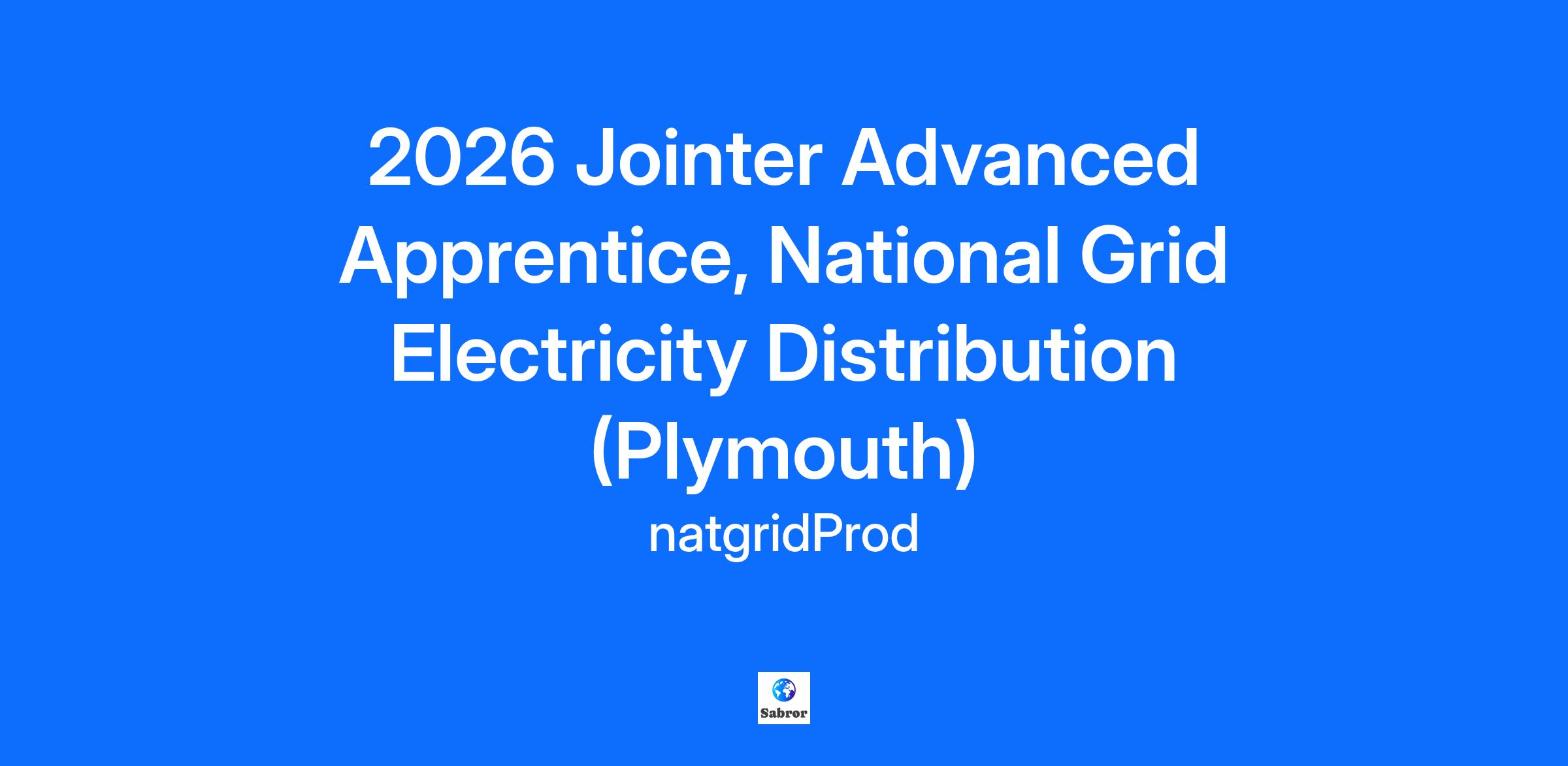 2026 Jointer Advanced Apprentice, National Grid Electricity Distribution (Plymouth)