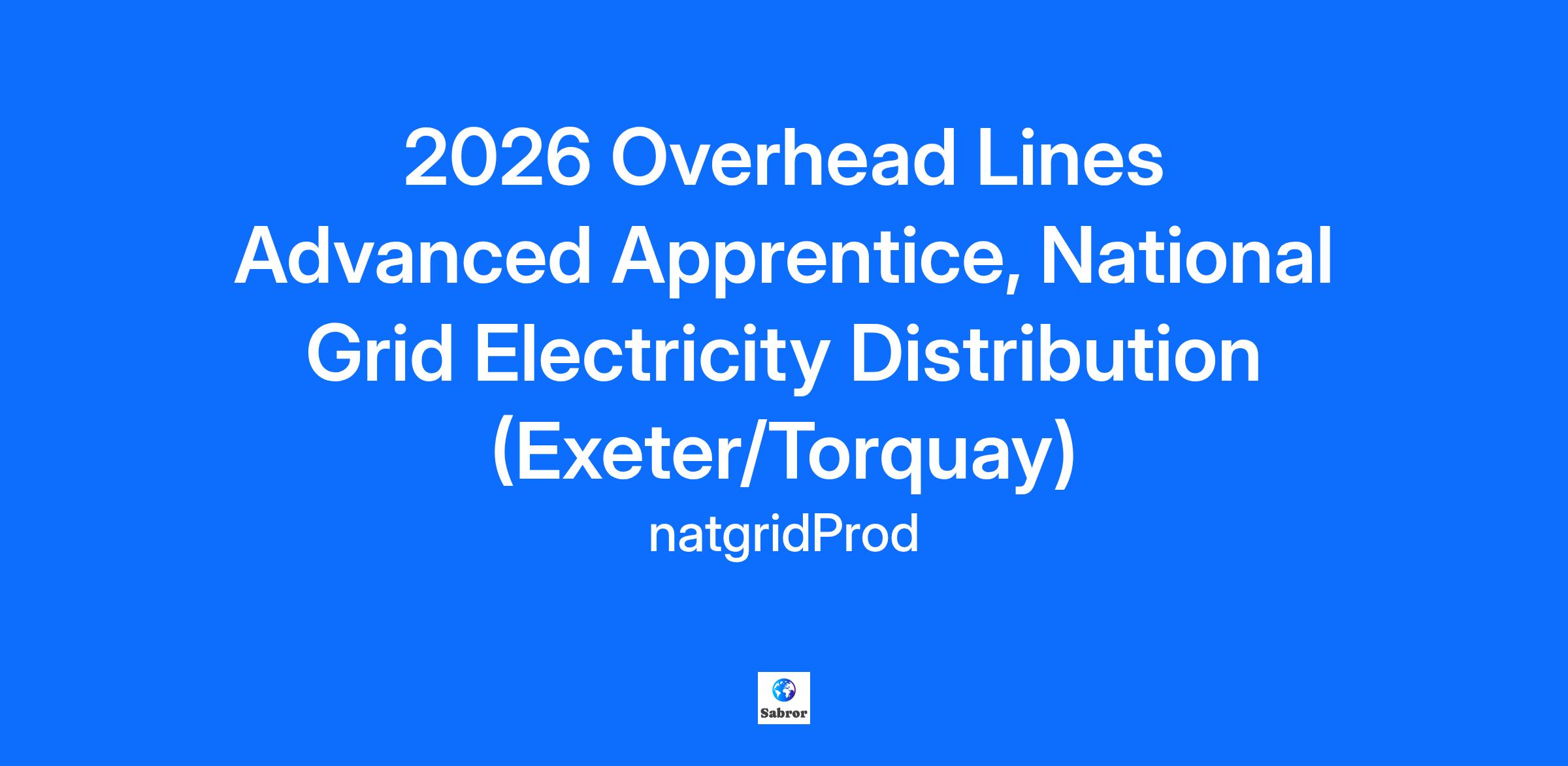 2026 Overhead Lines Advanced Apprentice, National Grid Electricity Distribution (Exeter/Torquay)