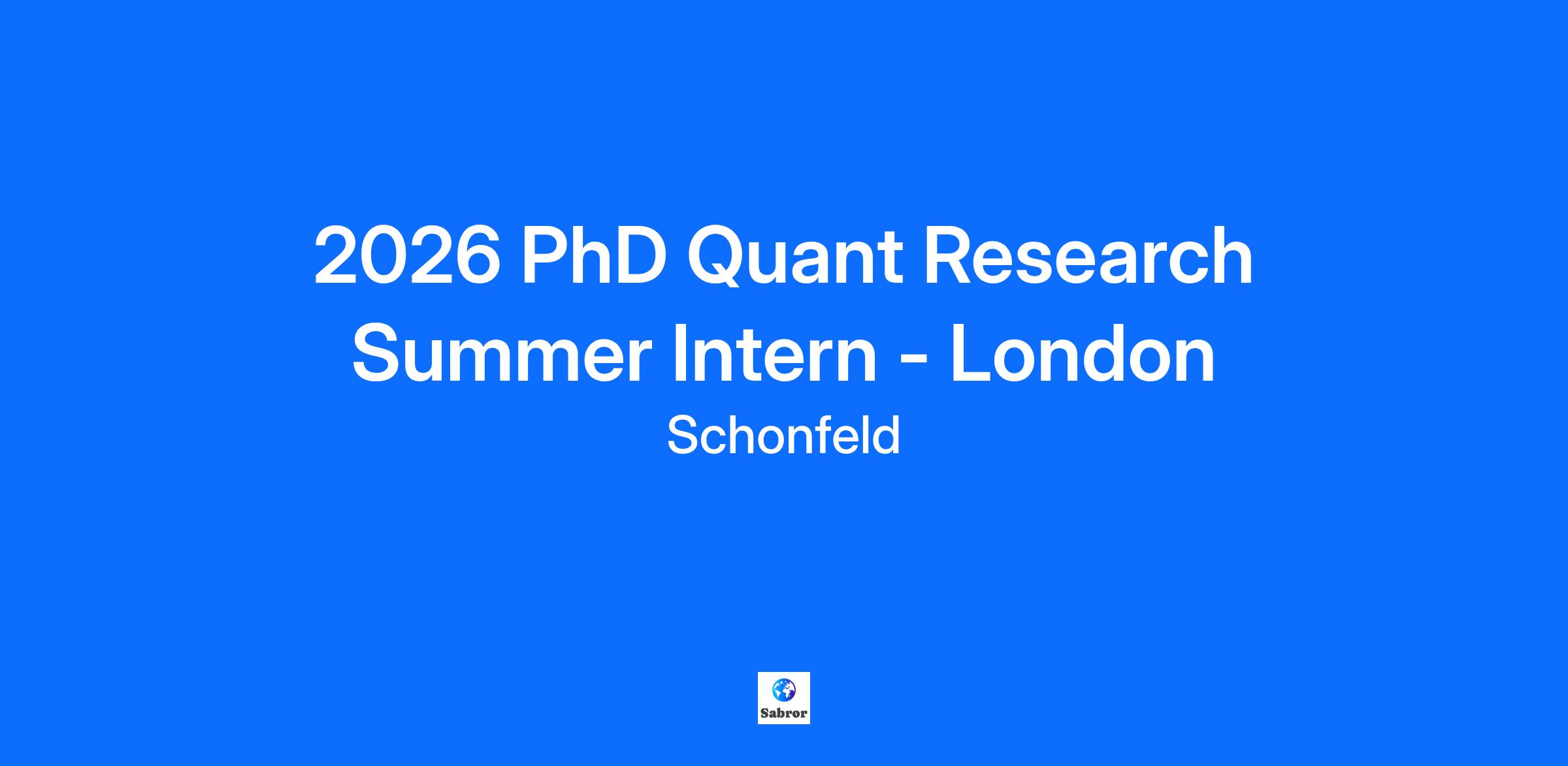 2026 PhD Quantitative Research Summer Internship - London The Role We are seeking exceptional PhD candidates to join our Quantitative Research teams in the London metro area where they will work with other researchers and developers on various research projects, including the design of novel predictive signals and the enhancement of our algorithms for prediction, trade execution, portfolio construction, risk management, among others. Interns will have an opportunity to meaningfully contribute to all facets of running a successful quantitative trading business and help it grow and diversify. What you’ll do Depending on the portfolio manager team you join, as a Quantitative Researcher Intern you will be directly responsible for furthering our alpha research. You will understand the economics of a fundamental domain, and the corresponding insights that can be gathered from associated alternative data offerings. You will identify compelling differentiating factors, design novel predictive signals, backtest & validate hypotheses. Over the 10-week internship program, you will have the opportunity to collaborate with senior team members to learn what it takes to be a successful quantitative researcher. Additionally, you’ll get the opportunity to network and socialize with peers throughout the internship. What you need: Current PhD student in a quantitative or technical field such as statistics, mathematics, physics, electrical engineering, or computer science (ideally with one year left in your academic program) Excellent programming skills in languages such as Python, C, C++, Java, SQL, or R Strong knowledge of probability and statistics (e.g., machine learning, time-series analysis and forecasting, pattern recognition, NLP). The ability to communicate research ideas clearly and succinctly Creative problem-solving skills and experience working with real-world datasets Strong attention to detail We’d love if you had: Previous financial industry experience although it is not required An advanced degree in a quantitative or technical field Our Internship Kick-start your career in finance with the Schonfeld Summer Internship! Over the course of 10 action-packed weeks, you will have the opportunity to build solutions that tackle real-world challenges and leave a lasting impact on the firm. As an intern, you’ll join a close-knit team that is ready to support your growth and accelerate your career. We will pair you with a dedicated manager and a mentor who’ll guide your development over the course of the internship and beyond. Throughout the program, you will have the chance to connect with senior leaders through a series of learning sessions, attend hands-on skills workshops, network at social events and get a behind-the-scenes look at how various functions power the firm. We’ll empower you to bring your ideas to life and make an impact. Who We Are Schonfeld is a global multi-manager hedge fund that strives to deliver industry-leading risk-adjusted returns for our investors. We leverage both internal and external portfolio manager teams around the world, seeking to capitalize on inefficiencies and opportunities within the markets. We draw from decades of experience and a significant investment in proprietary technology, infrastructure and risk analytics to invest across four main strategies: Quant, Tactical, Fundamental Equity and Discretionary Macro & Fixed Income. Our Culture At Schonfeld, we’ll invest in you. Attracting and retaining top talent is at the heart of what we do, because we believe that exceptional outcomes begin with exceptional people. We foster a culture where talent is empowered to continually learn, innovate and pursue ambitious goals. We are teamwork-oriented, collaborative and encourage ideas—at all levels—to be shared. As an organization committed to investing in our people, we provide learning and educational offerings and opportunities to make an impact. We encourage community through internal networks, external partnerships and service initiatives that promote inclusion and purpose beyond the firm’s walls.