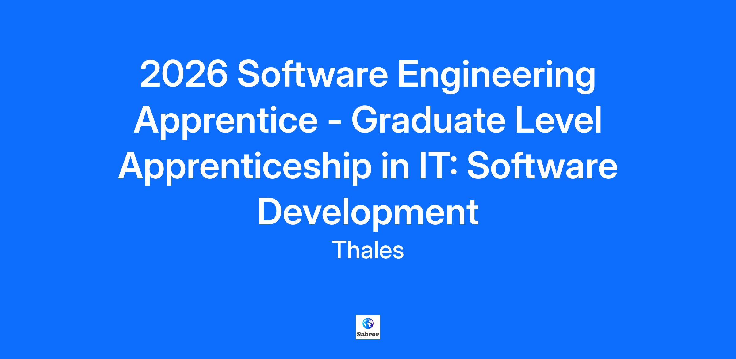 Location: Glasgow, United Kingdom Thales people architect solutions that are relied upon to deliver operational advantage at every decisive moment throughout the mission. Defence and armed forces customers rely on us to deliver the full range of defensive systems for land, sea, and air. From early warning, to threat neutralisation, our platforms cover all levels from very short-range systems, to extended protection across the entire battle-space including Airspace Mobility Solutions, Vehicles and Tactical Systems and Missile Defence, Optronics, and Radar. Together we offer fantastic opportunities for committed employees to learn and develop their career with us. At Thales UK, we research, develop, and supply technology and services that impact the lives of millions of people each day to make life better, and keep us safer. We innovate across the major industries of Aerospace, Defence, Security and Space. Your health and well-being matters to us and that’s why we offer you the flexibility to do what’s important to you; whether that’s part time hours, job sharing, home working, or the ability to flex your start and finish times. Where possible, we support a working pattern that suits your lifestyle and helps you reach your ambitions. 2026 Software Engineering Apprentice - Graduate Level Apprenticeship in IT: Software Development (BSc) Start Date: 07 September 2026 Salary: £24,000 per annum Employee type: Permanent Location: Glasgow Working Schedule: 37 hours per week. University days are normally a Friday, where you would either attend University in person or virtually. Mon, Tue, Wed, Thu are the Thales working days where you will be on site at Thales in Glasgow or working from home where suitable. Are you passionate about Software, Engineering, Coding and all things Programming? Are you interested in learning how Software Engineering operates in a large business and operates with Hardware Systems to develop cutting edge technology? Do you have a willingness to learn and develop new skills from leading experts in Software Engineering areas? Are you looking for an employer who will sponsor you through a degree, whilst providing valuable and exciting on-the-job experience within a global, innovative and industry-leading organisation? If the answer is yes, then please read on to see what Thales has to offer… What the role has to offer: Earn while you learn Job specific training experience Recognised qualifications A support network of students currently on the programme Various benefits and opportunities to grow your essential skills Permanent role from day one Tuition fees for university or approved training providers are fully covered In the role of a Software Graduate Apprentice, you will work with the Engineering and Industry teams to design Software Solutions for our Engineering Systems and Hardware. You’ll work collaboratively with other teams in the business to ensure that you deliver the most effective software systems for the business and grow your skills and knowledge whilst doing so. In this role you will have the opportunity to support “embedded systems” which will allow for you to test the practicalities of your coding on real time cutting edge hardware. Apprentice Programme: As a Software Engineer Apprentice you will be studying at the University of Strathclyde towards a BSc in Software Development. For the duration of this 4 year programme you will combine university studies with practical application, working within our Software function in Glasgow. You will be given one day per week in which to focus on your studies. For the other four days you will be working in the business, applying your university learning in a real-life engineering environment. Apprentices will be required to attend classes on campus for 10 days annually, once a month during term-time. Upon completion of the programme you will move into a permanent role within Thales in Glasgow. Requirements: 4 Highers (BBBB) including either Maths, Computing Science or Physics National 5 English at grade C or above Benefits: 201 hours annual leave (plus a company day and bank holidays) Company Pension Health Care Cash Plan Life Insurance Discount Portal Performance-related pay uplifts 80 Hours Volunteering (first two years) Please note, assessment centres for shortlisted candidates will be held between February - May 2026. Induction week for all Graduates and Apprentices will take place from Monday 7 September - Friday 11 September 2026. Closing date: Our applications will close at 11.59pm on Thursday 12 February 2026, this is the only time we will be accepting applications this year. Please note, we will be in contact by the end of February 2026 with details of next steps. PLEASE NOTE THAT ROLES MAY CLOSE EARLIER THAN THE ADVERTISED DEADLINE IF WE RECEIVE A HIGH NUMER OF APPLICATIONS. WE ENCOURAGE YOU TO APPLY AS SOON AS POSSIBLE TO AVOID MISSING OUT ON THIS OPPORTUNITY. Recruitment Process: For further information about our Future Talent recruitment process, including hints and tips, or to connect with a member of the Future Talent Team, a Graduate, or an Apprentice, please visit Thales Future Talent - Connectr. Due to the nature of the work that we do at Thales, all of our roles are subject to security restrictions. All successful candidates must possess the permanent right to work in the UK, and will be required to go through Government security clearance at BPSS Level and to obtain full Security Clearance (SC) in line with the United Kingdom Security Vetting (UKSV) requirements below, prior to starting with us. This role requires Security Clearance (SC). It would be advantageous if currently held, however, if not currently held, it is a requirement that the successful applicant undergo, achieve, and maintain SC Clearance prior to commencing employment. Please visit the UKSV website for further guidance. To be eligible for full SC, you generally need to have resided in the UK for the last 5 years. As 