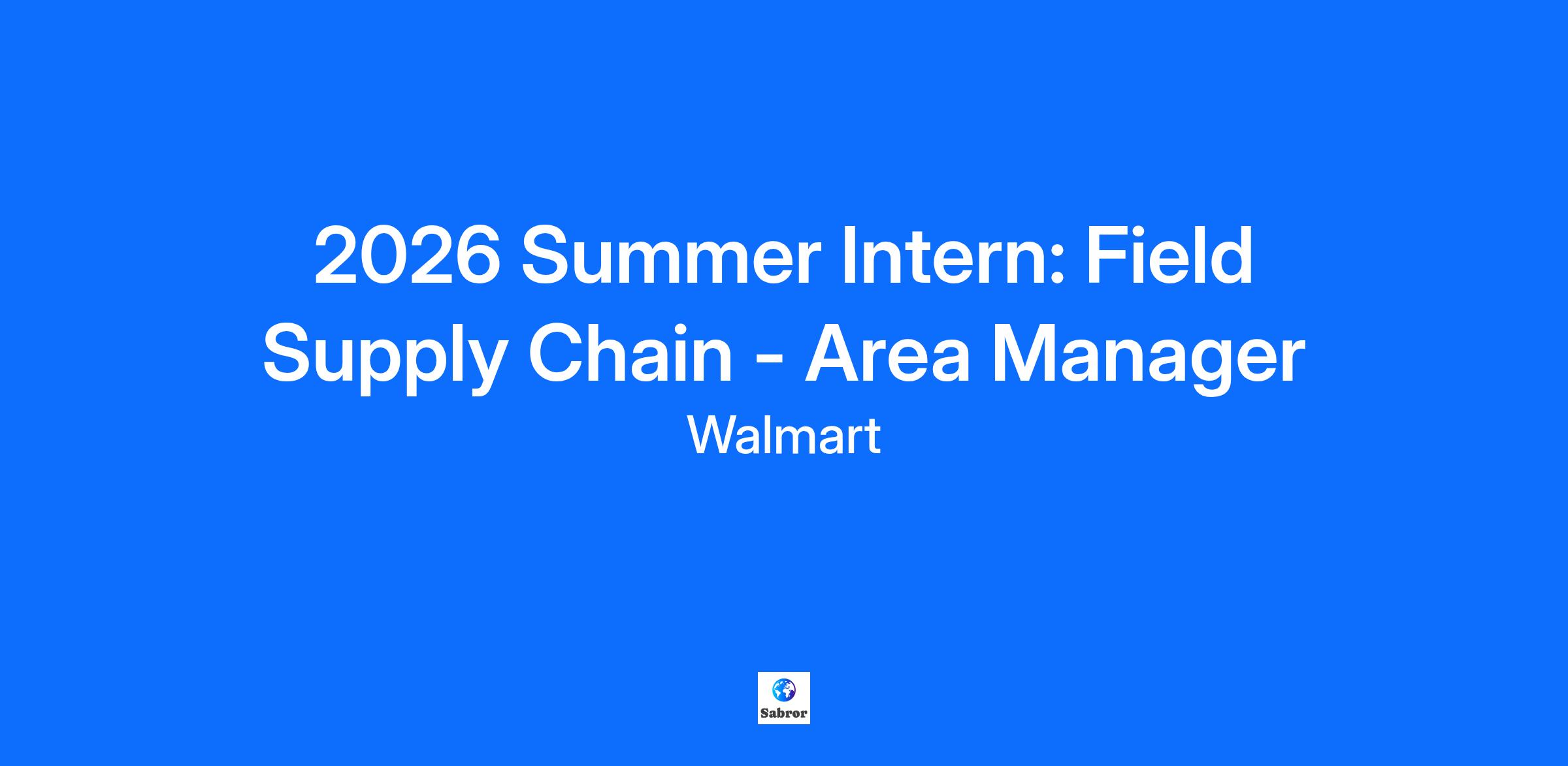 2026 Summer Intern: Supply Chain - Area Manager (Field)