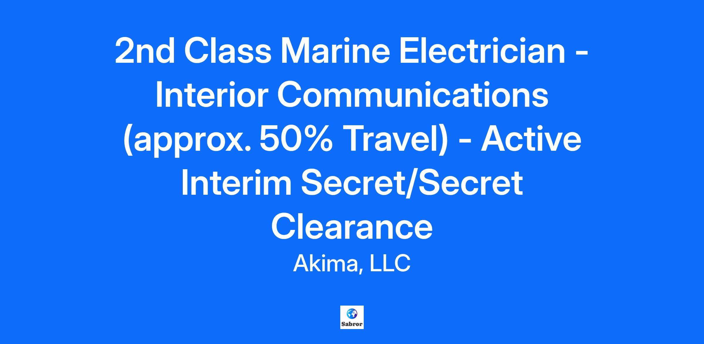 Akima Systems Engineering (ASE) is looking a 2nd Class Marine Electrician to work in Suffolk, Virginia. To join our team of outstanding professionals, apply today! 50% travel required within and outside of the continental United States. Work Schedule: Monday thru Saturday 10 hours a day (as needed). Responsibilities Marine Electricians install, connect, test, and maintain electrical systems for a variety of purposes, including interior communications. As a Marine Electrician, you will be essential in maintaining and repairing electrical systems on marine vessels. Must have knowledge and experience in troubleshooting, repairing, and maintaining electronic equipment on board vessels and in shipyard facilities. Marine Electrician applies basic and some advanced technical knowledge to solve routine problems by interpreting manufacturers' manuals or similar documents. Work requires familiarity with the interrelationships of circuits and judgment in planning work sequence, in selecting tools, testing instruments, and is reviewed for compliance with accepted practices. This technician works under immediate supervision and achieves technical guidance, as required, from supervisor or higher-level technician. Display levels of quality, integrity, safety, respect, engagement, and performance consistent with company values. Under guidance, install, operate, maintain, repair, and modify equipment and structures by performing alterations and installations for fleet modernization on US Navy surface ships. Perform all duties required to layout, fabricate, and install electrical wiring, coaxial cable, or fiber optic onboard Navy vessels. Read and interpret schematics and blueprints. Work from blueprints, engineering sketches, charts, work orders, technical documents including controlled work packages, formal work processes and procedures, test documents, reports and task or trip reports. Troubleshoot, repair, and install electrical equipment and cables. Assist with troubleshooting and diagnosing equipment to efficiently eliminate problems. Perform removal and installation of cables found overhead, along bulkheads, or under the deck. Repair and replace cables/connectors. Apply understanding of production processes towards completion of complicated and non-routine tasks related to installations on shipboard systems and related equipment at company, and/or field locations in accordance with established quality and safety procedures. May inspect completed work for conformance to specifications. Maintain effective supervisor and manager communications and relations. Remove, plan, execute, install, and modify electrical cable, cableways, conductors, connectors, strain relief, fasteners, and equipment aboard naval vessels. Complete electrical and data conductor disconnections and reconnections on existing and new equipment for a complete installation. Qualifications Clearance: Must have a DoD Secret clearance. Education: Must possess a high school diploma, GED or industrial/trade school certificate. Minimum of three (3) to five (5) years of experience in the operation, maintenance and repair of electrical systems and equipment on-board Navy vessels, U.S. Coast Guard vessels; MSC or Maritime vessels, and practical shipboard experience with HM&E systems and equipment. Must be familiar with one or more Interior Communications (IC) systems: MC (General Announcing/Mass Communications) HYDRA (Hierarchical Yet Dynamically Reprogrammable Architecture) IVN (Integrated Voice Network) IVCN (Integrated Voice Communications Network) SATCC (Shipboard Air Traffic Control Communications) SIWCS (Shipwide Inter Wireless Communication System) Must be able to access government installations by obtaining and maintaining a Biometric Defense Identification System (DBIS) credential to perform work on-board US Naval vessels or government assigned work. Must be able to work overtime and weekends upon managerial request. Must be able to travel outside the Suffolk, Virginia area, if required. Must have prior experience working with Fiber Optic cables and multi-pin connectors. Must possess or provide trade specific hand tools. Must have experience working in a team environment and be able to communicate effectively with others. Must have understanding and ability to accomplish NSI 009-73 requirements: Inspection, testing, installation, removal, and repair of shipboard electrical cabling and electronic equipment. Cable installations including banding, terminal boxes, connection boxes, connectors, equipment, penetrations, cableways, hangers and associated components MCT, MCP, and Stuffing Tube opening, packing, closing and testing Bonding and Grounding of Electrical Equipment NSI 009-25 – Air testing of penetrations Electrical troubleshooting and testing, using multimeters, and megohmmeters Must have experience assisting with troubleshooting, maintaining, installing, and repairing electrical distribution systems and its associated equipment and cabling. Must have experience with cable removal and installation including the proper methods of opening and securing various types of cable penetrations. Must be able to work under instruction removing, installing, and modifying electrical cable, cableways, conductors, connectors, strain relief, fasteners, cable penetrations and equipment aboard naval vessels. Must be familiar with reading electrical drawings and schematics. Must be familiar with the proper and safe usage of multimeters and meggers. Must be familiar with NAVSEA Standard items. Preferred Qualifications: Candidates with current NAVSEA Multipin Connector Certifications (NSI 009-73) are highly preferred. Candidates with current NAVSEA Fiber Optic certification (NSI 009-123) are preferred. Candidates with NAVSEA Cableway Improvement Program certifications are preferred. Candidates who have graduated from and/or completed a vocational school or a skilled trades certificate program are preferred. Candidates with a current or active DoD S