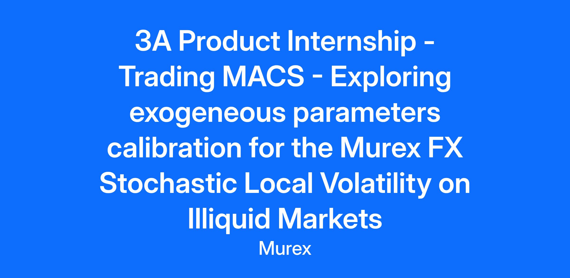Murex is a global fintech leader in trading, risk management and processing solutions for capital markets. Operating from our 19 offices, 3 000 Murexians from over 60 different nationalities ensure the development, implementation and support of our platform which is used by banks, asset managers, corporations and utilities, across the world. Join Murex and work on the challenges of an industry at the forefront of innovation and thrive in a people-centric environment. You’ll be part of one global team where you can learn fast and stay true to yourself. The Team: You will become a part of the Front Office (FO) Trading Product Development Domain (PDD) which is at the heart of MX.3 software evolution, where you will integrate the Financial Engineering team. Our multi-cultural team designs, validates and delivers Murex Advanced Analytics (MACS) which is a combination of a rich catalogue of derivative products covering all asset classes, and a large set of models for evaluation and risk management of derivatives. We work closely with the quant development and integration teams to enhance our products and models. We provide our quantitative expertise and collaborate with FO Trading PDD teams like Foreign Exchange Derivatives, Equity Derivatives, Non-Linear Rates, Commodity Derivatives to build trading solutions. Similarly, we assist Client Services and regional offices across the globe to provide cutting-edge solutions to our clients. The Mission: Murex proposes two different Stochastic Local Volatility (SLV) models which are a combination of Stochastic Volatility and Local Volatility models allowing to combine strong suits of both models i.e., rich dynamic and more suitable for pricing of exotic derivatives; and the ability to match the vanilla options. One model is Murex first version of its SLV model, specifically suited for first-generation exotics whereas the most recent one and latest version is suitable for both first- and second-generation exotics. Each SLV model’s diffusion embed two different types of parameters: Parameters that are dynamically calibrated to match the vanilla options at each movement of market data. Exogenous parameters must be calibrated to exotics market to properly trade and manage the risk of FX exotic derivatives. The objective of the internship is to focus on the latter, the model exogenous parameters, and explore different methodologies for the calibration of these parameters in the context of illiquid markets where there are no liquid exotic market quotes on which to calibrate. Under supervision of the Front Office Financial Engineering team, you will: Learn about FX derivatives market, exotic payoffs and Murex stochastic local volatility models. Explore different methodologies for the calibration of the model exogenous parameters for illiquid markets, i.e. in the absence of liquid exotic quotes. Implement these methodologies in our payoff analytics web service using python. Test and evaluate the pertinence of these methodologies, especially by back testing them on liquid markets. Your Profile/Who you are? You are in the last year of a master’s degree looking for a 6-months internship. You are passionate about technology and financial mathematics. Strong academic background in a quantitative field (Computer Science, Engineering, Physics, Mathematics). Understanding of stochastic processes and financial mathematics. You master python including numpy, pandas, matplotlib. You can efficiently communicate in multicultural environment: English is a must. You have strong analytical and problem-solving skills. Why join us? Be part of a community of experts motivated by challenge and innovation and contribute to the continuous improvement of the MX.3 platform. Benefit from high-quality training on entry covering a range of functional, technical and interpersonal skills. Work in an agile, international, multicultural and growing environment. Murex is a global fintech leader in trading, risk management and processing solutions for capital markets. Operating from our 19 offices, 3 000 Murexians from over 60 different nationalities ensure the development, implementation and support of our platform which is used by banks, asset managers, corporations and utilities, across the world. Join Murex and work on the challenges of an industry at the forefront of innovation and thrive in a people-centric environment. Didn’t find a job to suit your profile? Register now, upload your CV, and we'll reach out when we identify a role that aligns with your skills and experience.