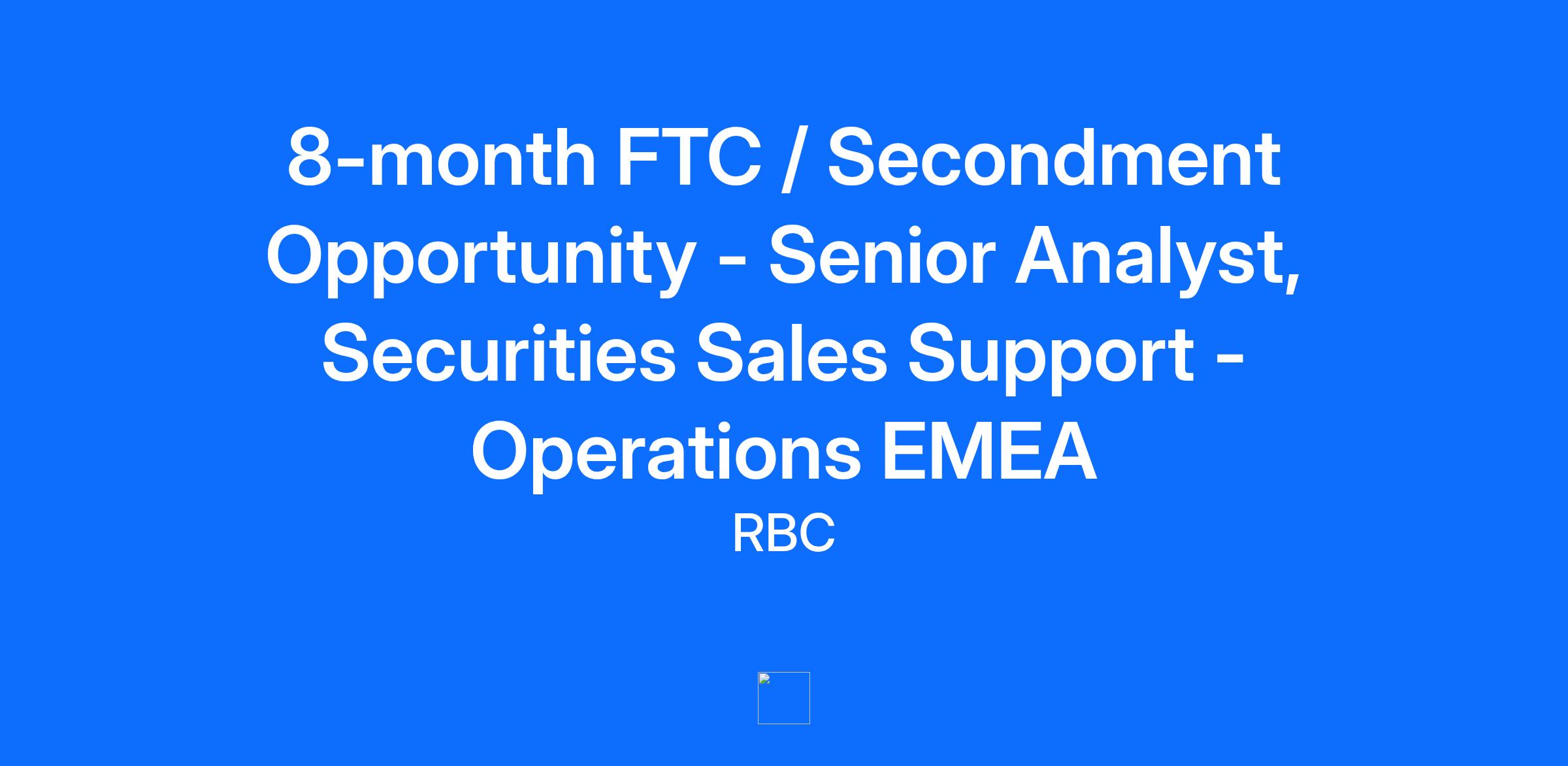 Job Description What is the opportunity? This is an exciting opportunity to be a part of the Europe, Middle East & Africa (EMEA) Business and Client Services team on an 8-month FTC or secondment. This team supports both RBC Europe Ltd and RBC London Branch Equities and Fixed Income sales support functions. This role ensures that all daily tasks / controls are completed in line with departmental procedures, whilst also assisting the Associate Director / Director on projects, process improvements or new business initiatives. RBC’s expectation is that all employees and contractors will work in the office with some flexibility to work up to 1 day per week remotely, depending on working arrangements. What will you do? Investigate processing issues and recommend a course of action to the Team Director, assisting in the execution of proposed changes. Monitor Middle Office systems (Salesbook, GBOI) and exceptions. Be responsible for booking all allocations of Block trades, including CTM, FIX, voice, ALEX, GTC, ECN. Ensure all relevant reports and reconciliations are performed, breaks are notated and cleared, then passed for sign off. Monitor shared mailboxes and actioning enquiries. Provide best in class client services to both internal and external clients, by ensuring their queries are responded to within agreed timeframes. To be a point of contact for the Sales/Trade teams and Settlements. Escalate unusual behaviour, as well as any processing issues to the Associate Director or above, in a timely manner following the Operations Escalation Policy. What do you need to succeed? Must-have Proven experience within Sales Support and Settlements, within an operations environment. Strong knowledge of Equity & Fixed Income products and processes. Excellent knowledge of external market systems, such as CTM / Alert / Bloomberg. Meticulous attention to detail. Effective Communicator, both verbal and written. Nice-to-have Experience within a Sales Support or Middle Office role. What is in it for you? We thrive on the challenge to be our best - progressive thinking to keep growing and working together to deliver trusted advice to help our clients thrive and communities prosper. We care about each other, reaching our potential, making a difference to our communities, and achieving success that is mutual. Leaders who support your development through coaching and managing opportunities. Opportunities to work with the best in the field. Ability to make a difference and lasting impact. Work in a dynamic, collaborative, progressive, and high-performing team. Agency Notice RBC Group does not accept agency resumés. Please do not forward resumés to our employees, nor any other company location. RBC Group only pay fees to agencies where they have entered into a prior agreement to do so and in any event do not pay fees related to unsolicited resumés. Please contact the Recruitment function for additional details. Job Skills Active Learning, Adaptability, Communication, Customer Service, Decision Making, Detail-Oriented, Group Problem Solving, Interpersonal Relationship Management, Product Services Additional Job Details Address: 100 BISHOPSGATE:LONDON City: London Country: United Kingdom Work hours/week: 35 Employment Type: Full time Platform: CAPITAL MARKETS Job Type: Contract (Fixed Term) Pay Type: Salaried Posted Date: 2025-12-22 Application Deadline: 2026-01-05 Note: Applications will be accepted until 11:59 PM on the day prior to the application deadline date above Inclusion and Equal Opportunity Employment At RBC, we believe an inclusive workplace that has diverse perspectives is core to our continued growth as one of the largest and most successful banks in the world. Maintaining a workplace where our employees feel supported to perform at their best, effectively collaborate, drive innovation, and grow professionally helps to bring our Purpose to life and create value for our clients and communities. RBC strives to deliver this through policies and programs intended to foster a workplace based on respect, belonging and opportunity for all. Join our Talent Community Stay in-the-know about great career opportunities at RBC. Sign up and get customized info on our latest jobs, career tips and Recruitment events that matter to you. Expand your limits and create a new future together at RBC. Find out how we use our passion and drive to enhance the well-being of our clients and communities at jobs.rbc.com. RBC is presently inviting candidates to apply for this existing vacancy. Applying to this posting allows you to express your interest in this current career opportunity at RBC. Qualified applicants may be contacted to review their resume in more detail. Royal Bank of Canada is a global financial institution with a purpose-driven, principles-led approach to delivering leading performance. Our success comes from the 84,000+ employees who bring our vision, values and strategy to life so we can help our clients thrive and communities prosper. As Canada’s biggest bank, and one of the largest in the world based on market capitalization, we have a diversified business model with a focus on innovation and providing exceptional experiences to more than 16 million clients in Canada, the U.S. and 34 other countries. Learn more at rbc.com. We are proud to support a broad range of community initiatives through donations, community investments and employee volunteer activities. See how at rbc.com/community-social-impact.