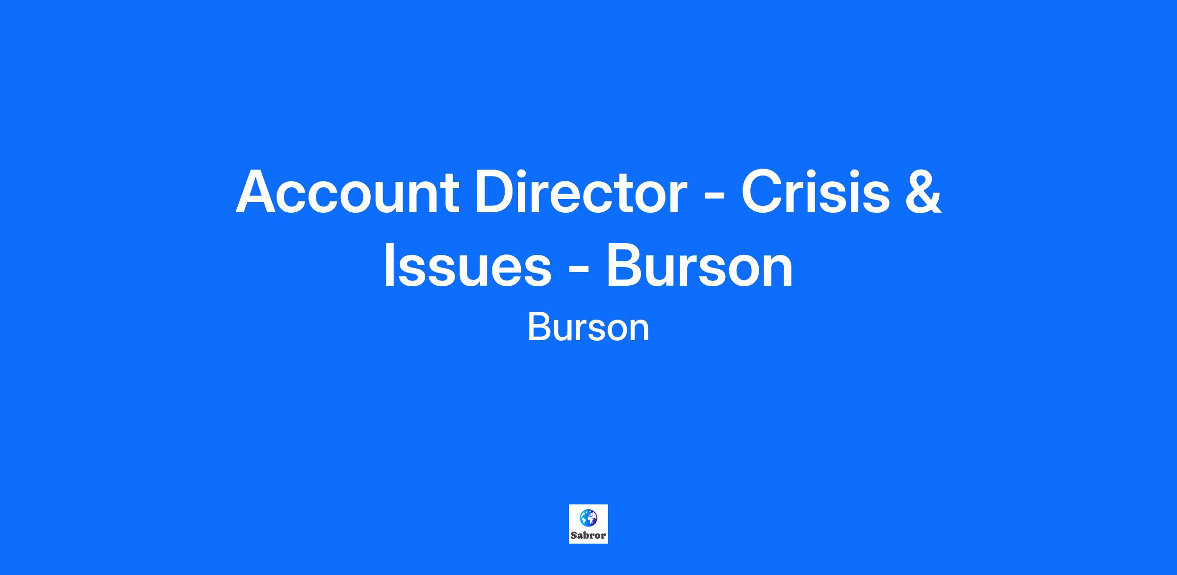 Who we are: Burson is the global communications leader built to create value for clients through reputation. With highly specialized teams, industry-leading technologies and breakthrough creative, we help brands and businesses redefine reputation as a competitive advantage so they can lead today and into the future. When you work at Burson, you are part of a global community of lifelong learners who thrive at the edge of innovation. Burson is part of WPP (LSE/NYSE: WPP), the creative transformation company. For more information visit bursonglobal.com and follow us on LinkedIn and Instagram. More about the role: More About the Role Are you a communications professional with the ability to lead complex corporate communications campaigns for some of the world’s most renowned brands? At Burson, we’re looking for an Account Director to join our Corporate and Public Affairs team. This is your opportunity to work with iconic clients such as Red Sea Global and HCLTech , shaping their reputations, influencing key audiences, and leading creative campaigns that drive results. As an Account Director you’ll be at the forefront of client relationships, managing a portfolio of high-profile accounts, delivering strategic counsel, and leading projects that impact business outcomes. With a focus on corporate affairs, you’ll drive both proactive and reactive communications strategies, ensuring clients’ voices are heard across media, industry, and stakeholder landscapes. You’ll have a hands-on leadership role, guiding teams, fostering creative problem-solving, and mentoring junior colleagues. You’ll also actively contribute to business growth, identifying new opportunities and driving integrated communication solutions for clients. What you'll do Client & Reputation Management Act as a senior day-to-day contact for clients, building trusted relationships through sound judgment, empathy, and clear counsel. Lead client conversations during high-stakes situations, offering calm, strategic advice under pressure and guiding them through complex reputation challenges across markets. Crisis & Issues Expertise Provide strategic oversight of crisis preparedness and response programmes, including scenario planning, escalation frameworks, and real-time media handling. Lead reactive and proactive issues management across fast-moving, high-risk environments – from reputation threats and regulatory scrutiny to activist pressure or internal crises. Support clients with media, stakeholder and employee communications during crises, maintaining trust and consistency of messaging. Strategic Counsel & Media Relations Oversee and guide press office teams through high-volume and sensitive media landscapes. Shape media narratives, protect client reputations, and proactively manage journalist relationships, especially during periods of scrutiny or change. Provide clients with a steady stream of proactive, strategic recommendations that demonstrate strong news judgment and business understanding.. Experience that contributes to success Significant experience in crisis and corporate communications within an agency environment, ideally working with high-profile or highly regulated brands. Proven ability to lead on sensitive, business-critical situations with clarity, confidence, and discretion. Strong background in media relations and narrative management, particularly under intense scrutiny. Exceptional interpersonal and leadership skills – able to lead teams through challenging situations while maintaining morale and quality. Outstanding written and verbal communication skills, with the ability to distill complexity into clear, actionable messaging. Commercially minded, with experience managing budgets, forecasting, and resource planning across complex accounts. Comfortable working with data and insights to shape strategy, measure impact, and refine recommendations. Experience supporting new business efforts, from identifying opportunities to leading pitches and developing strategic proposals. #LI-SF1 You belong at Burson: Our vision is for Burson to be the leading ‘academy company’ for creative communications professionals and emerging leaders. We provide a dynamic environment where ambitious colleagues come to elevate their skills, expand their networks, and ultimately, produce the best solutions for today’s leading brands. Our commitment to your growth is reflected in our robust benefits and people programs, which include professional development opportunities, mentorship programs with industry leaders, a vibrant and inclusive company culture fostering collaboration and innovation and packages designed to reward and retain top talent. We invest in our people because we believe their success is our success. At Burson, we’re an agency of learn-it-alls. We recognize that the things we do best, creativity and communications, require a level of nuanced understanding. That’s why it’s imperative for us to hire extraordinarily talented people of all backgrounds and identities. Without that we can’t do the essential work of inspiring bold ideas, fostering constructive dialogue, cultivating meaningful experiences, and driving innovation and creativity for our partners. Your unique point of view—your talent—is what makes you a #BursonPerson, and it’s how we deliver exceptional results for our clients, together. We believe the best work happens when we're together, fostering creativity, collaboration, and connection. That's why we’ve adopted a hybrid approach, with teams in the office around four days a week. If you require accommodations or flexibility, please discuss this with the hiring team during the interview process. When you click the "Submit Application" button below, this will send any information you add below to Burson. Before you do this, we think it's a good idea to read through our Recruitment Privacy Policy. California residents should read our California Recruitment Privacy Notice. Th