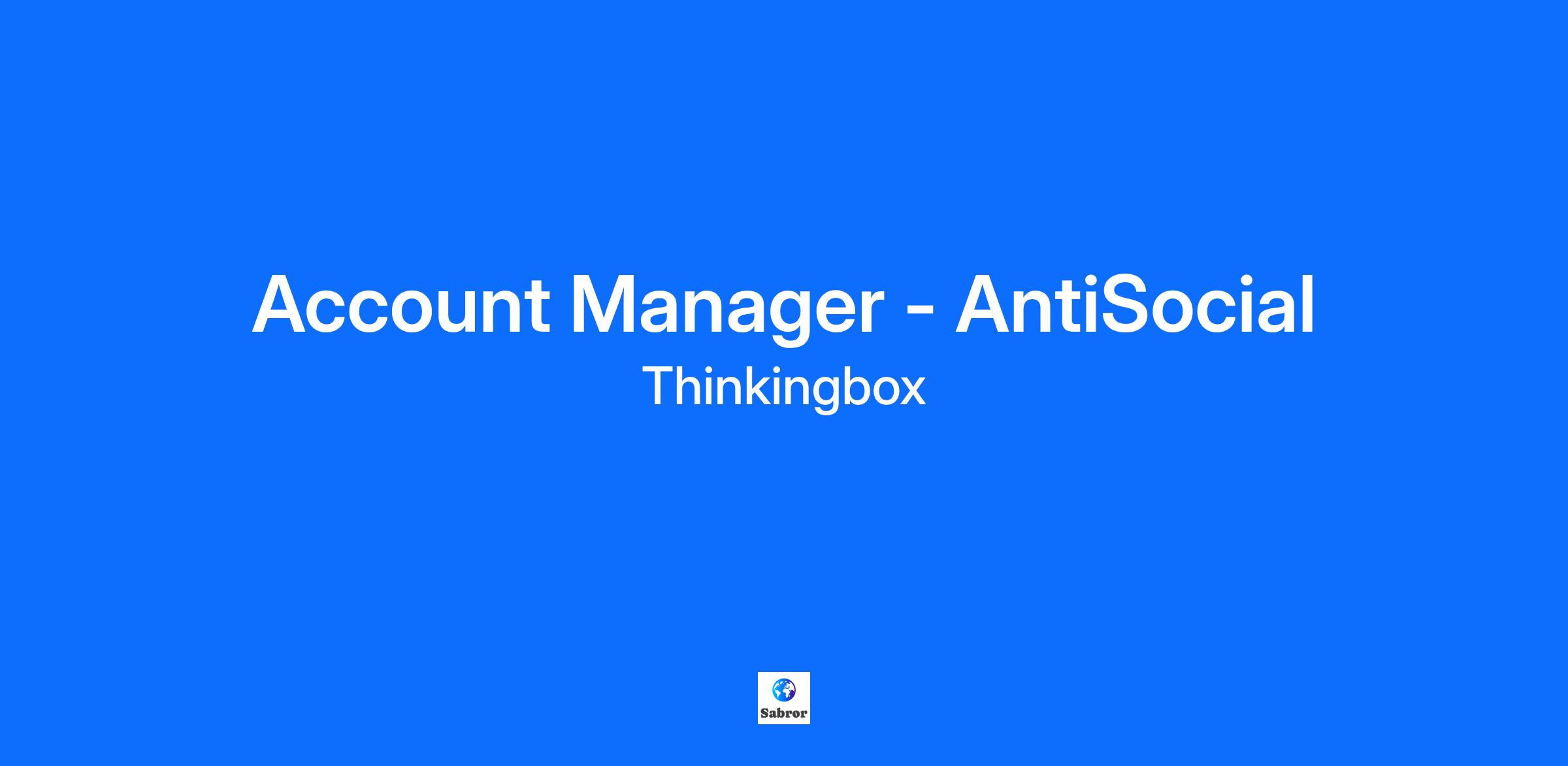 Who We Are Hi! We’re AntiSocial Solutions, a social-first digital marketing agency made up of people who love to create. Our work spans industries; we produce conceptual campaigns, strategic media plans, creator and influencer strategies, and create content for great brands across the globe. As a division of Thinkingbox, we have offices located in Vancouver, Toronto, New York City, Salt Lake City, and Los Angeles. At AntiSocial, you’ll be joining a diverse and talented group of people who craft campaigns and provide solutions for the world’s top brands. We love our culture and the natural collaboration that happens in and around our five offices, from dog parties to happy hour Thursdays, we maintain a vibrant work environment. However, for one month a year we encourage our people to explore the world. Try working from another office or even the beaches of Bali and expand your worldview, then bring that experience back to the team. The Opportunity AntiSocial Solutions is looking for an experienced Account Manager to join our team in Toronto! As our Account Manager, you will be responsible for providing exceptional service to our current and prospective clients and leading client acquisition –specifically direct-to-brand. Acting as the main point of contact, you’ll be the voice of our clients within the agency, with a deep understanding of their business and objectives, ensuring that all requirements are reflected throughout the content creation process. Project management or production experience is a strong asset, as this role often works cross-functionally with our creative, strategy, and production teams to ensure timelines, budgets, and deliverables are met with excellence. \n What You’ll Be Doing Work closely with clients and internal teams to ensure a thorough understanding of the client’s business goals and objectives and ensuring that all requirements are met throughout the campaign and content creation process Oversight of multiple campaigns and regular liaising with the team to ensure the progress of each campaign and flagging any suggestions/concerns to the team Stay close to key contacts over email, phone or face-to-face meetings while providing recommendations and identifying new business opportunities at every stage of the campaign Identifying opportunities for organic account growth and building roadmaps for achieving growth results Support producers with managing client requirements, communications and balancing project schedules and budget Act as a leader for social media marketing, content creation, creative ideation whilst contributing to a culture of excellence around creative use of social media in advertising and marketing Ensure project profitability for each outgoing deliverable or retainer Supporting with annual planning sessions with clients to ensure we’re acting as a strategic partner with an eye on further business changes and needs Offering support across each client you may work on, ensuring team is supported and delivering exceptional work Provide senior management with reports on performance, team and project status, and upcoming opportunities. Monitor capacity of team members and adapt to change, with a close eye of risk assessment and mitigation Regular tracking of team hours through Harvest/Forecast Developing and implementing strategic plans to help grow/mitigate risk on the client Having strategic conversations with clients to ensure we are working on the right work to achieve business results Providing recommendations for ensuring we are maintaining a high standard of client servicing Proactive account planning and working with clients on future scope What You'll Bring 4+ years of account management and experience at a digital agency Knowledge and passion for the social and digital world Paid media experience is a considered an asset A proven track record of delivering consistent revenue Exceptional organizational skills, able to independently manage multiple campaigns to an extremely high standard, in a fast-paced environment Experience with pitching and selling ideas to clients, and ability to present confidently to stakeholders at all levels of an organization Excellent written and verbal communication skills, with the ability to tailor communications and build relationships with stakeholders at all levels both internally and externally Outstanding leadership skills with a can-do attitude Additional Info Hybrid (3 days in-office) Flexible time off / paid vacation / sick days Culture events Office lunches Employee recognition and incentive program Seasonal parties Company swag Industry events Dog-friendly offices Unlimited coffee, drinks, snacks Flex / travel work options Extended health benefits \n Equal Opportunity Here at Thinkingbox / AntiSocial Solutions, we are committed to building an environment where our employees continuously feel included, valued and heard. Diversity is our creative strength and it’s a combination of our unique experiences and perspectives that make for some of the best problem-solving. The result? Creativity, growth and innovation. We strongly encourage all applicants, regardless of race, ethnicity, religion, sex, national origin, sexual orientation, age, disability, or gender identity to apply. To Apply Thank you for taking the time to apply to AntiSocial (a division of Thinkingbox)! Please remember to include your resume and links to your online portfolio with your application (if applicable). Due to the number of applications we receive, we are not able to contact everyone who applies. Note: all applications are stored in our talent database and will be considered for future opportunities!