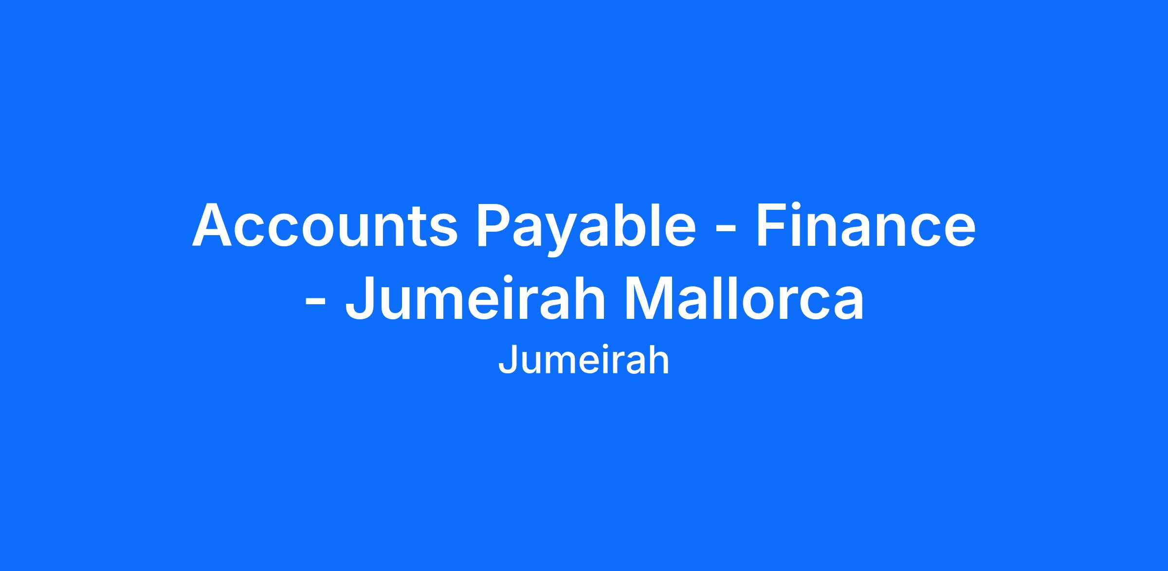 An opportunity has arisen for a Accounts Payable position to join Jumeirah Mallorca. The main duties and responsibilities of this role are: