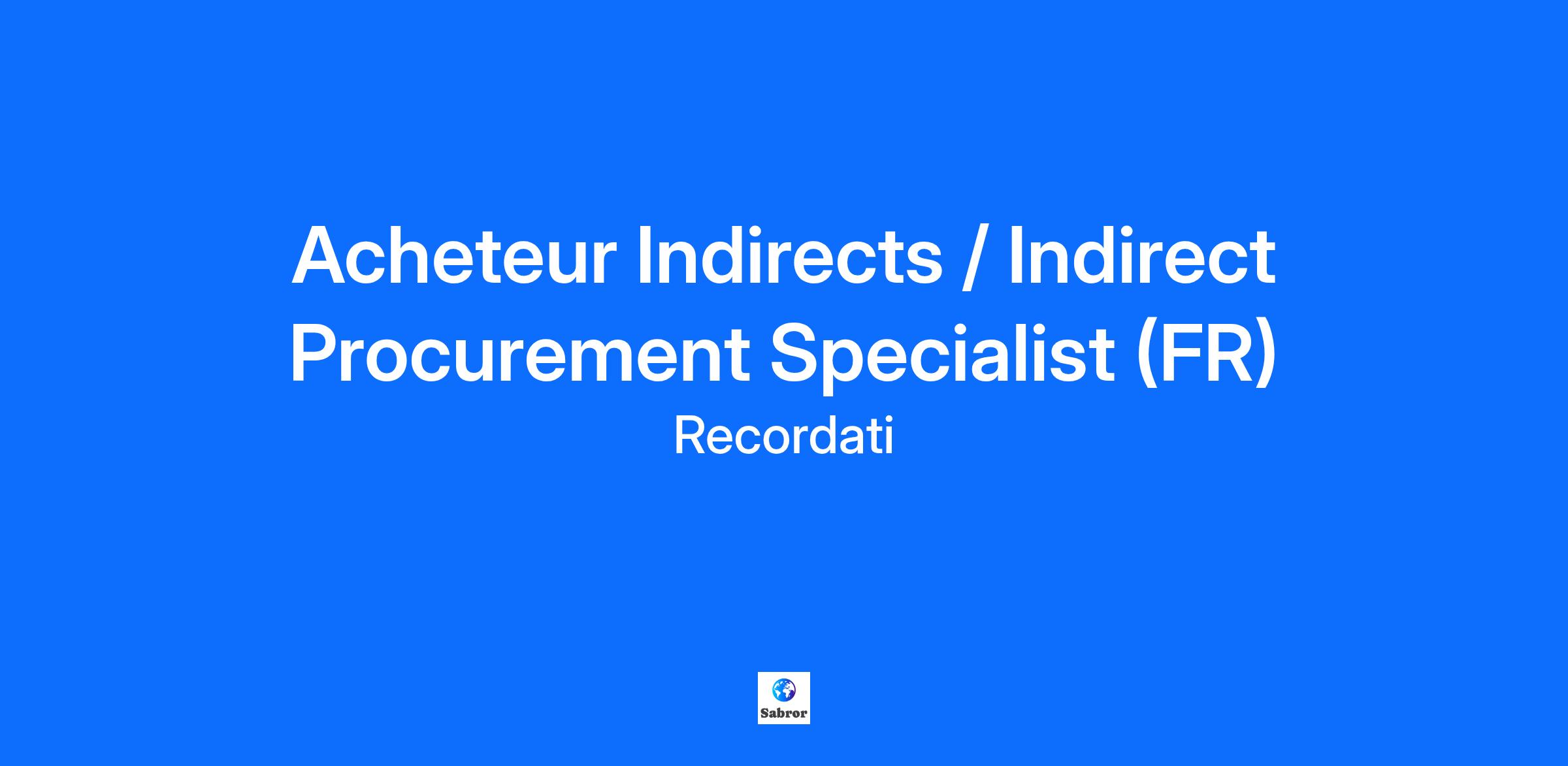 Acheteur Indirects / Indirect Procurement Specialist (FR)