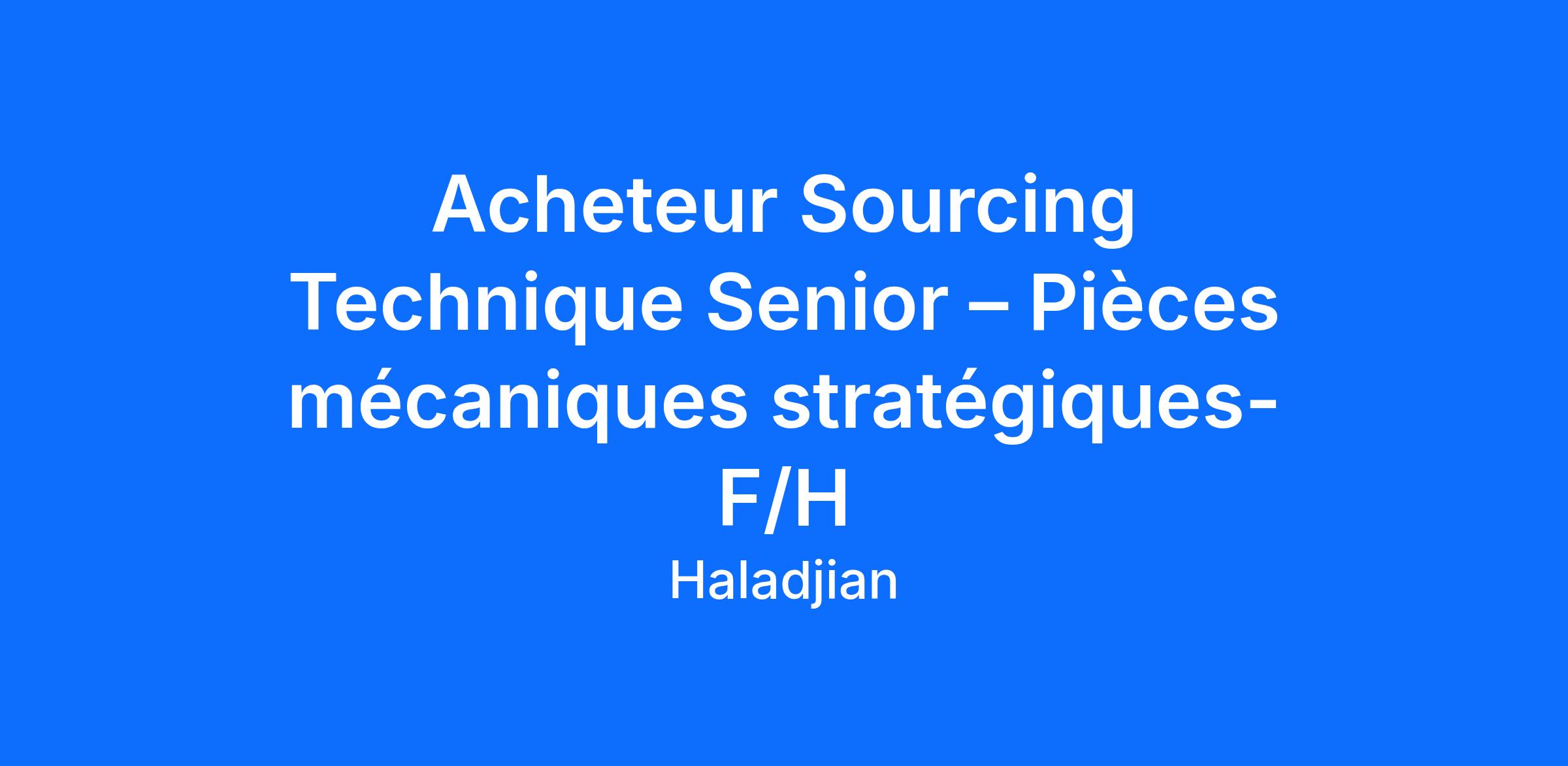 Dans le cadre du développement de notre gamme stratégique de pièces mécaniques, nous recrutons un Acheteur Sourcing Technique Senior F/H.