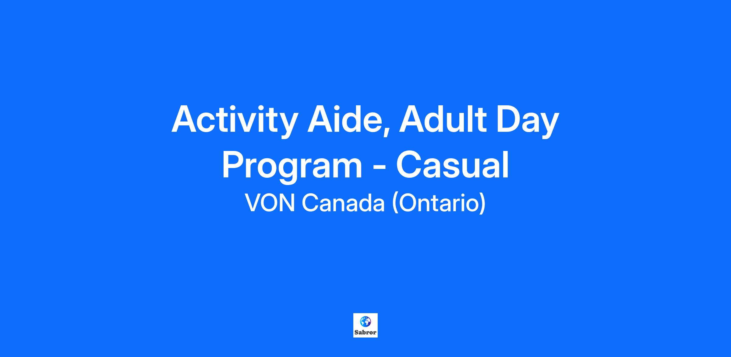 Requisition Details: Employment Status: Casual Program Name: Adult Day Program Work Schedule: Days On Call: No Existing Vacancy: Yes - we're currently hiring candidates for an existing vacancy in this position. Job Summary: The Activity Aide provides quality support and care for individuals attending the Adult Day Programs by implementing planned program of activities within the framework of continuous Quality Improvement (CQI), VON philosophy, policies and procedures, standards and applicable legislation. Key Responsibilities: Contributes to the development of the service plan for each client attending the Adult Day Program. Implements, evaluates and revises service plans on an ongoing basis in collaboration with the family/caregivers and internal team. Collaborates with the Recreational Therapist and/or Program Coordinator in planning and implementing social and recreational programs. Participates in group activities to stimulate mobility, language, reminiscing, group identity and listening skills of clients. Assist clients with Activities of Daily Living (ADLs) as required (toileting, personal hygiene, medication assistance. Collaborates with the team to identify risk factors and introduce interventions to minimize and eliminate client incidents. Ensures safety and security measures for the client, volunteers and staff. Utilizes volunteers’ talents and expertise within the program. Other duties as assigned. Common Responsibilities: Promotes the goals and values of VON and their role as an integrated community care provider Promotes a safe and healthy workplace ensuring workplace conduct and activities are in accordance with the provincial Occupational Health and Safety Act and Regulations and compliant with the VON Safety Management System, including all Policies, Safe Work Practices and Procedures Abides by all VON policies and work practices Abides by all confidentiality and protection of personal information policies, regulations and practices and ensures appropriate safeguards are in place within their role Works in collaboration with other staff in a team approach to service delivery External and Internal Relationships: Collaboration with Program Coordinator, Recreation Therapist, RPN, Supervisor and Manager Education, Designations and Experience: Diploma or Certificate from a Community College level program or equivalent in health care, social science or recreation with an emphasis on Gerontology Current First Aid and CPR and Food Handler’s certificates required Certification with GPA, Montessori an asset 1-2 years of recent experience in Adult Day Services or working with groups of clients is an asset. Experience in working with adults, especially individuals (and their caregivers), with Alzheimer disease and other cognitive impairments and/or physical disabilities in a social setting a requirement Skill Requirements: Must have excellent communication skills, both written and verbal. Good observational skills related to client functioning abilities. Awareness of community resources. Ability to take direction, as well as to work both independently and as part of a multidisciplinary team. Other: A current and original copy of a satisfactory Criminal Records Check Must have personal vehicle and possess both a current driver’s license and proof of vehicle insurance A Vulnerable Sector Search and/or a Child Abuse Registry Check may be required Must be able to wear Personal Protective Equipment (PPE) Working conditions and physical demands: This role requires a detail-oriented approach in a dynamic environment, with physical activity including lifting, carrying (using proper techniques), bending, reaching, kneeling, and other movements that emphasize good body mechanics. Individuals in the role are required to walk, sit, stand, and climb stairs throughout the day, with some tasks requiring fine hand movements.