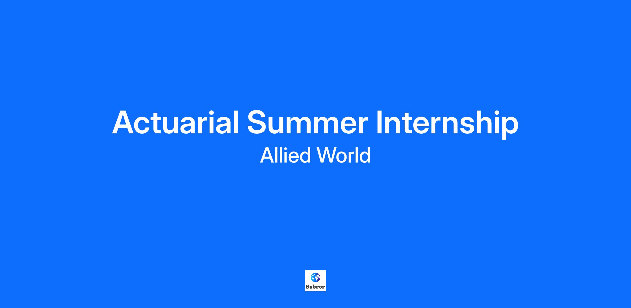 Take the next step in your career with us. Allied World is an ideal place for talented professionals who are driven by a belief in the value of collaboration and the power of knowledge. We believe that when our great people work together and support one another, our clients receive the best solutions. We embrace unique perspectives and empower each person to grow through professional development, career training and mentoring programs. Our people are our most important asset, and we are very proud of the quality of our team members. Allied World Assurance Company, Ltd. seeks an individual to fill the position of Actuarial Summer Intern. The successful candidate will be expected to provide actuarial pricing support to various underwriting departments. Responsibilities Include: Provide actuarial pricing support to various underwriting departments under moderate supervision Help maintain pricing models Any other duties as assigned by manager Education, Skills and Experience: The successful applicant will preferably have the following: In penultimate year of university course leading to a Bachelor’s degree in actuarial, mathematics, statistics or related field Experience in Excel would be beneficial Strong analytical and communication skills Ability to learn quickly Strong ethics and integrity Working at Allied World Our team of over 1,600 professionals has deep expertise in the industry. They enjoy their work, and many have served for several years. This is what you can expect when you join us: Instant membership in the Allied World team — a global network of colleagues who will support your career journey A manager who will help you build your career through a structured coaching program Access to a full suite of learning and development tools and resources Global Presence We are headquartered in Bermuda, with offices in Atlanta, Boston, Brisbane, Chicago, Costa Mesa, Dallas, Dublin, Farmington (CT), Hong Kong, Houston, Labuan, London, Los Angeles, Manchester, Miami, Nashville, New Jersey, New York, Philadelphia, San Francisco, Singapore, Sydney, Toronto and Zug. Our Business Allied World Assurance Company Holdings, Ltd, through its subsidiaries, is a global provider of insurance and reinsurance solutions. We operate under the brand Allied World and have supported clients, cedents and trading partners with thoughtful service and meaningful coverages since 2001. We are a subsidiary of Fairfax Financial Holdings Limited, and benefit from a worldwide network of affiliated entities that allow us to think and respond in non-traditional ways. Allied World is an equal opportunity employer. Subject to applicable law, all qualified applicants will be considered for employment without regard to race, color, religion or belief, gender, age, disability, military service, marital or civil partnership status, family status, sexual orientation, ethnic or national origin, genetic information or any other characteristic protected by applicable law or regulation in the relevant jurisdiction where we operate. To learn more, visit awac.com, or follow us on LinkedIn at linkedin.com/company/allied-world.