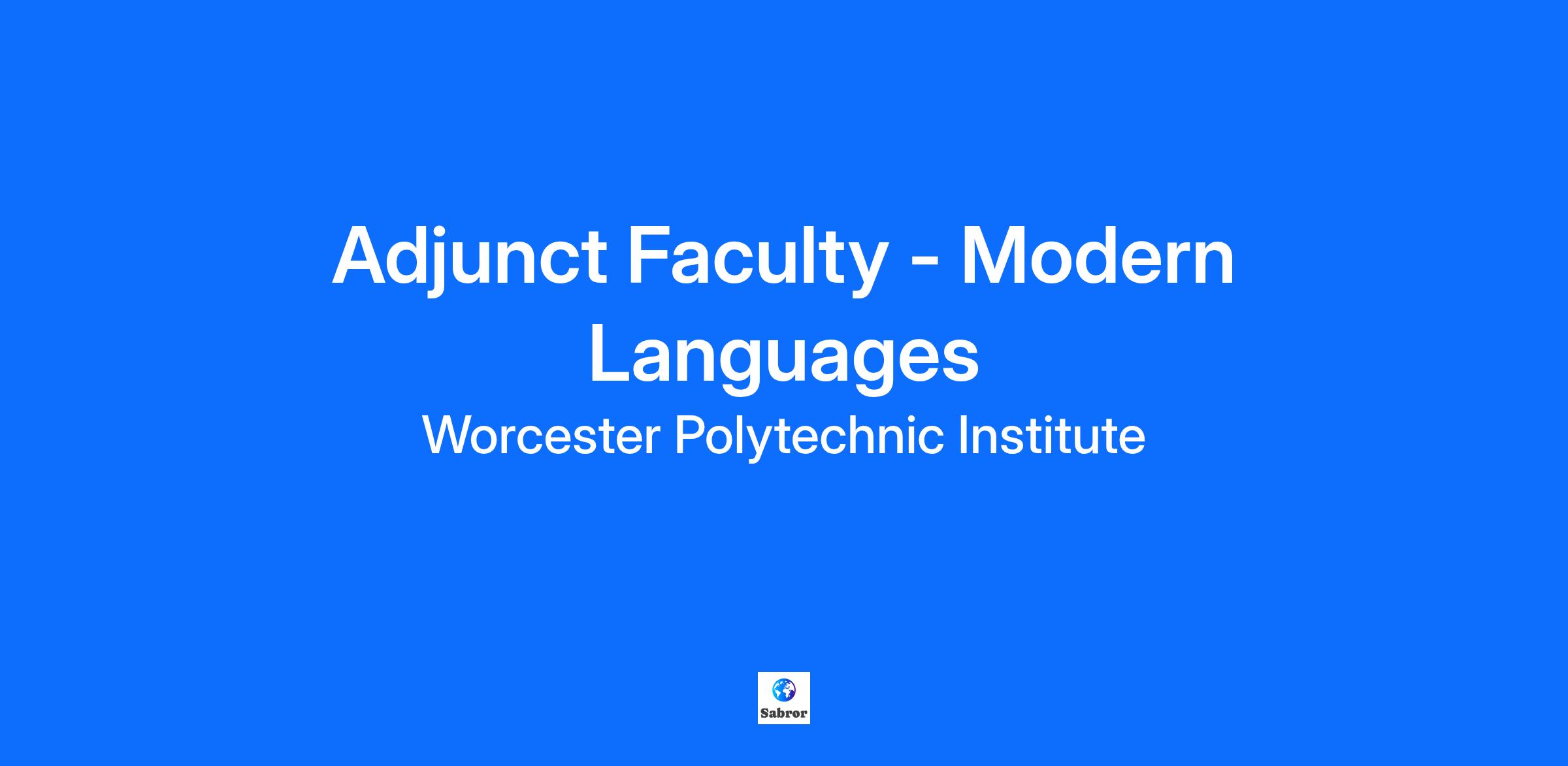 JOB TITLE Adjunct Faculty - Modern Languages LOCATION Worcester DEPARTMENT NAME Humanities & Arts - JM DIVISION NAME Worcester Polytechnic Institute - WPI JOB DESCRIPTION SUMMARY Part-time adjunct faculty pool in Modern Languages to fill opportunities on a course-by-course basis as need arises . JOB DESCRIPTION The Humanities and Arts Department at Worcester Polytechnic Institute is regularly seeking part-time adjunct faculty to teach Spanish, German, Chinese, and Arabic. Modern Language faculty offer language instruction through introductory courses, intermediate classes, and advanced topic seminars. We are looking for outstanding scholars, but successful candidates must also demonstrate teaching excellence and versatility as well as an ability to jump into an existing curriculum with creative and critical pedagogical approaches. A successful candidate should possess native or near-native proficiency in Spanish, German, Chinese, or Arabic and hold a PhD in an appropriate corresponding discipline. Submitting an application through this part-time posting will place you in an applicant pool to fill Modern Languages adjunct faculty positions on an as needed basis. Specific topics and start dates will vary over the academic year. Qualified applicants from this applicant pool will be contacted as opportunities arise. Your application will remain in the pool until the posting closes. If you wish to be considered for positions beyond that date, then you must reapply. Applicants should submit the following: --cover letter that addresses relevant expertise and experience --current c.v. that includes the names and contact information for three references --evidence of teaching experience (syllabi, teaching portfolio, etc.) Compensation: $6,000 per course FLSA STATUS United States of America (Exempt) WPI is an Equal Opportunity Employer. All qualified candidates will receive consideration for employment without regard to race, color, age, religion, sex, sexual orientation, gender identity, national origin, veteran status, or disability. It seeks individuals from all backgrounds and experiences who will contribute to a culture of creativity, collaboration, inclusion, problem solving, innovation, high performance, and change making. It is committed to maintaining a campus environment free of harassment and discrimination. About WPI Worcester Polytechnic Institute (WPI) is a vibrant and diverse community of extraordinary students, talented and dedicated staff, and world-renowned faculty. Along with its state-of-the-art research facilities, WPI offers competitive and comprehensive employee benefit programs, including paid time off, health insurance, life and long-term disability insurance, retirement savings plans, tuition assistance, flexible spending accounts, and a working environment that prioritizes mental health and well-being. It is a community committed to civility and respect—making inclusion and belonging a reality for everyone on its campus.