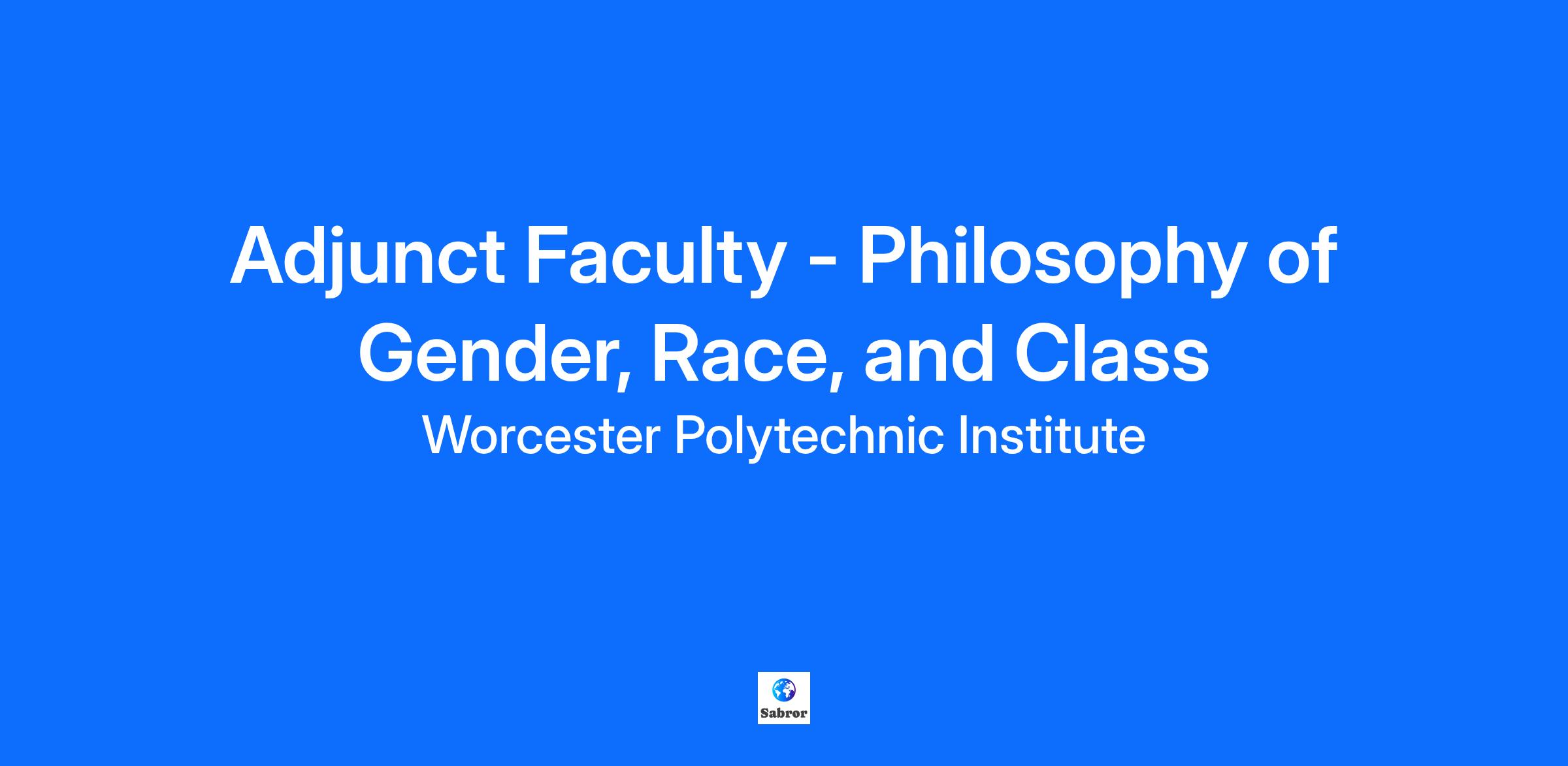 JOB TITLE Adjunct Faculty - Philosophy of Gender, Race, and Class LOCATION Worcester DEPARTMENT NAME Humanities & Arts - JM DIVISION NAME Worcester Polytechnic Institute - WPI JOB DESCRIPTION SUMMARY The Humanities and Arts Department at Worcester Polytechnic Institute is seeking a part-time adjunct Philosophy faculty member to teach a section of “Philosophy 2716: Gender, Race, and Class” from October 20 to December 12, 2025 on Monday and Thursday afternoons. The course consists of an examination of categories used to mark social identities of marked difference, such as gender, race, class, sexuality, ability, species, etc. Candidates should have PhD (or ABD) in Philosophy, Women Studies, Gender Studies, Critical Race Theory, or allied fields. JOB DESCRIPTION WPI Philosophy and Religion faculty teach introductory courses, intermediate thematic surveys, and advanced topic seminars. WPI’s PY-RE program has particular strengths in social justice and environmental philosophy; underrepresented philosophical and religious traditions including feminism, critical race theory, and non-Western worldviews; and studies of science, technology, and ethics. We are looking for outstanding scholars, but successful candidates must also demonstrate teaching excellence and versatility as well as an ability to jump into an existing curriculum with creative and critical pedagogical approaches. Submitting an application for this part-time posting will place you in an applicant pool to fill Philosophy and Religion adjunct faculty opportunities by the course on an as-needed basis. Specific topics and start dates will vary over the academic year. Qualified applicants from this applicant pool will be contacted as opportunities arise. Your application will remain in the pool until the posting closes. If you wish to be considered for positions beyond that date, then you must reapply. Applicants should submit the following: --cover letter that addresses relevant expertise and experience --current c.v. that includes the names and contact information for three references --evidence of teaching experience (syllabi, teaching portfolio, etc.) Compensation: $6,000 per course FLSA STATUS United States of America (Exempt) WPI is an Equal Opportunity Employer. All qualified candidates will receive consideration for employment without regard to race, color, age, religion, sex, sexual orientation, gender identity, national origin, veteran status, or disability. It seeks individuals from all backgrounds and experiences who will contribute to a culture of creativity, collaboration, inclusion, problem solving, innovation, high performance, and change making. It is committed to maintaining a campus environment free of harassment and discrimination. About WPI Worcester Polytechnic Institute (WPI) is a vibrant and diverse community of extraordinary students, talented and dedicated staff, and world-renowned faculty. Along with its state-of-the-art research facilities, WPI offers competitive and comprehensive employee benefit programs, including paid time off, health insurance, life and long-term disability insurance, retirement savings plans, tuition assistance, flexible spending accounts, and a working environment that prioritizes mental health and well-being. It is a community committed to civility and respect—making inclusion and belonging a reality for everyone on its campus.