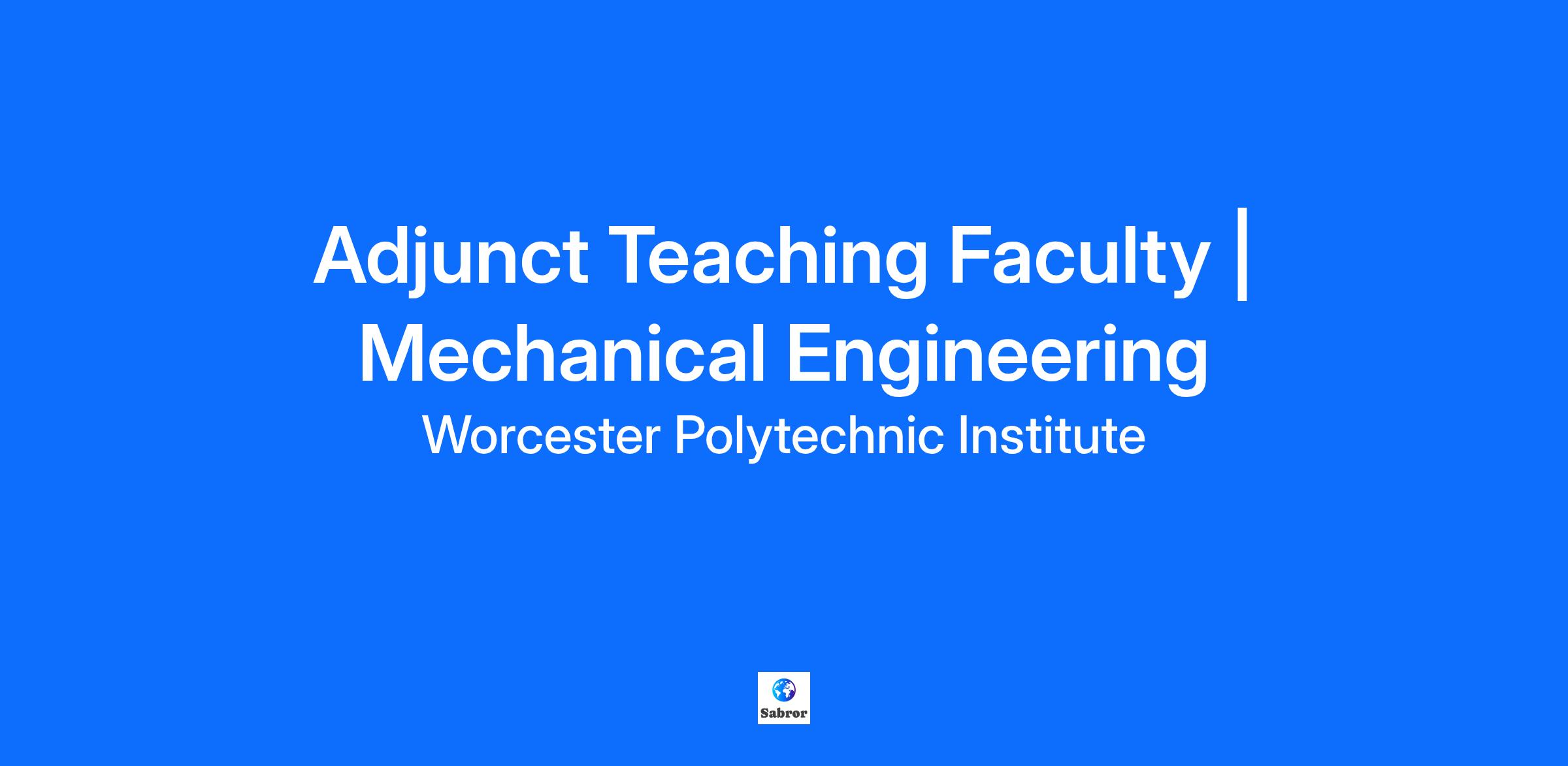 JOB TITLE Adjunct Teaching Faculty | Mechanical Engineering LOCATION Worcester DEPARTMENT NAME Mechanical & Materials Engineering - JM DIVISION NAME Worcester Polytechnic Institute - WPI JOB DESCRIPTION SUMMARY An ideal applicant will hold an advanced degree in Mechanical Engineering or related discipline with significant practical experience in the relevant area, as well as having successful undergraduate or graduate teaching experience. Abilities to teach in other areas is also valued. JOB DESCRIPTION Worcester Polytechnic Institute is seeking part-time adjunct faculty to teach day and/or evening classes for the Mechanical and Materials Engineering Department, at the undergraduate and/or graduate level. Part-time faculty positions are created to provide an available applicant pool for the department. Positions will be filled on an as needed basis. Start dates will vary by course and semester. Qualified applicants will be contacted by the academic department when an opening is anticipated. Your application will remain in the pool until the posting closes. If you wish to be considered for positions beyond that date you must reapply. Responsibilities include teaching from established curriculum but with addition of personal expertise and experience; provide students with timely feedback; grading. Prior experience teaching college-level courses required. Applicants should review the WPI course catalog and identify engineering courses they may be qualified to teach. Experience with online teaching and the Canvas learning management system preferred but not required. PhD in related discipline preferred; master’s degree in related discipline required. Compensation: $7,000–$7,500 per course FLSA STATUS United States of America (Exempt) WPI is an Equal Opportunity Employer. All qualified candidates will receive consideration for employment without regard to race, color, age, religion, sex, sexual orientation, gender identity, national origin, veteran status, or disability. It seeks individuals from all backgrounds and experiences who will contribute to a culture of creativity, collaboration, inclusion, problem solving, innovation, high performance, and change making. It is committed to maintaining a campus environment free of harassment and discrimination. About WPI Worcester Polytechnic Institute (WPI) is a vibrant and diverse community of extraordinary students, talented and dedicated staff, and world-renowned faculty. Along with its state-of-the-art research facilities, WPI offers competitive and comprehensive employee benefit programs, including paid time off, health insurance, life and long-term disability insurance, retirement savings plans, tuition assistance, flexible spending accounts, and a working environment that prioritizes mental health and well-being. It is a community committed to civility and respect—making inclusion and belonging a reality for everyone on its campus.