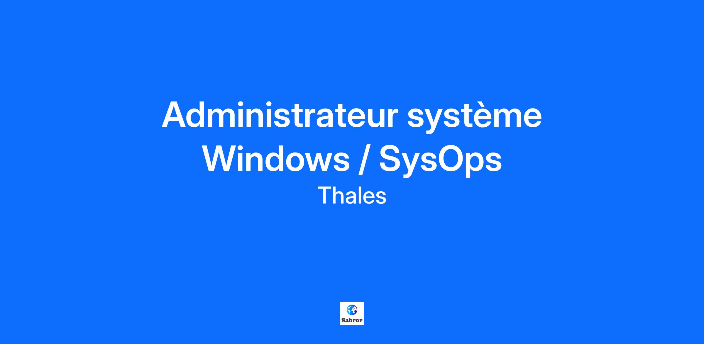 Lieu : Lille, France Construisons ensemble un avenir de confiance Thales est un leader mondial des hautes technologies spécialisé dans trois secteurs d’activité : Défense & Sécurité, Aéronautique & Spatial, et Cyber & Digital. Il développe des produits et solutions qui contribuent à un monde plus sûr, plus respectueux de l’environnement et plus inclusif. Le Groupe investit près de 4 milliards d’euros par an en Recherche & Développement, notamment dans des domaines clés de l’innovation tels que l’IA, la cybersécurité, le quantique, les technologies du cloud et la 6G. Thales compte près de 81 000 collaborateurs dans 68 pays. Nos engagements, vos avantages Une réussite portée par notre excellence technologique, votre expérience et notre ambition partagée Un package de rémunération attractif Un développement des compétences en continu : parcours de formation, académies et communautés internes Un environnement inclusif, bienveillant et respectant l’équilibre des collaborateurs Un engagement sociétal et environnemental reconnu Votre quotidien Nos équipes de l'activité Systèmes de réseaux d'infrastructures sont présentes à Lambersart, site localisé à dix minutes de la métropole Lilloise, et fournissent des services et des solutions globales optimisant la performance, la résilience et la sécurité des systèmes de défense. Votre quotidien Nos équipes de l'activité Systèmes de réseaux d'infrastructures sont présentes à Lambersart, site localisé à dix minutes de la métropole Lilloise, et fournissent des services et des solutions globales optimisant la performance, la résilience et la sécurité des systèmes de défense. Dans le cadre du développement de nos activités dans le domaine de la défense, nous recherchons un Administrateur Système Windows / SysOps passionné et expérimenté, prêt à rejoindre une équipe dynamique et innovante. Missions : Administration et gestion des systèmes Windows : Installation, configuration, mise à jour et dépannage des environnements Windows Server (2008 à 2022). Gestion des services réseaux : Assurer le bon fonctionnement des services essentiels tels que DNS, DHCP, Active Directory, VPN, etc. Sécurité des infrastructures : Mise en place de bonnes pratiques en matière de sécurité informatique (pare-feu, antivirus, gestion des accès). Supervision des performances systèmes : Surveillance continue de la performance et disponibilité des systèmes, analyse des incidents et proposition de solutions d'amélioration. Virtualisation : Gestion des solutions de virtualisation (VMware, Hyper-V) pour optimiser l’infrastructure. Automatisation des processus : Utilisation de scripts (PowerShell, Bash) pour automatiser les tâches répétitives et améliorer l’efficacité des processus. Collaboration avec les équipes réseaux : Travailler en étroite collaboration avec les équipes réseaux et développement pour assurer la cohérence et l’optimisation des solutions déployées. Compétences et qualités requises : Expérience : Minimum 3 ans d’expérience sur un poste similaire (administration système Windows et gestion des réseaux). Compétences techniques : Maîtrise des environnements Windows Server et des outils associés. Compétences solides en gestion des réseaux (DNS, DHCP, TCP/IP, VPN, VLAN). Expérience avec les solutions de virtualisation (VMware, Hyper-V). Capacité à script et automatiser des tâches avec PowerShell, Bash. Bonnes pratiques de sécurité des systèmes d’information et gestion des accès. Qualités personnelles : Esprit d’analyse et de résolution de problèmes. Travail en équipe, communication efficace avec les autres services. Autonomie, rigueur et réactivité face aux incidents. QUI ÊTES-VOUS ? Vous êtes passionné(e) par le développement et la maintenance d'infrastructures, à l’aise sur un large panel de sujets techniques et vous savez faire preuve d'initiative. Vous recherchez un poste d'Administrateur Système Windows et souhaitez évoluer dans un environnement dynamique où vous pourrez mettre à profit vos compétences techniques. Vous justifiez d’une première expérience en administration Windows, idéalement dans un contexte d’infrastructure sécurisée. Vous êtes à l’aise dans la gestion des services systèmes, des réseaux et des environnements virtualisés, et vous maîtrisez les outils associés à ces technologies. Les compétences recherchées sont : Excellentes connaissances des environnements Windows Server (2008 à 2022) et des services associés (DNS, DHCP, Active Directory, etc.). Compétences avancées en gestion des réseaux (TCP/IP, VPN, VLAN, etc.). Expérience avec les environnements virtualisés (VMware, Hyper-V). Maîtrise des outils d'automatisation et de scripting (PowerShell, Bash). Certification ITIL ou une bonne connaissance des bonnes pratiques de gestion des services IT. Capacité à travailler en équipe, avec de bonnes qualités relationnelles et une forte capacité d'adaptation. Sens de l'initiative, autonomie et rigueur dans la gestion des incidents et des projets. Bonne capacité rédactionnelle et une curiosité pour l’évolution des technologies systèmes et réseaux. Si vous êtes prêt(e) à prendre en charge des projets techniques passionnants et à relever de nouveaux défis dans le domaine de l'infrastructure IT, le poste d'Administrateur Système Windows est fait pour vous ! Rejoignez-nous pour contribuer à un avenir plus sûr, plus inclusif et technologiquement avancé. Thales, entreprise Handi-Engagée, reconnait tous les talents. La diversité est notre meilleur atout. Postulez et rejoignez nous ! Interested in finding out more about Thales and why you should join us? Say HI* to new career opportunities.