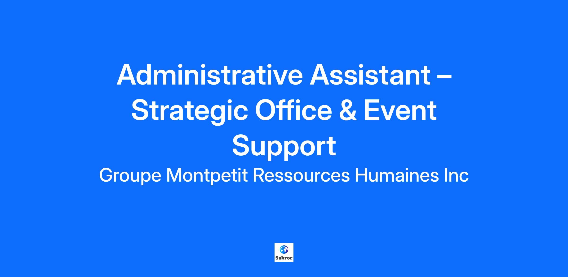 Administrative Assistant – Strategic Office & Event Support Do you enjoy collaborating with others and playing an active role in meaningful projects? Are you recognized for your adaptability and proactive mindset? A well-established employer recognized for their expertise is seeking an Administrative Assistant to ensure the smooth running of daily office operations and coordinate events. You will thrive in an environment that supports your growth, surrounded by an engaged team that values human relationships and fosters a healthy workplace culture! YOUR ROLE: Your responsibilities will include: Supporting the team with daily office activities; Coordinating various events and travel arrangements (conferences, meetings, business trips, etc.); Preparing and reviewing documents and communications; Ensuring the preparation, dispatch, and follow-up of documents; Following up with various stakeholders; Manage the calendar and handle various bookings. SKILLS REQUIRED: Relevant experience in an administrative assistant role with similar responsibilities. Experience in a professional services environment is an asset; Strong proficiency in Microsoft Office Suite; Excellent command of spoken and written French, and professional proficiency in spoken and written English; Discretion and respect for confidentiality; Strong organizational skills and ability to manage priorities effectively; Ability to work independently and collaborate efficiently within a team. INTERESTED IN THIS CHALLENGE? We look forward to meeting you! Please send us your application in complete confidentiality at: rh@groupemontpetit.com, specifying the reference number: 25-0300P. We thank all candidates for their interest in this position. However, only candidates selected for an interview will be contacted. We recognize the value of diversity and subscribe to the principles of equality in employment. Professional coaching services are available at extra cost. CNESST - License number : AP-2000442