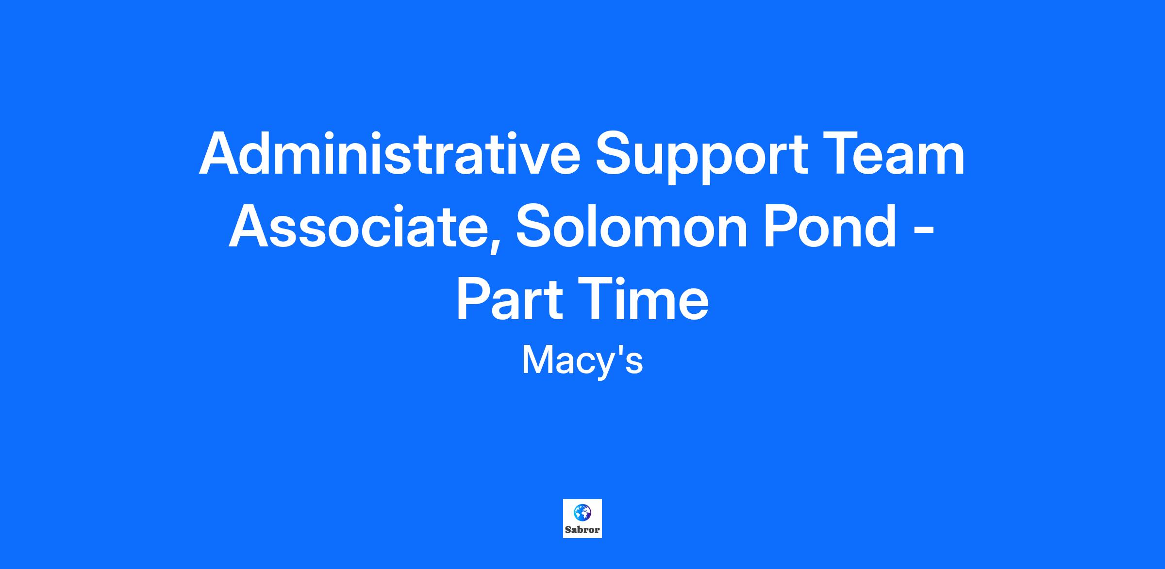 Administrative Support Team Associate, Solomon Pond - Part Time