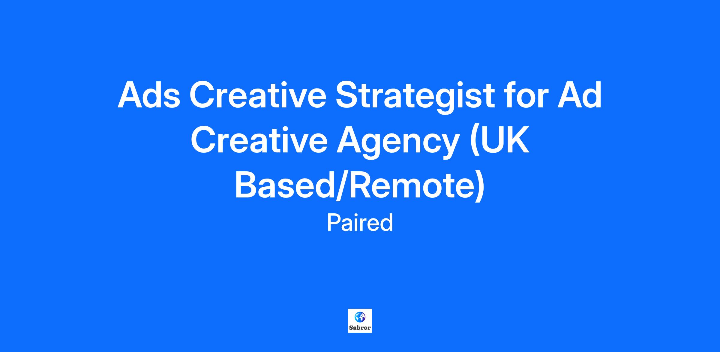 We are currently partnering with an innovative Ad Creative Agency that seeks an Ads Creative Strategist to join their dynamic team. This role offers opportunities to work with a diverse range of clients, crafting impactful advertising content that drives engagement and conversion.