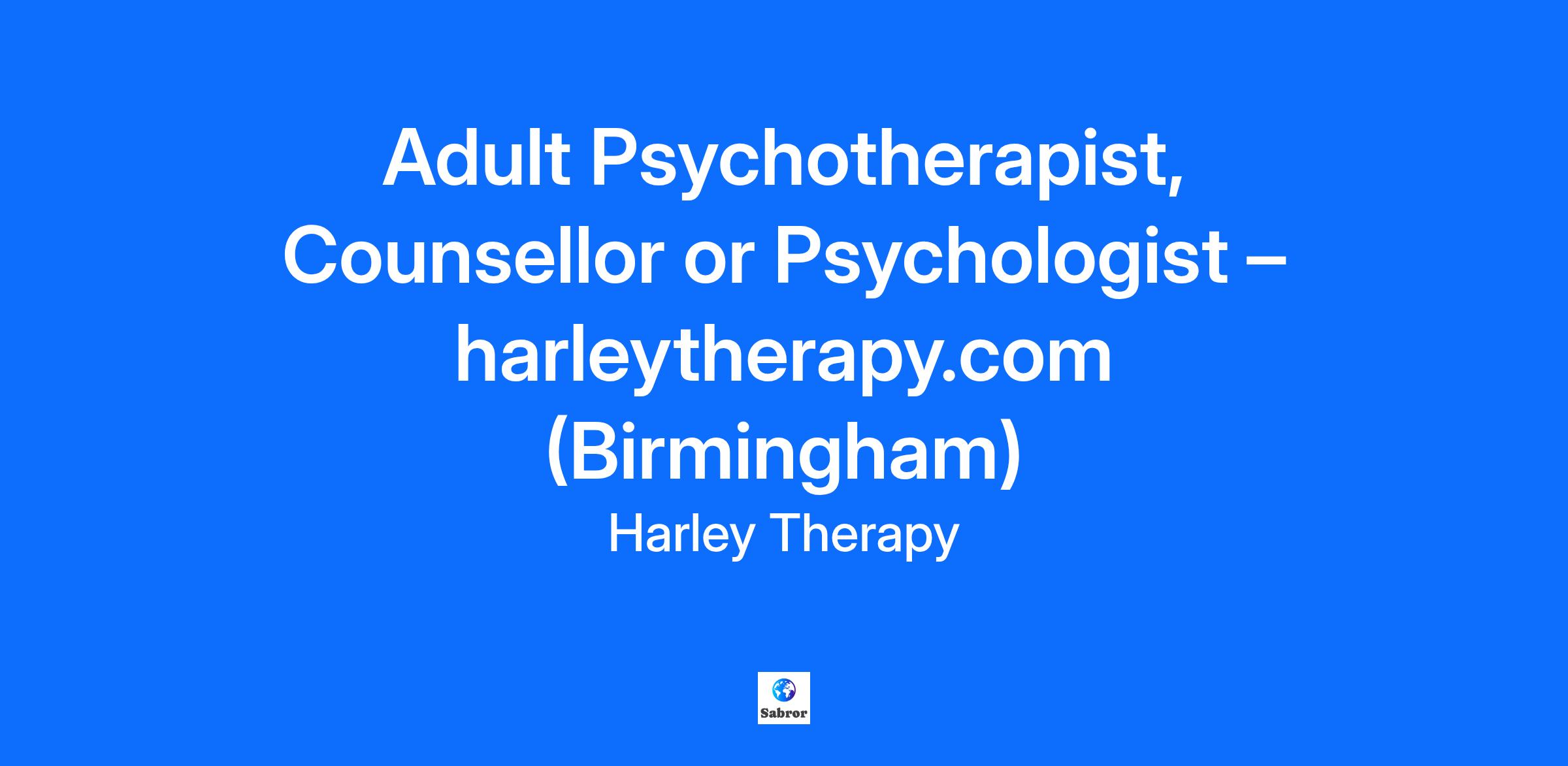 Adult Psychotherapist, Counsellor or Psychologist – harleytherapy.com (Birmingham)
