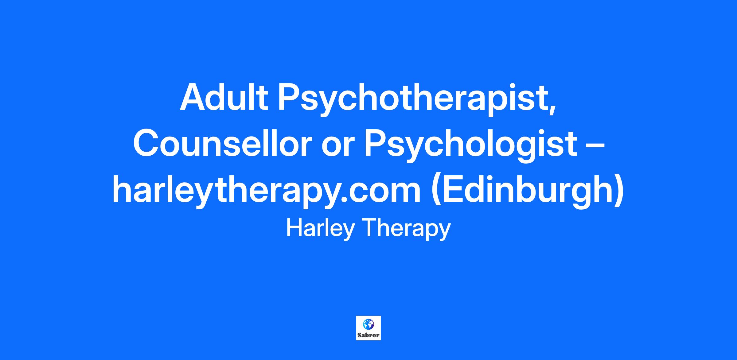 Adult Psychotherapist, Counsellor or Psychologist – harleytherapy.com (Edinburgh)