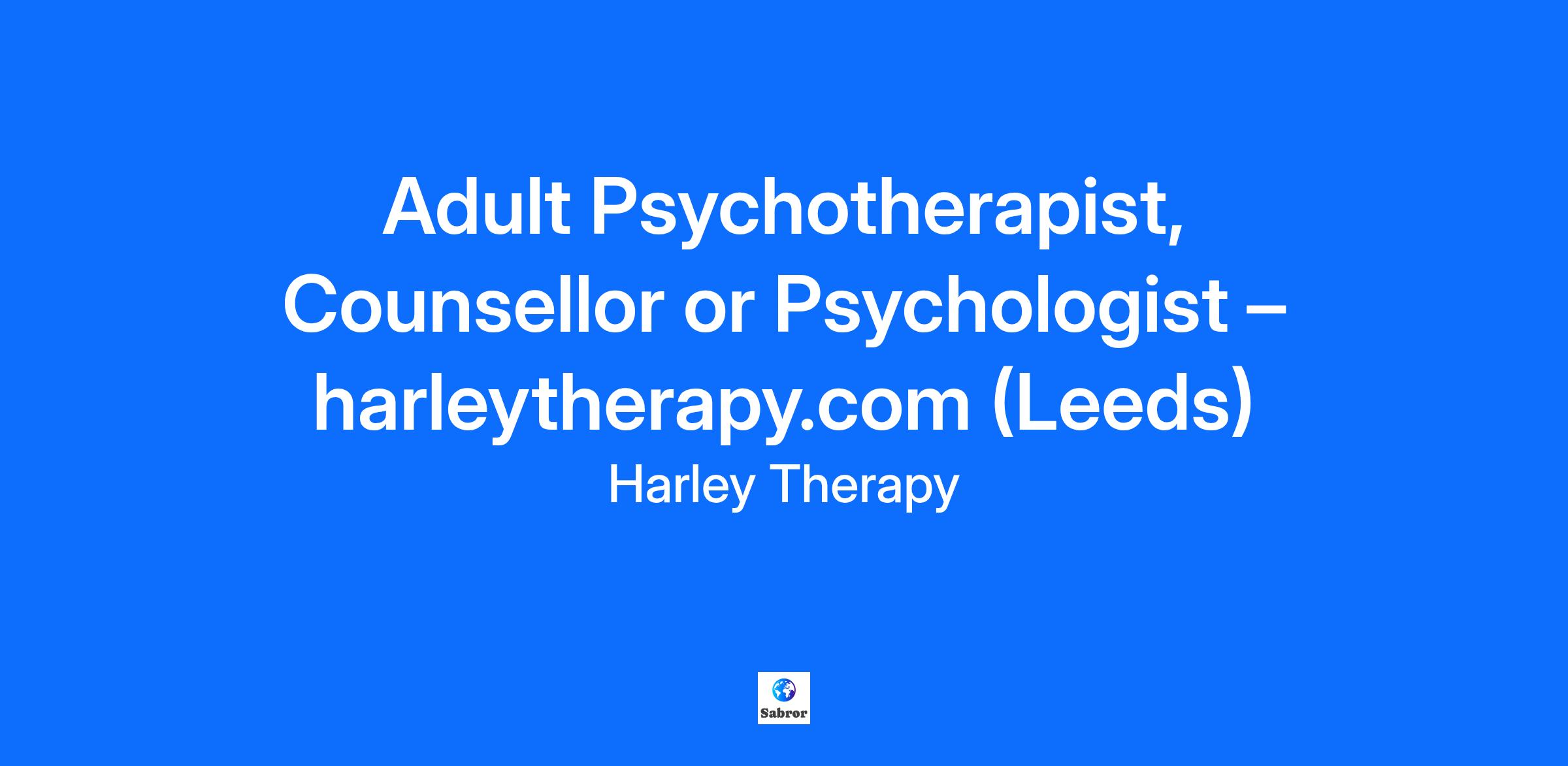 Adult Psychotherapist, Counsellor or Psychologist – harleytherapy.com (Leeds)