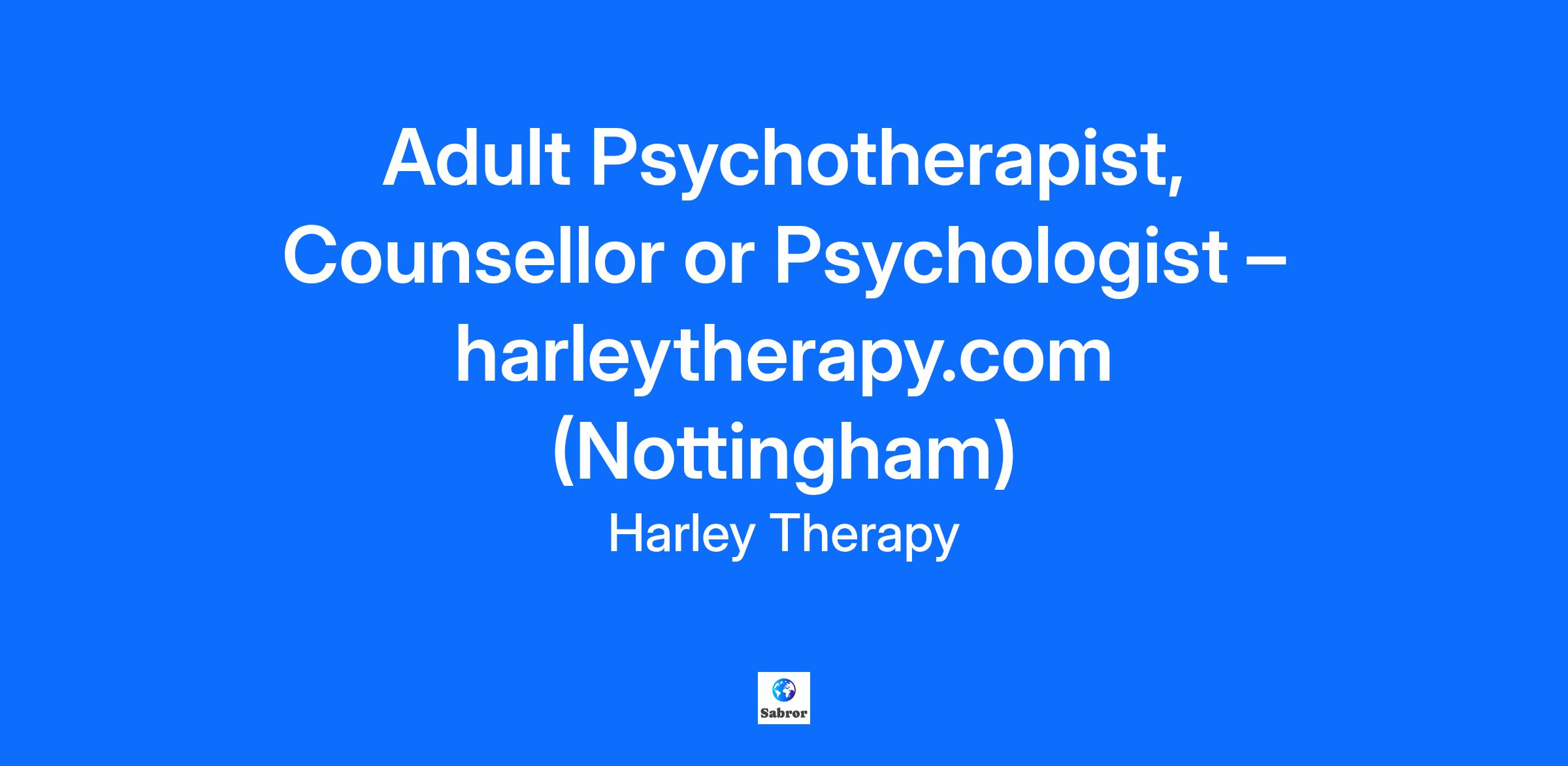 Adult Psychotherapist, Counsellor or Psychologist – harleytherapy.com (Nottingham)