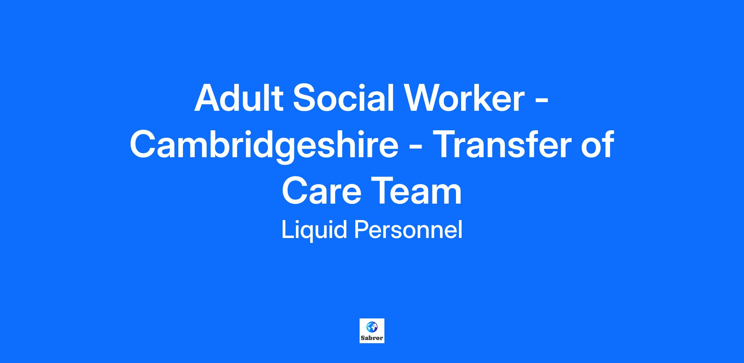 Job Title: Social Worker – Transfer of Care Team Location: Cambridgeshire Rate: £38 per hour An exciting job role has recently become available at the Cambridgeshire. They are looking for a new member for their Transfer of Care Team. What will your responsibilities be? In this role, you will assess individuals in hospitals for care packages or care home placements under the Care Act, conduct Mental Capacity Assessments for care and support, and collaborate with multidisciplinary teams to create care plans. You will engage in carers conversations and facilitate safeguarding discussions, ensuring a personal approach throughout. Benefits of the role: Hybrid working available Diverse caseload Supportive team Qualifications and Experiences: To be successful in this role, you must have Social Work England registration, be eligible to work in the UK, hold a full UK license, have post-qualified experience, and hold a degree level or equivalent qualification in Social Work. How to apply? If this is a job for you, feel free to click apply below or if you want to learn more about it, please contact 0345 241 9590. Why Liquid Personnel? New 'Faster Pay' service getting you paid more quickly Twice weekly payroll Free DBS and compliance service Access to exclusive roles that aren't available from other agencies Free access to Liquid’s exclusive social work training and CPD portal Your own dedicated consultant with extensive social work knowledge Access to a wide selection of social work positions across the UK "Refer a Friend" bonus - get £500 for each social worker you refer who we successfully place* "Find your own job" bonus - get £250 for bringing your own position to us * Liquid Personnel is an equal opportunities employer. Liquid Personnel Ltd is acting as an Employment Business in relation to this vacancy. * Terms and conditions apply to our bonus schemes. Reasonable Adjustments: If you consider yourself to have a disability or require any reasonable adjustment during the recruitment process or within the workplace, please highlight this at the earliest opportunity by contacting our team. With this information, we will provide appropriate support to you throughout the process and into your work placement. We are unable to support or accept applications from candidates who are residents within the Red or Amber list of the Code of practice for the international recruitment of health and social care personnel in England, based on the World Health Organisation (WHO) Workforce Support and Safeguard List. BH - 182287 GH - 22501