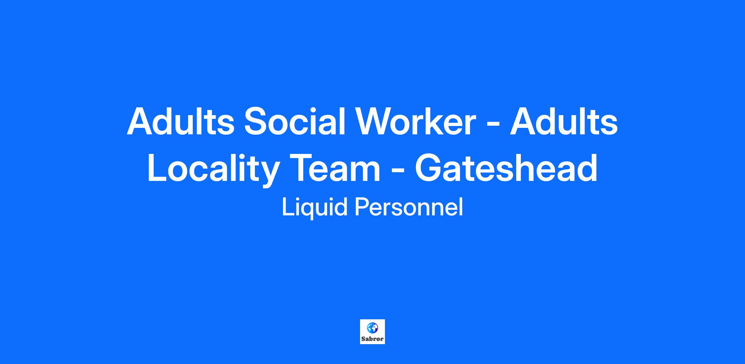 Job Title: Adults Social Worker - Adults Locality Team - Gateshead Location: Gateshead (Hybrid) Pay Rate: £201 per day About the Role: An exciting job role has recently become available at the Gateshead Council. They are looking for a Social Worker for their Locality Team. Benefits of the role: Great rate of pay £201 per day Flexible and hybrid working to support work-life balance Supportive team Requirements for the role: Strong knowledge of relevant legislation, including the Care Act 2014, Mental Health Act 2007, Mental Capacity Act 2005, and Safeguarding Adults policies. Understanding of hospital discharge guidance, Deprivation of Liberty Safeguards, Continuing Health Care, and section 117 aftercare. Ability to interpret and apply legislation in practice while ensuring compliance with the Local Authority’s statutory responsibilities. What we are looking for in a Social Worker: SWE registration Eligible to work in the UK Hold a full UK license Post-qualified experience Degree level or equivalent in Social Work Why Liquid Personnel? New ‘Faster Pay’ service getting you paid more quickly Twice weekly payroll Free DBS and compliance service Access to exclusive roles that aren’t available from other agencies Free access to Liquid’s exclusive social work training and CPD portal Your own dedicated consultant with extensive social work knowledge Access to a wide selection of social work positions across the UK “Refer a Friend” bonus – get £500 for each social worker you refer who we successfully place* “Find your own job” bonus – get £250 for bringing your own position to us * Liquid Personnel is an equal opportunities employer. Liquid Personnel Ltd is acting as an Employment Business in relation to this vacancy. * Terms and conditions apply to our bonus schemes. Reasonable Adjustments: If you consider yourself to have a disability or require any reasonable adjustment during the recruitment process or within the workplace, please highlight this at the earliest opportunity by contacting our team. With this information, we will provide appropriate support to you throughout the process and into your work placement. We are unable to support or accept applications from candidates who are residents within the Red or Amber list of the Code of practice for the international recruitment of health and social care personnel in England, based on the World Health Organisation (WHO) Workforce Support and Safeguard List. BH - 189863 GH - 30350