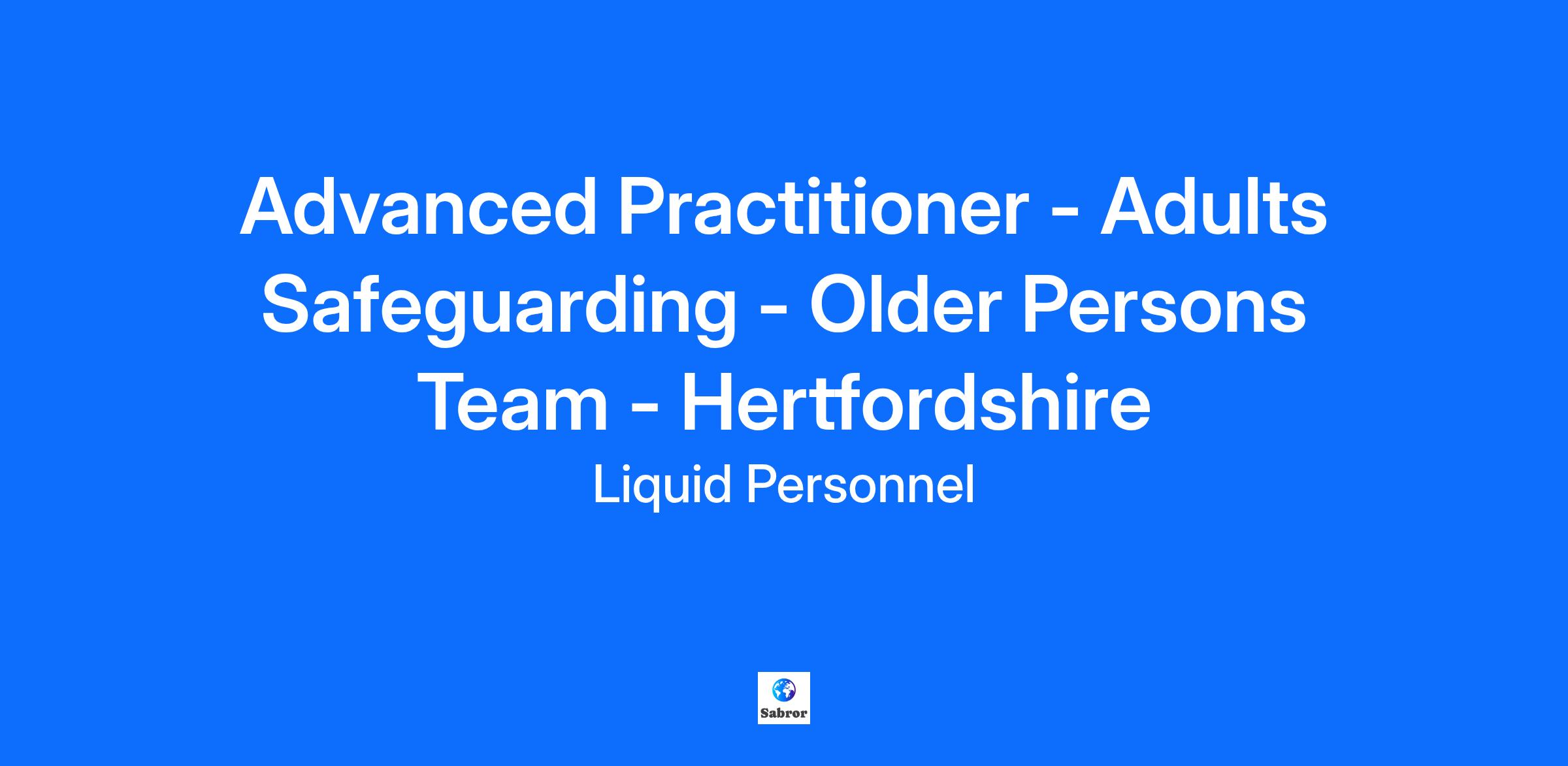 Job Title: Advanced Practitioner - Adults Safeguarding - Older Persons Team - Hertfordshire Location: Hertfordshire (Hybrid) Pay Rate: £34 per hour About the Role: A council is looking for Advanced Practitioners to join their older persons team. If you are passionate about delivering high-quality statutory social care, recognising safeguarding, and developing innovative, creative community solutions, this is the perfect opportunity for you! What will your responsibilities be? In this role, you will be responsible for delivering high-quality statutory social care, including safeguarding, assessment, supervision, and care management functions, as well as developing innovative community solutions. Advanced Practitioners are pivotal in developing links with the local community through multi-agency work with partner organisations, providers, professionals, individuals, families, and carers. You will ensure that all statutory health and social care responsibilities are met and delivered to a high standard. Your role will be essential in maintaining the well-being and safety of the community. Benefits: Hybrid working Supportive team and manager Competitive pay rate Qualifications & Experience: To be successful in this role, you must be a qualified social worker or occupational therapist with a minimum of 2 years of post-qualifying experience. In addition, you also need to actively be in any of the specialist roles, such as Moving and Handling Practitioner, Practice Educator, Approved Mental Health Practitioner, or Best Interest Assessor, or agree to undertake a specialist role within the first year of the role. Essential requirements: Strong written and verbal communication Minimum of 2 years of post-qualification experience. Must possess a valid driver's license and have access to your own reliable transport. How to apply? If this is a job for you, feel free to click apply below or if you want to learn more about it, please contact 02038979851 / chloe.armstrong@liquidpersonnel.com Why Liquid Personnel? New ‘Faster Pay’ service getting you paid more quickly Twice weekly payroll Free DBS and compliance service Access to exclusive roles that aren’t available from other agencies Free access to Liquid’s exclusive social work training and CPD portal Your own dedicated consultant with extensive social work knowledge Access to a wide selection of social work positions across the UK “Refer a Friend” bonus – get £500 for each social worker you refer who we successfully place* “Find your own job” bonus – get £250 for bringing your own position to us * Liquid Personnel is an equal opportunities employer. Liquid Personnel Ltd is acting as an Employment Business in relation to this vacancy. * Terms and conditions apply to our bonus schemes. Reasonable Adjustments: If you consider yourself to have a disability or require any reasonable adjustment during the recruitment process or within the workplace, please highlight this at the earliest opportunity by contacting our team. With this information, we will provide appropriate support to you throughout the process and into your work placement. We are unable to support or accept applications from candidates who are residents within the Red or Amber list of the Code of practice for the international recruitment of health and social care personnel in England, based on the World Health Organisation (WHO) Workforce Support and Safeguard List. BH – 188984 GH – 29519