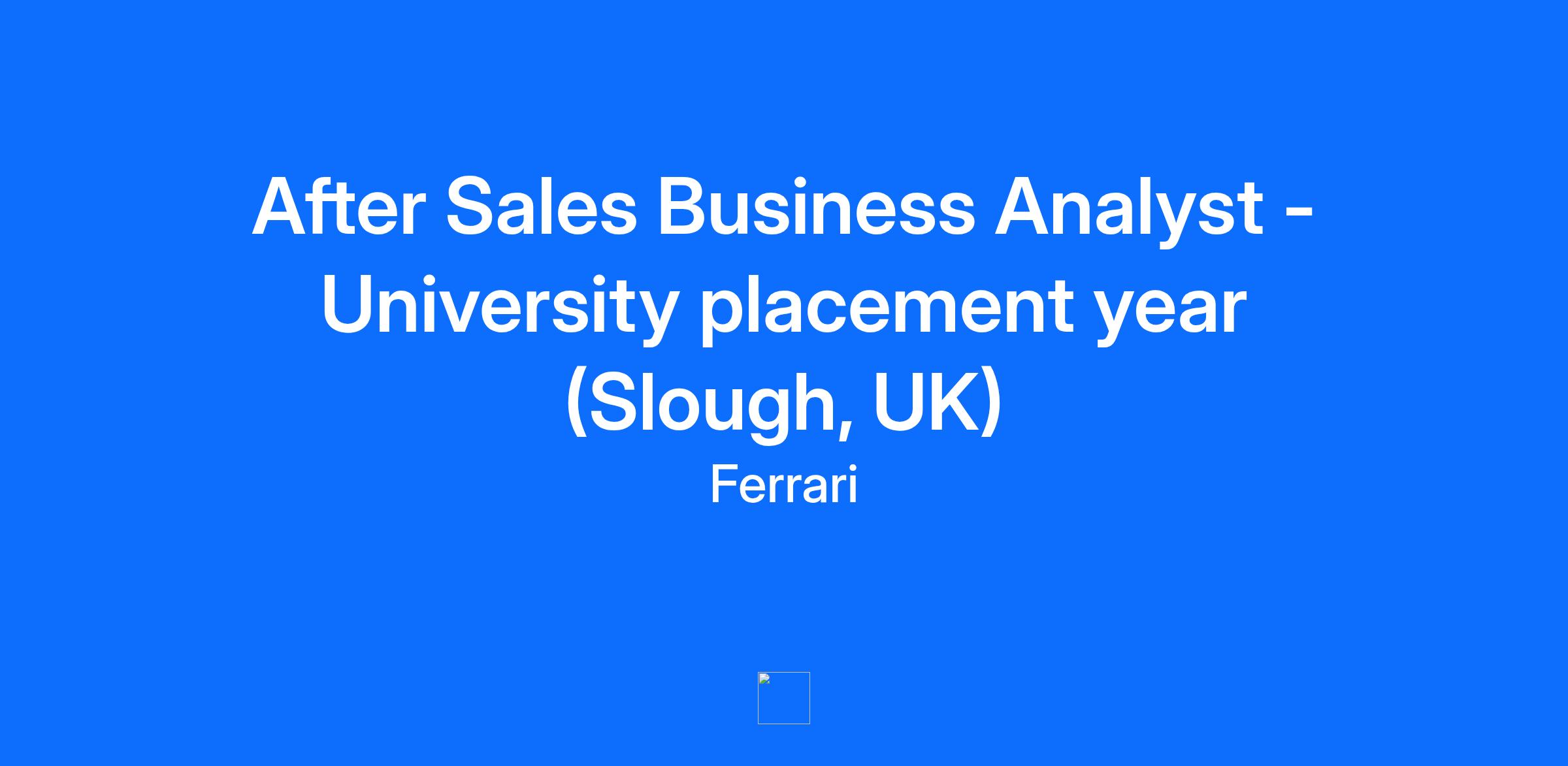 Ferrari has a most desirable track record: outstanding results, a unique product portfolio and an iconic, global brand. Above all Ferrari is a team of dedicated colleagues from 62 different nationalities, working with the highest level of excellence and professionalism and ensuring innovation and continuous improvement at the heart of our organization. We have a dedicated UK-based team (in Slough) representing all our business activities (Marketing, Sales, After-Sales, Spare Parts, Controlling, Communications) in order to deliver outstanding performance and experiences for our clients (Ferrari owners) and prospects (future clients). Ferrari offers selected students with an outstanding academic track record an opportunity for a “gap-year” or “company placement year” to discover our business model and to contribute and learn during a 12-months period (ideally) with our team in the Ferrari Slough offices. As an After Sales Business Analyst, you will work on a full range of responsibilities in our Commercial team, supervised by our After Sales Managers and our Country Manager. Your main responsibilities will include analysis of After-Sales performances across the UK Dealer network, as well as key data collection and a full understanding of the After-Sales indicators. You will understand the importance of KPIs and their commercial impact to drive business development whilst evaluating best practice initiatives within the region. And of course our team will accompany you on your induction and growth across this placement-year in order for to strengthen your professional skills. Your profileYou will ideally be an Undergraduate student available for a year in industry (gap-year or company-placement year). You study business, economics, or similar data-driven courses, and you have to date achieved excellent grades. You should also have a strong work ethic, integrity and be able to multi-task in a dynamic, ever-changing environment. Ideally you will not only have a passion for performance-cars and the automotive sector, and have gained a prior insight through internships or relevant university project assignments or similar. Of course, you will have a solid first understanding of luxury (ideally automotive) sector, gaining clear insight on the specific expectations of our clients and prospects. Previous exposure to project responsibilities would be an asset. The role requires fluency in English (and ideally a second language). In Ferrari we would expect you to be capable of thinking analytically, being client-oriented, highly structured and with excellent relationship- and communicative skills. We are an Equal Opportunity Employer.