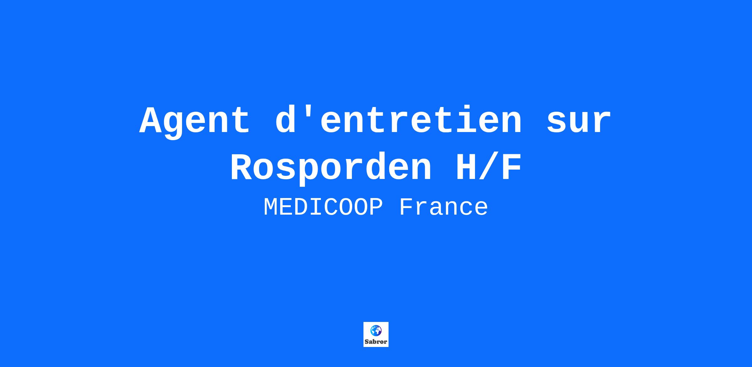 MEDICOOP FRANCE, L'humain au cœur de l'intérim ! MEDICOOP FRANCE recrute pour un de ses coopérateurs un AGENT D'ENTRETIEN H/F en intérim pour un Foyer de vie. INFORMATIONS/AVANTAGES : Durée : en intérim selon vos disponibilités Rémunération : 11.88h brut + primes selon convention Horaires : 07h30 à 16h00 Avantages : Indemnités 10% de fin de mission et 10% de congés payés + Accès aux prestations du FASTT pour différentes aides (mutuelle, logement, garde enfant, déplacement) + Possibilité d'acompte + CSE + Mutuelle. Expérience en tant qu' ASH recommandée VOS MISSIONS : Vous êtes l'une des personnes les plus indispensables! Sans vous l'établissement ne serait ni beau, ni agréable. Alors faites nous partager vos qualités et votre rigueur. Vous êtes intéressé(e) et diplômé(e), n'hésitez plus, envoyez votre CV. Découvrez toutes nos offres sur notre site : https://medicoop-france.fr/