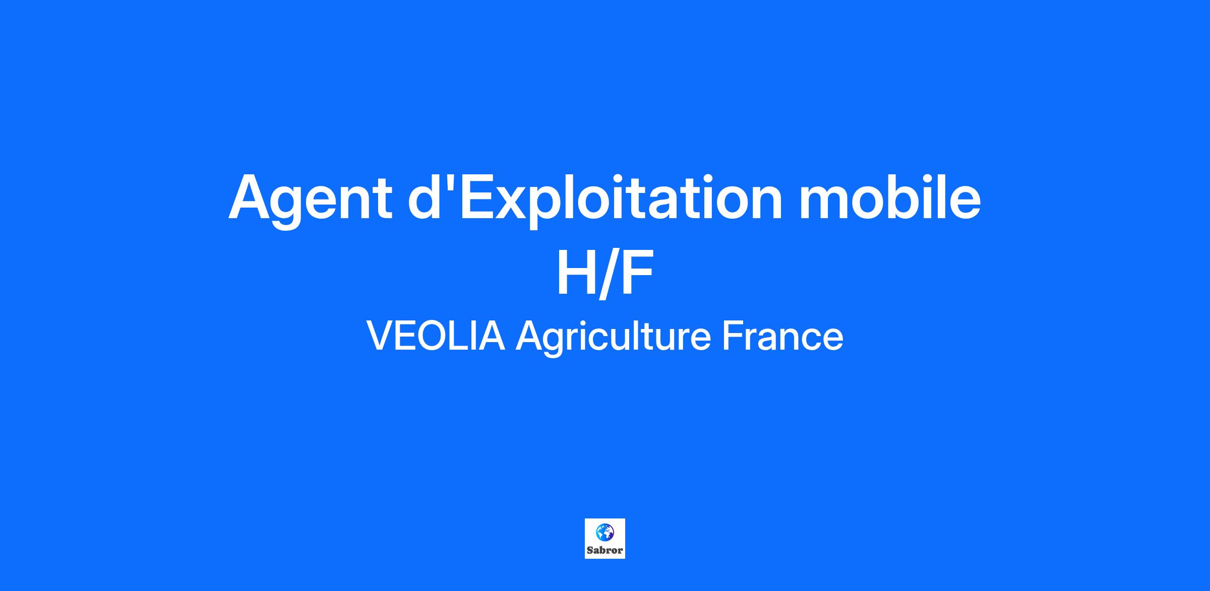 Au sein de la région Sud-Ouest de VEOLIA AGRICULTURE France, nous recherchons un(e) : Agent d’Exploitation mobile H/F