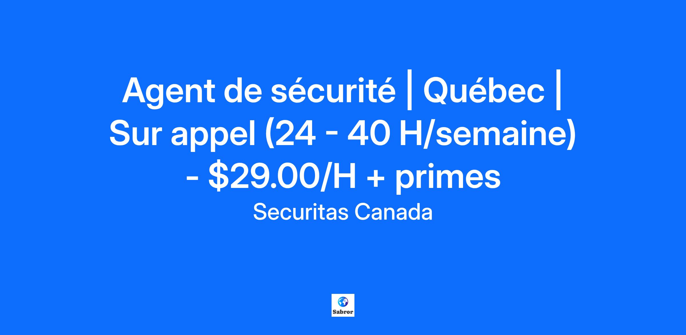 Agent de sécurité | Québec | Sur appel (24 - 40 H/semaine) - $29.00/H + primes SECURITAS est actuellement à la recherche d’agents de sécurité sur appel pour un centre de données situé au Parc Technologique. Vous souhaitez évoluer dans un environnement dynamique, vous avez de l’entregent, un excellent sens du service à la clientèle et aimez le travail d’équipe ? Ce poste est fait pour vous ! Il s’agit d’une belle opportunité pour les personnes souhaitant débuter dans le domaine de la sécurité privée et se familiariser progressivement avec le milieu. Votre implication, votre assiduité et vos performances pourraient rapidement vous ouvrir la porte à un poste permanent à temps plein (40 heures/semaine) dans les mois suivant l’embauche. Poste sur appel (24 - 40 H /semaine) Horaire variable selon les besoins opérationnels, jusqu’à concurrence de 40 heures par semaine Quart de jour : lundi – vendredi (7 am – 3 pm) Quart de soir : lundi – vendredi (3 pm – 11 pm) Environ 24 heures par semaine (soit 3 quarts de travail) Disponibilité la fin de semaine (un atout) Agent de contrôle d’accès dans un environnement technologique Lieu : Ville de Québec 5 ans de résidence au Canada OBLIGATOIRE Le salaire : $29.00/H + primes Secourisme ($0.60) Service à la clientèle ($0.50) Prime de nuit entre 10 pm – 6 am ($1.00) Exigences : Permis d'agent de sécurité valide (BSP) Certificat de secourisme valide (RCR) Expérience souhaitée dans le domaine de la sécurité, des services publics (police, pompiers) ou des forces armées Avoir le droit légal de travailler au Canada Capacité à parler, lire et écrire en français de manière professionnelle (et anglais si requis) Bonne maîtrise des outils informatiques de base Bon sens de l’initiative et autonomie Excellentes compétences en communication et en service à la clientèle Idéalement vivre dans la ville de Québec et ses environs Responsabilités principales : Assurer la surveillance et le contrôle des accès physiques au centre de données, en validant l’identité des visiteurs, employés et sous-traitants Gérer les autorisations d’entrée et de sortie (badges, registres et questions de routine) Appliquer rigoureusement les procédures d’accueil et d’accompagnement des visiteurs autorisés Intervenir de manière professionnelle en cas d’incident, d’alarme ou de situation inhabituelle, et rédiger les rapports requis Maintenir à jour les registres de sécurité, journaux d’événements et rapports d’accès Respecter les consignes de confidentialité et de conformité propres au milieu informatique et aux normes en vigueur Répondre efficacement aux demandes et besoins du client, avec professionnalisme Seuls les candidats retenus pour une entrevue seront contactés. Merci de votre compréhension. Securitas Canada souscrit au principe de l’équité en matière d’emploi. Nous encourageons les personnes faisant partie des quatre groupes désignés – femmes, communautés autochtones, minorités visibles et personnes handicapées à poser leur candidature. #AF-Quebec