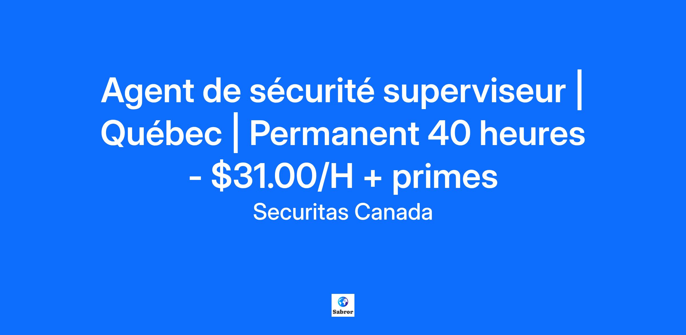 Agent de sécurité superviseur | Québec | Permanent 40 heures - $31.00/H + primes Securitas est à la recherche d’un agent de sécurité superviseur pour un centre de données situé au Parc Technologique. Vous aimez le travail d’équipe, vous avez le souci du service à la clientèle, vous avez toujours désiré un horaire stable, et vous cherchez un environnement calme et professionnel ? Ce poste est fait pour vous. C’est une excellente occasion pour ceux qui débutent dans le domaine de la sécurité privée et souhaitent acquérir de l’expérience à leur rythme, dans un cadre structuré et stimulant. Poste permanent à temps plein (40 heures) Quart de jour : lundi – vendredi (7 am – 3 pm) Quart de soir : lundi – vendredi (3 pm – 11 pm) Poste de sécurité dans un environnement technologique Lieu : Ville de Québec Bilinguisme (français et anglais) OBLIGATOIRE 5 ans de résidence au Canada OBLIGATOIRE Le salaire : $31.00 + primes Secourisme ($0.60) Service à la clientèle ($0.50) Prime de nuit entre 10 pm – 6 am ($1.00) Exigences : Permis d'agent de sécurité valide (BSP) Certificat de secourisme valide (RCR) Expérience souhaitée dans le domaine de la sécurité, des services publics (police, pompiers) ou des forces armées Expérience en supervision (1 an ou plus) considérée comme un atout Avoir le droit légal de travailler au Canada Capacité à parler, lire et écrire en français de manière professionnelle (et anglais si requis) Bonne maîtrise des outils informatiques de base Bon sens de l’initiative et autonomie Excellentes compétences en communication et en service à la clientèle Responsabilités principales : Assurer la gestion et la coordination des agents de sécurité durant son quart de travail Veiller au respect des procédures de contrôle d’accès et de sécurité physique du centre de données Superviser les activités au poste de contrôle : caméras de surveillance, systèmes d’alarme, registres d’accès et logiciels de gestion Répartir les tâches et donner les consignes aux agents de sécurité au début et pendant le quart Effectuer des rondes de supervision et s’assurer de la conformité dans les zones sensibles Intervenir rapidement en cas d’incident, alarme ou anomalie, et assurer la prise en charge de la situation jusqu’au transfert à la hiérarchie ou aux autorités compétentes Rédiger et valider les rapports d’incidents, journaux de quart et toute documentation nécessaire Être l’interlocuteur principal des équipes internes durant son quart, répondre aux demandes et remonter les informations pertinentes Former, encadrer et soutenir les agents dans l’application des consignes et le respect des normes de confidentialité Veiller à l’application des protocoles liés à la continuité des opérations, à la confidentialité et aux normes de conformité (ISO, SOC, etc.) Assurer une passation de quart claire et complète avec le superviseur suivant Conditions de travail et exigences physiques : Maintenir son calme lors d’interactions avec les autorités, les clients, le public et les collègues, même en situation d’urgence Possibilité d’être exposé à des situations tendues (personnes non autorisées, interventions physiques) Possibilité de faire des heures supplémentaires non planifiées Utilisation fréquente de l’ordinateur et des équipements de contrôle Être en mesure de marcher, rester debout ou assis pendant de longues périodes (jusqu’à 20 km par quart de travail) Monter des escaliers, se pencher, s’agenouiller et circuler sur des surfaces irrégulières Porter un appareil léger (jusqu’à 2,5 kg) durant tout le quart de travail Soulever occasionnellement jusqu’à 11 kg Travailler dans des conditions météorologiques difficiles ou dans des environnements exigeant un équipement de protection Gérer de l’information confidentielle avec discrétion Si vous êtes à l’aise dans un environnement informatique, que vous possédez d’excellentes compétences en communication, en organisation et en leadership, ce poste est fait pour vous. Rejoignez Securitas et participez activement à la sécurité et à la performance de notre centre de données à Québec. Seuls les candidats retenus pour une entrevue seront contactés. Merci de votre compréhension. Securitas Canada souscrit au principe de l’équité en matière d’emploi. Nous encourageons les personnes faisant partie des quatre groupes désignés – femmes, communautés autochtones, minorités visibles et personnes handicapées à poser leur candidature. #AF-Quebec