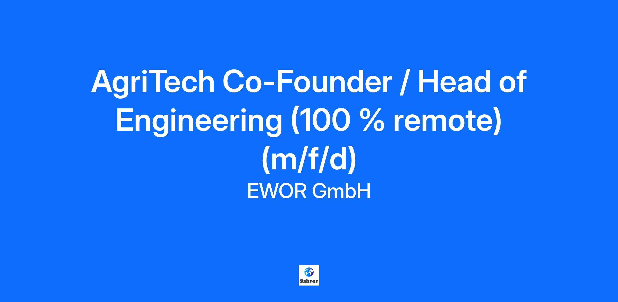 AgriTech Co-Founder / Head of Engineering (100 % remote) (m/f/d)
