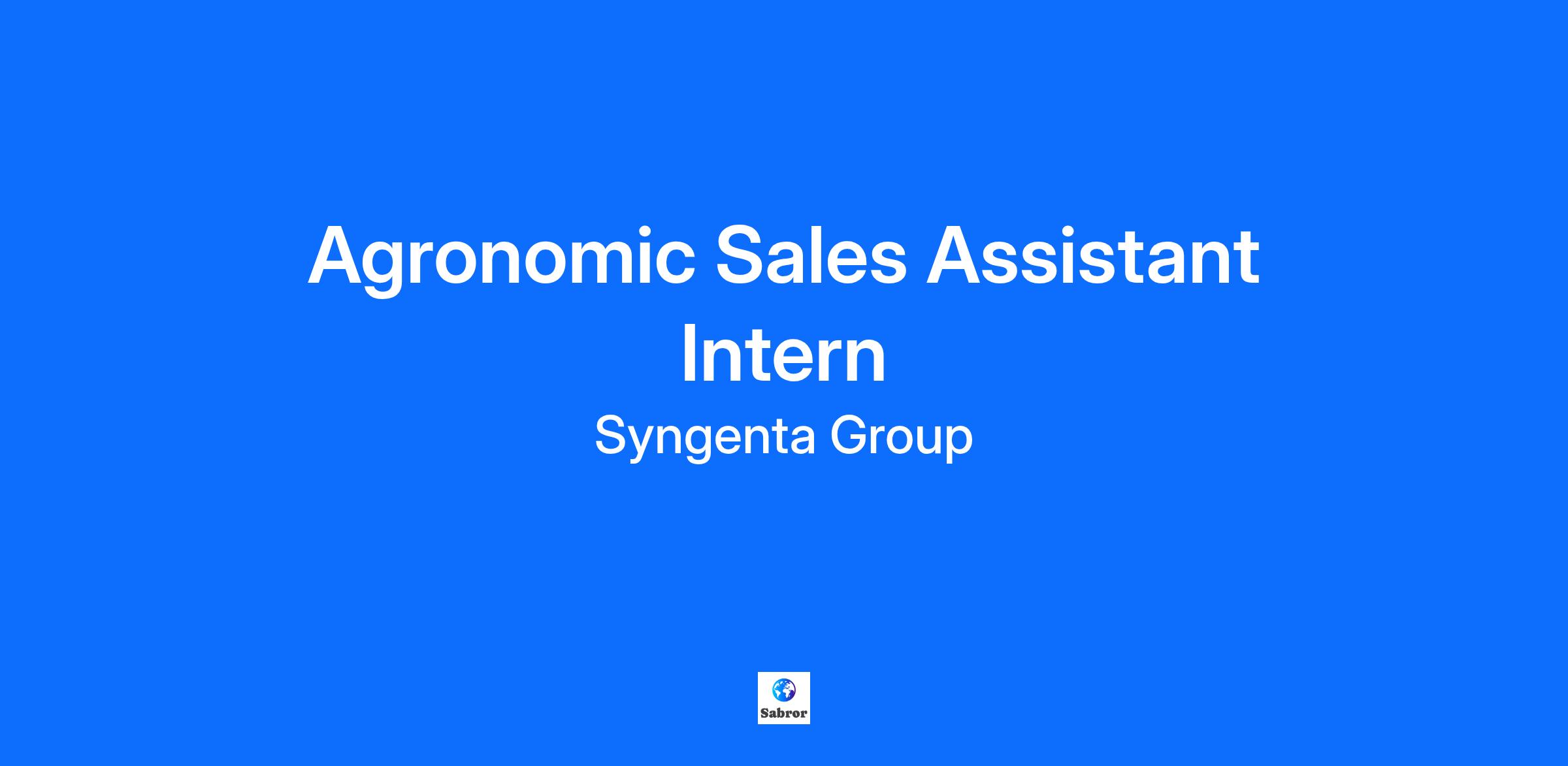 Company DescriptionAs a world market leader in crop protection, we help farmers to counter these threats and ensure enough safe, nutritious, affordable food for all – while minimizing the use of land and other agricultural inputs.Syngenta Crop Protection keeps plants safe from planting to harvesting. From the moment a seed is planted through to harvest, crops need to be protected from weeds, insects and diseases as well as droughts and floods, heat and cold.Syngenta Crop Protection is headquartered in Switzerland. Job DescriptionWe invite you to help us shape the future of agriculture. At Syngenta, we believe every employee has a role to play in safely feeding the world and taking care of our planet. To support that challenge, the Sales team is currently seeking an Agronomic Sales Assistant Intern in Prince Edward Island. As an Agronomic Sales Assistant Intern, you will work alongside our sales team to provide outstanding customer service and support to growers and retailers. Accountabilities Coordinate field trials and analyze results Provide support to the sales team within your territory Support in providing superior customer service to growers and retailers Gain valuable experience in agricultural practices, knowledge of our products, and direct interaction with grower and retail customers Duration: April 2026 – October 2026 (Preferred), but open to 4 month internship from April through August 2026QualificationsRequirements A positive attitude, excitement for learning, and passion for agriculture Currently pursuing a Bachelor’s or Master’s degree from an accredited university in Agriculture, Science, Business or related field class 5 license Ability to lift a max weight of 50lbs Comfortable driving long distances You might also have: Prior experience in research is considered an asset Previous relevant summer experience is considered an asset, however all experience levels and academic disciplines are welcome to apply Additional InformationSyngenta Intern Scholarship Program: All students hired into a Syngenta Internship role will have the opportunity to apply for 1 of 9 exclusive scholarships valued at $2000 each. This program is designed to recognize and reward a commitment to academic excellence, and foster continued growth and development of our team Additional informationSyngenta is an Equal Opportunity Employer and does not discriminate in recruitment, hiring, training, promotion or any other employment practices for reasons of race, color, religion, gender, national origin, age, sexual orientation, gender identity, marital or veteran status, disability, or any other legally protected status. Syngenta Contact Information: If you need assistance during the application process, please contact the Service Desk at [email protected] Syngenta Canada welcomes applications from all qualified candidates and is able to accommodate persons with disabilities. For more information about accommodation during any stage of the recruitment process or if you would like more information on our accommodation policies, please contact [email protected] #LI-DNI