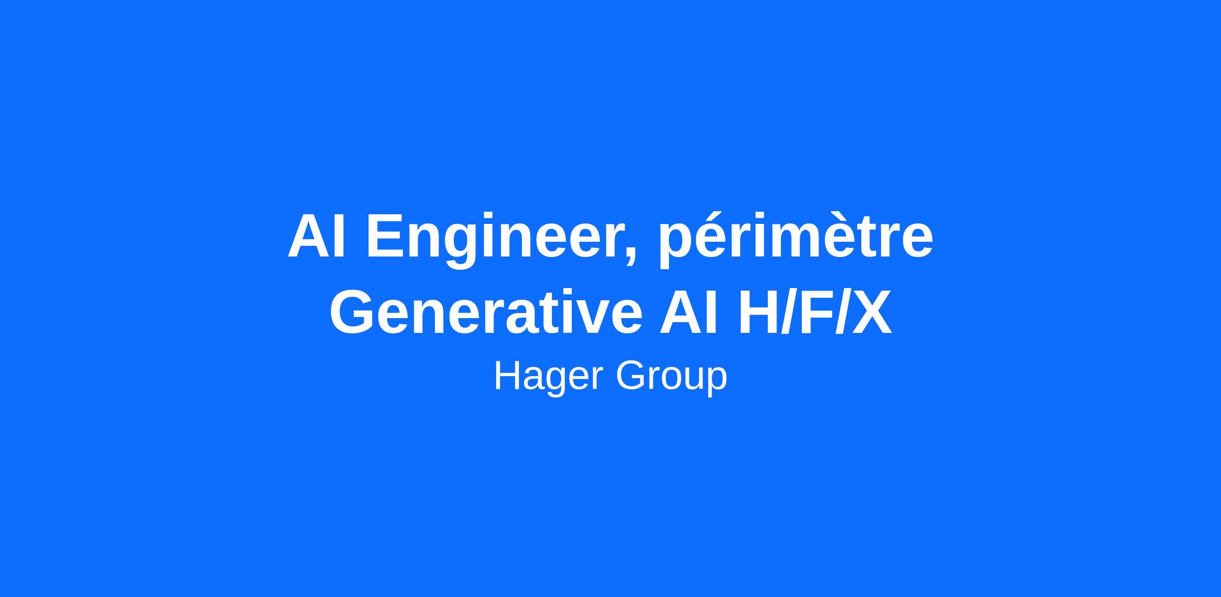 Hager Group, acteur majeur dans le secteur du matériel électrique, cherche à renforcer son département Digital & Information par la création d’un nouveau poste d’ingénieur en intelligence artificielle (AI engineer) pour des projets en Intelligence Artificielle Générative (Generative IA).