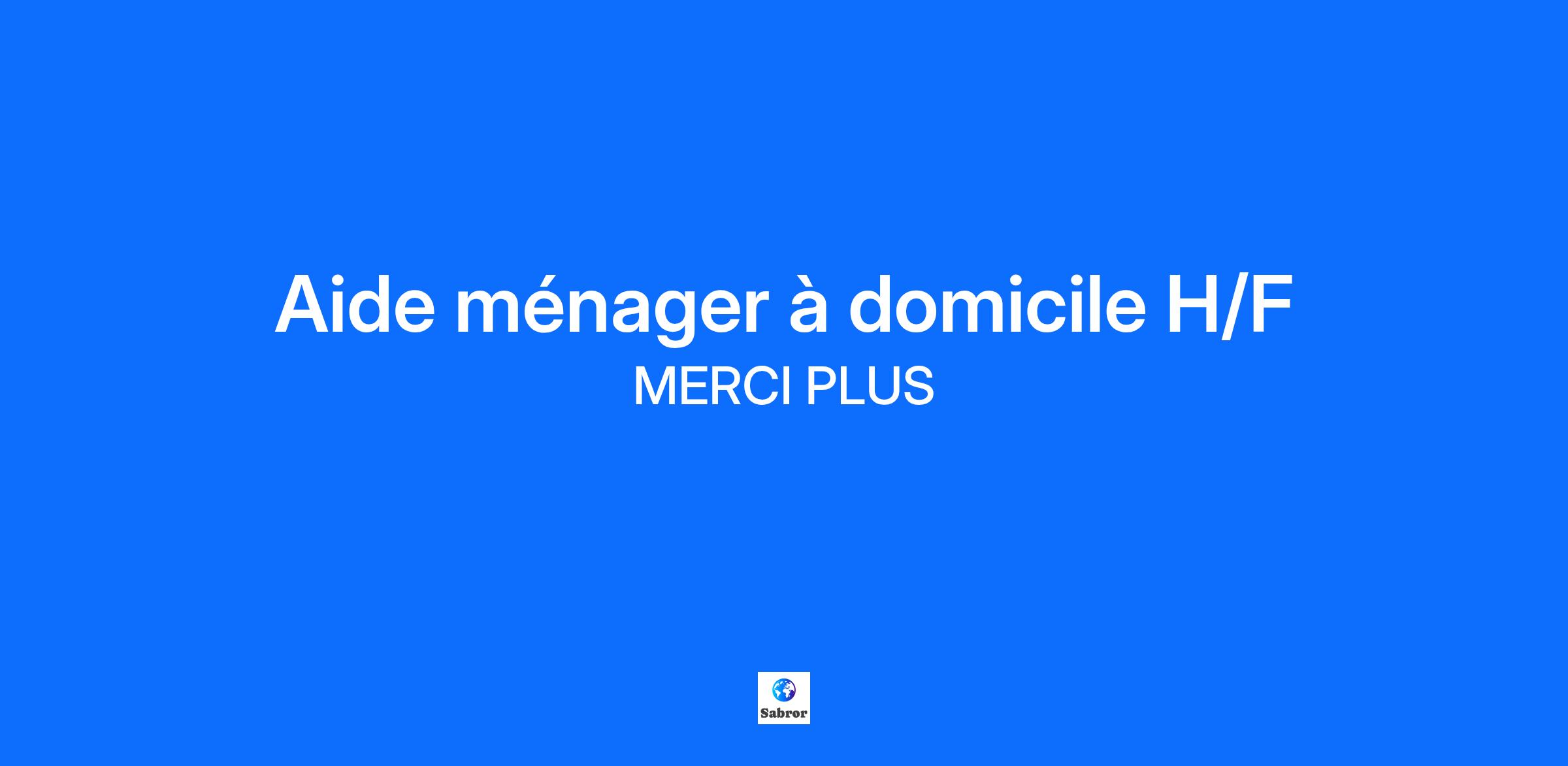 MerciPlus, des revenus en + ! Vous souhaitez effectuer une activité à temps partiel ou compléter votre travail, votre retraite ? Vous souhaitez travailler pendant que vos enfants sont à l'école ? Vous êtes une (ou un !) "fée du logis" ? Nous sommes faits pour nous rencontrer ! Chez MerciPlus, nous adaptons chaque planning aux envies de nos aide-ménager(e)s. Venez profiter d'un poste aux nombreux avantages : - Un emploi stable en CDI uniquement et à temps partiel - Des horaires aménageables en journée du lundi au vendredi - Des clients à proximité de votre domicile - Un planning fixe - Une équipe dédiée à votre suivi, disponible et à l’écoute - Une formation à votre embauche - Un accompagnement tout au long de votre carrière - Un accès au planning en temps réel et déclaration des heures de travail sur votre smartphone via notre application Rémunération jusqu’à 15€ brut / heure incluant : - des bonus fidélité clients - des frais de déplacements - des frais professionnels - vos congés payés Et des privilèges en + ! - Parrainage salarié/client - Mutuelle d’entreprise - Prime d’ancienneté à partir de 2 ans Profil recherché Avec ou sans expérience sur un poste similaire, vous appréciez le travail en autonomie et êtes capable d’assurer les prestations de ménage et repassage au domicile de particuliers Vous êtes reconnu(e) pour vos capacités d’écoute et d’adaptation Vous êtes ponctuel(le) et une personne de confiance Vous vous reconnaissez dans ce descriptif ? N’attendez plus et venez nous rejoindre. MerciPlus saura faire de vous un salarié heureux ! Poste à pourvoir à Vertou (44). Retrouvez nous aussi sur notre site carrière !