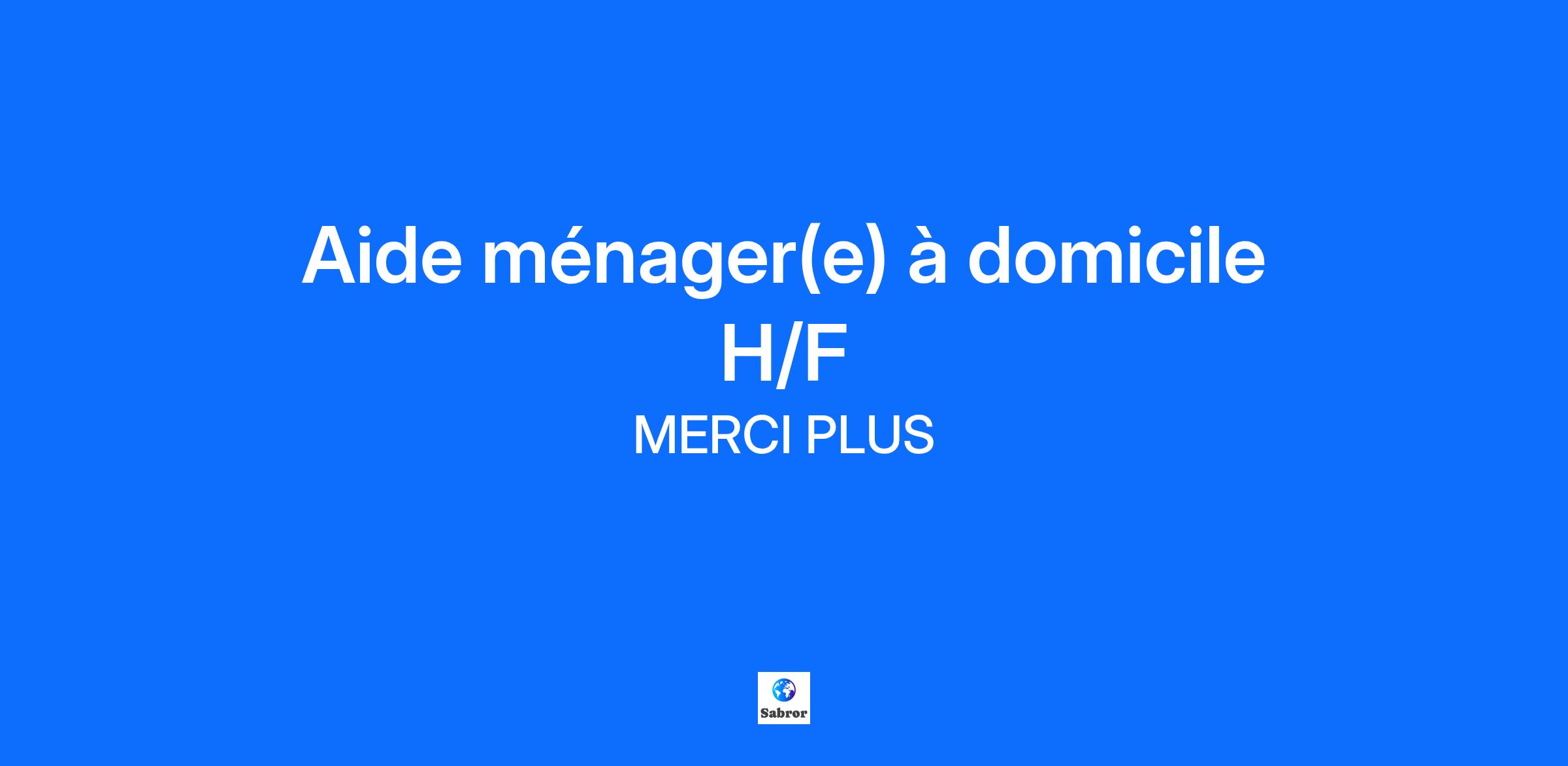 MerciPlus, des revenus en + ! Vous souhaitez effectuer une activité à temps partiel ou compléter votre travail, votre retraite ? Vous souhaitez travailler pendant que vos enfants sont à l'école ? Vous êtes une (ou un !) "fée du logis" ? Nous sommes faits pour nous rencontrer ! Chez MerciPlus, nous adaptons chaque planning aux envies de nos aide-ménager(e)s. Venez profiter d'un poste aux nombreux avantages : - Un emploi stable en CDI uniquement et à temps partiel - Des horaires aménageables en journée du lundi au vendredi - Des clients à proximité de votre domicile - Un planning fixe - Une équipe dédiée à votre suivi, disponible et à l’écoute - Une formation à votre embauche - Un accompagnement tout au long de votre carrière - Un accès au planning en temps réel et déclaration des heures de travail sur votre smartphone via notre application Rémunération jusqu’à 15€ brut / heure incluant : - des bonus fidélité clients - des frais de déplacements - des frais professionnels - vos congés payés Et des privilèges en + ! - Parrainage salarié/client - Mutuelle d’entreprise - Prime d’ancienneté à partir de 2 ans Profil recherché Avec ou sans expérience sur un poste similaire, vous appréciez le travail en autonomie et êtes capable d’assurer les prestations de ménage et repassage au domicile de particuliers Vous êtes reconnu(e) pour vos capacités d’écoute et d’adaptation Vous êtes ponctuel(le) et une personne de confiance Vous vous reconnaissez dans ce descriptif ? N’attendez plus et venez nous rejoindre. MerciPlus saura faire de vous un salarié heureux ! Poste à pourvoir à Sainte Luce Sur Loire (44). Retrouvez nous aussi sur notre site carrière !