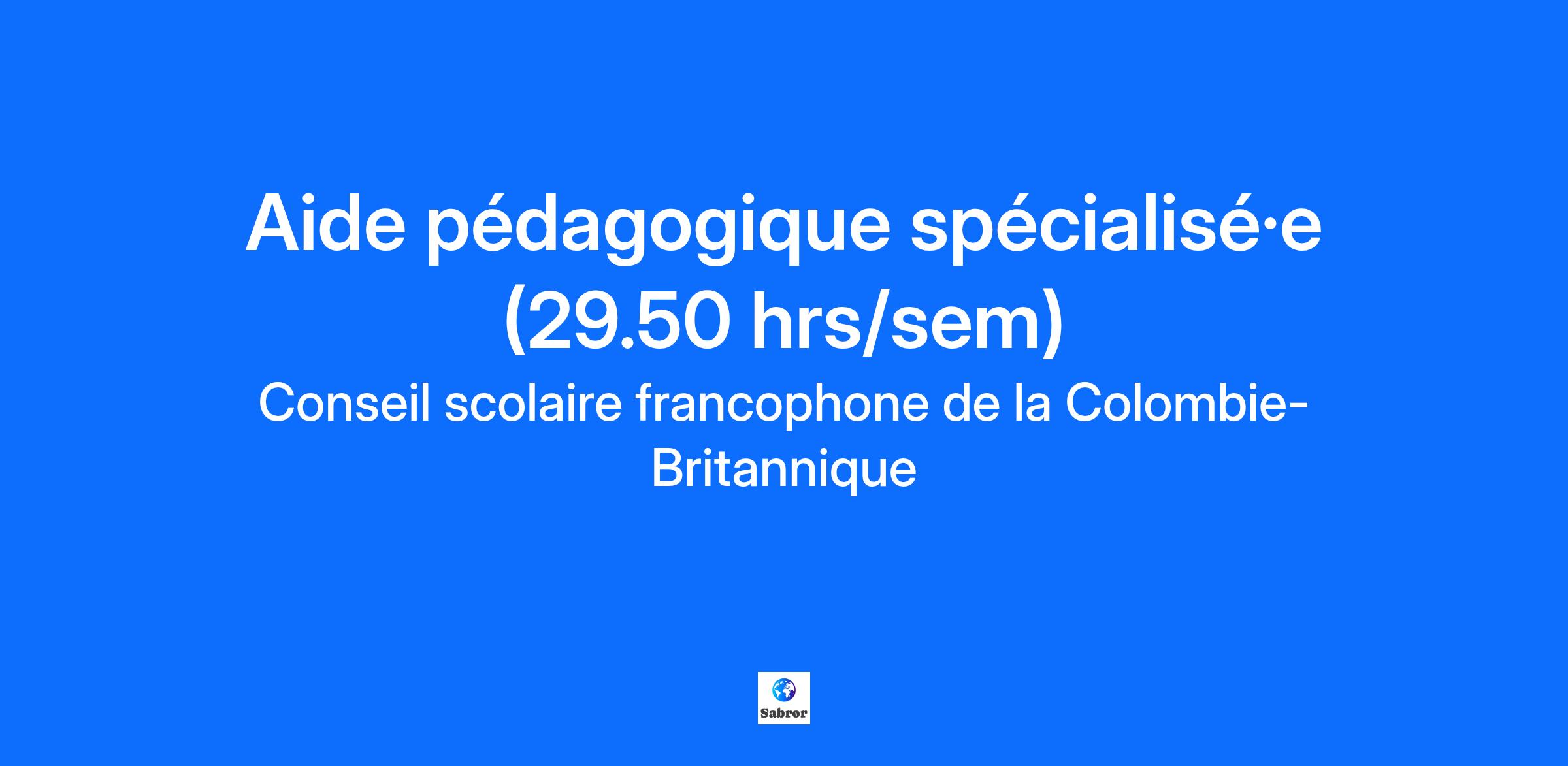 Description de l'entreprise Dans un esprit de réconciliation, nous reconnaissons que notre organisation et nos écoles se trouvent sur les territoires traditionnels des Premiers Peuples de la Colombie-Britannique. Nous sommes reconnaissant·e·s de prospérer sur ces territoires tout en prenant soin des familles et des enfants qui comptent pour nous afin de leur assurer un avenir rayonnant. Rejoindre notre équipe au Conseil scolaire francophone de la Colombie-Britannique, c'est saisir une belle opportunité de contribuer à l'épanouissement de la francophonie en milieu minoritaire dans un environnement éducatif dynamique qui incarne les principes d'apprentissage autochtones et valorise les apprentissages universels. Riche de nos 47 écoles à travers toute la province, nous sommes engagé·e·s envers la réussite de chacun de nos élèves. L'inclusion et la bienveillance au CSF sont les piliers de notre approche éducative. Tous-tes nos élèves sont accueilli·e·s dans un environnement scolaire inclusif et sécuritaire, adapté à leurs spécificités culturelles et individuelles, favorisant ainsi leur réussite scolaire et leur bien-être personnel. Pour savoir plus sur le CSF, visitez notre site internet. Description du poste Affichage (poste): #25-26/APS.021 Type de poste: Temporaire Répartition: 10 mois du calendrier scolaire (1er septembre au 30 juin) Taux horaire: 34.05$/heure, selon l’échelle de la convention collective Date de début du contrat: Dès que possible Date de fin du contrat: 25/06/2026 Date de début d’affichage: 25/09/2025 Date de fin d’affichage: 01/10/2025 Participer au développement et à la mise en œuvre des plans d’apprentissage personnalisés (PAP) des élèves à besoins divers de la maternelle à la 12e année ; Soutenir les élèves à besoins divers en utilisant une variété de stratégies d’intervention et des techniques de résolution de conflits, dans le but de faciliter leur inclusion sociale et scolaire ; Créer et préparer le matériel d’apprentissage adapté aux besoins de l’élève (support visuel ; support tactile ; etc.) en lien avec les recommandations du PAP ou des plans mis en place par l’équipe d’intervention ; Assister et accompagner les élèves afin de les aider à développer leurs habiletés et compétences vers leur autonomie (ex : besoins personnels et habiletés de vie ; etc.) ; Observer et documenter les comportements et les interactions des élèves et partager ces données avec l’équipe d’intervention dans le but de mieux répondre à leurs besoins ; Signaler, documenter et partager aux personnes responsables tout incident, inquiétude et préoccupation reliés à la sécurité et au bien-être (physique et socio-émotionnel) des élèves, y compris ceux de nature confidentielle. Note: Cet emploi se compose de 28.50h d'Aide pédagogique spécialisée en accompagnement d'élèves à besoins spéciaux et 1h de préparation (temps LIF - Learning improvement fund) qui doit être réalisé en dehors de la présence des élèves. Ceci représente 29.5h par semaine au total. Il peut être combiné avec un poste de 5h d'ambassadeur·drice de la culture francophone. Les candidat·es intéressé·es sont les bienvenu·es de postuler à l'ensemble des affichages. Qualifications Être titulaire d’un certificat ou diplôme d’aide pédagogique spécialisée de la Colombie-Britannique ou dans un domaine connexe ou encore une combinaison d’éducation et d’expérience équivalente; Un minimum d’un (1) an d’expérience antérieure dans un domaine connexe ; Être en mesure de suivre le programme d’étude et les approches éducatives de la Colombie-Britannique et du CSF afin de soutenir l’inclusion de tous les élèves en salle de classe ; Capacité à développer ses compétences en informatiques ; Capacité à travailler avec des élèves à besoins complexes de la Maternelle à la 12e année ; Maîtrise du français à l’oral et à l’écrit, maîtrise de l’anglais, un atout ; Formation en premiers soins, un atout. Informations supplémentaires Nous vous encourageons à soumettre votre candidature en ligne en français. Nous tenons à remercier tous les candidats et toutes les candidates de leur intérêt pour ce poste. Veuillez noter que seules les personnes convoquées en entrevue seront contactées. Dans un esprit de réconciliation, nous reconnaissons que notre organisation et nos écoles se trouvent sur les territoires traditionnels des Premiers Peuples de la Colombie-Britannique.