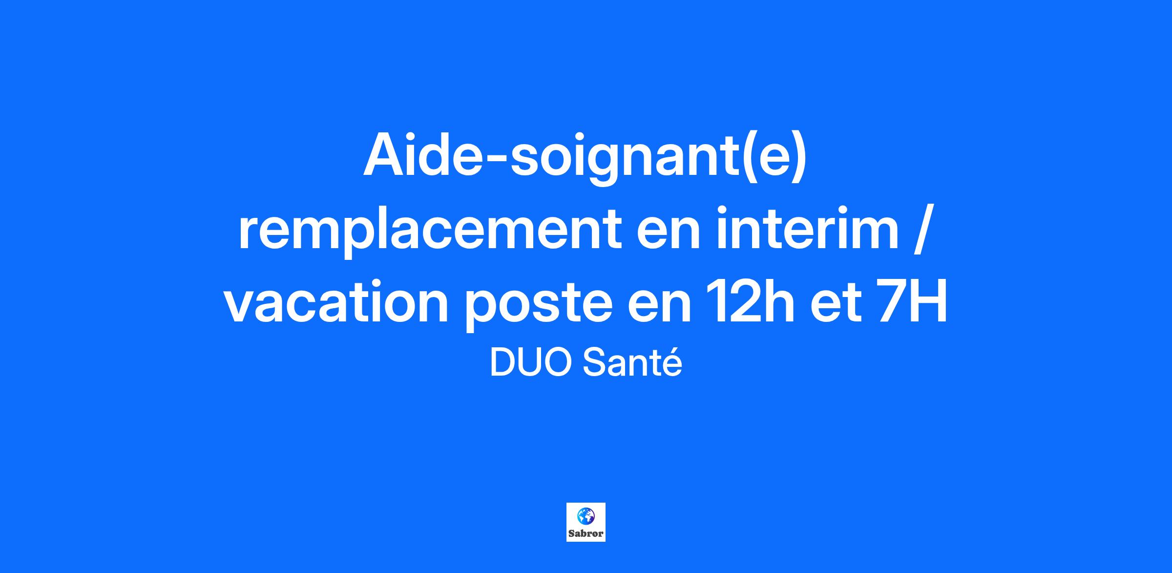 Aide-soignant(e) remplacement en interim / vacation poste en 12h et 7H