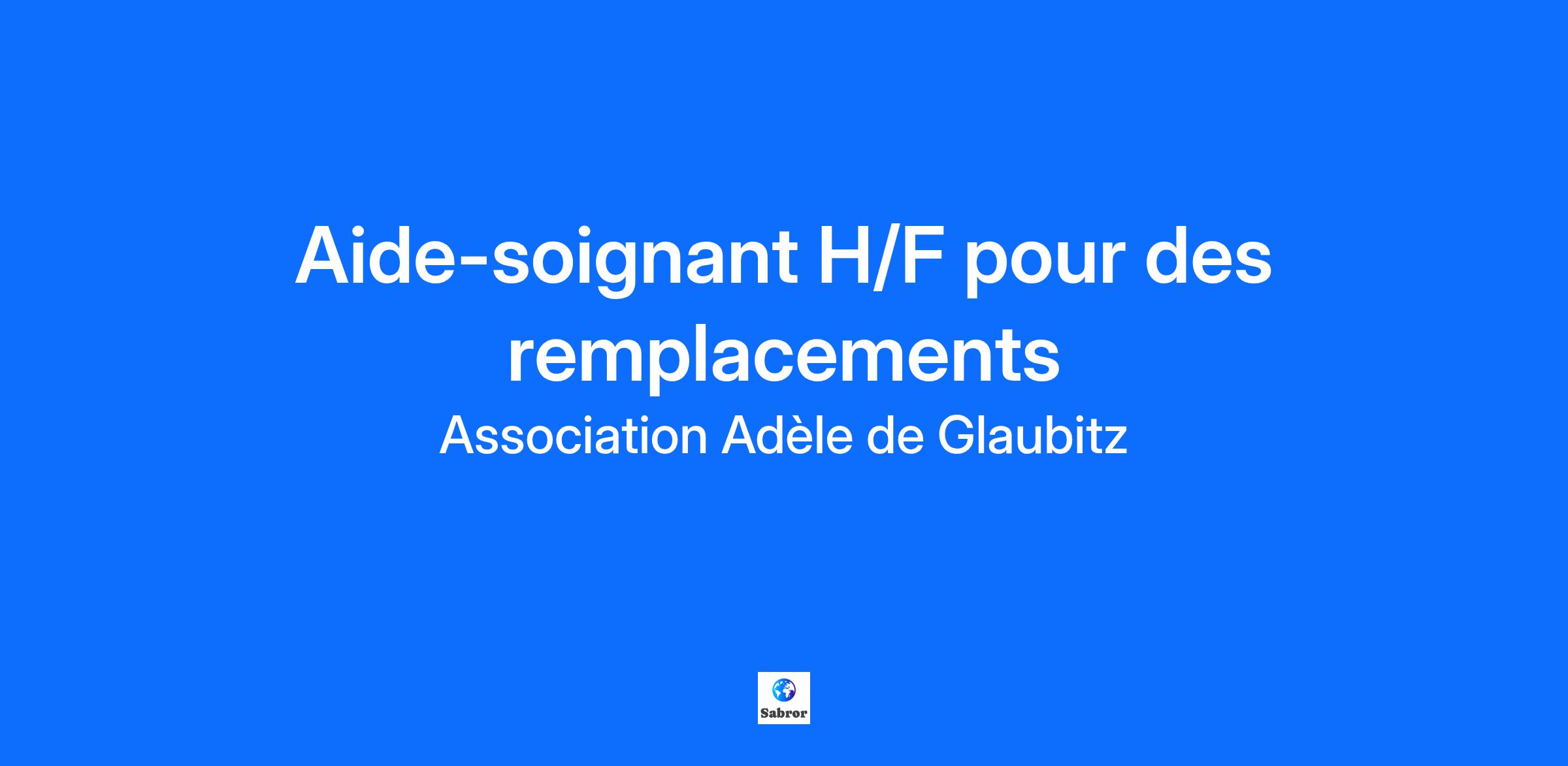 Faites de votre talent un métier ! Rejoignez l'Association Adèle de Glaubitz et donnez du sens à votre engagement Qui sommes-nous ? L'Association Adèle de Glaubitz est un acteur fort du secteur social, médico-social et sanitaire. Avec 41 établissements et services répartis sur le territoire alsacien, nous accompagnons au quotidien 2000 enfants, adultes et personnes âgées en situation de handicap, de grande dépendance ou en protection de l'enfance. Notre mission ? Co-construire un accompagnement personnalisé, centré sur l'humain, en s'appuyant sur des valeurs de solidarité, de bienveillance et d'engagement. Notre établissement La MAS Marie-Rose Harion accueille 45 personnes adultes polyhandicapées. Nous recrutons : Aide-soignant H/F Lieu : Bas-Rhin/67 Type de contrat : CDD renouvelables de mois en mois Rémunération : selon CCN 66 et votre expérience Date de prise de poste : dès que possible Vos missions Réaliser des actions de soins, d'accompagnement et d'assistance favorisant le développement de la personne accueillie, conformément à son projet individuel. Horaires de journées : de 7 heures à 21 heures, 1 week-end travaillé sur 2. Votre profil DE AS Qualités recherchées Savoir faire preuve de rigueur Savoir travailler en équipe Pourquoi nous rejoindre ? Une association engagée et porteuse de valeurs humaines fortes Un environnement de travail pluridisciplinaire et dynamique Des perspectives d'évolution et de formations Des avantages Rémunération selon CCN du 15/03/66 Reprise de l'ancienneté dans sa totalité Congés trimestriels (18 jours de congés supplémentaires par année) L'indemnité Ségur/Laforcade/Métiers médico-sociaux est appliquée dans notre établissement Participation aux transports collectifs. Nous avons hâte de vous rencontrer et de partager l'aventure avec vous !