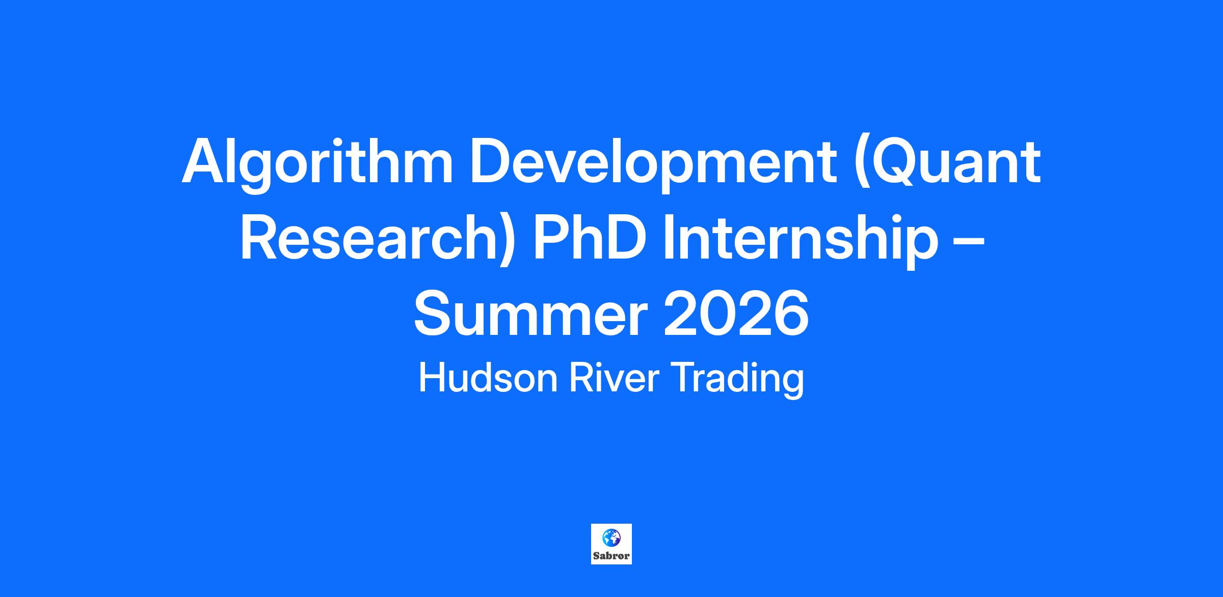 Hudson River Trading (HRT) is seeking exceptional full-time PhD students to join our Algorithm Development summer internship program. Algorithm Developers at HRT focus on the research and implementation of automated trading strategies. Trading in 200+ markets around the world in a variety of time horizons ensures there are always innovative self-guided paths to explore — with opportunities to make a big impact. Through this internship you’ll have the opportunity to rotate across teams, learning and collaborating alongside researchers and technologists that apply their passion and expertise to solving the most nuanced problems in our industry. What to Expect * Use advanced research experience and expertise to apply academic research to impactful real world problems in trading across time horizons and machine learning strategies * Leverage our proprietary infrastructure (Python/C++) in conjunction with third-party tools to conduct quantitative research and data analysis * Use machine learning and time series techniques to derive novel insights on market behavior from large and complex datasets * Use our industry-leading compute cluster to run simulations and crunch data * Build predictive models for financial markets using a combination of market and non-market data * Attend and participate in Tech Talks that provide an overview of markets and HRT’s trading philosophy * Enjoy a curriculum of speakers, trading games, mentorships, and social events throughout the summer Qualifications * You are a full-time PhD student in a quantitative discipline (math, physics, computer science, statistics, operations research, machine learning etc.) with a planned graduation timeline of 2027 or 2028 * Fluency in Python is a must * Experience with statistical analysis, numerical programming, or machine learning in Python, Pandas/Numpy, R, and/or MATLAB * You’re excited to apply your research expertise to identify new opportunities in worldwide markets * Strong communication skills Culture Hudson River Trading (HRT) brings a scientific approach to trading financial products. We have built one of the world's most sophisticated computing environments for research and development. Our researchers are at the forefront of innovation in the world of algorithmic trading. At HRT we welcome a variety of expertise: mathematics and computer science, physics and engineering, media and tech. We’re a community of self-starters who are motivated by the excitement of being at the cutting edge of automation in every part of our organization—from trading, to business operations, to recruiting and beyond. We value openness and transparency, and celebrate great ideas from HRT veterans and new hires alike. At HRT we’re friends and colleagues – whether we are sharing a meal, playing the latest board game, or writing elegant code. We embrace a culture of togetherness that extends far beyond the walls of our office. Feel like you belong at HRT? Our goal is to find the best people and bring them together to do great work in a place where everyone is valued. HRT is proud of our diverse staff; we have offices all over the globe and benefit from our varied and unique perspectives. HRT is an equal opportunity employer; so whoever you are we’d love to get to know you. Please be advised: Use of AI tools during interviews or assessments is strictly prohibited, unless otherwise instructed or agreed upon. We employ various methods to evaluate the authenticity of candidate responses. If we determine that AI assistance was used during any stage of the hiring process, we reserve the right to immediately disqualify your candidacy or rescind any job offers extended.