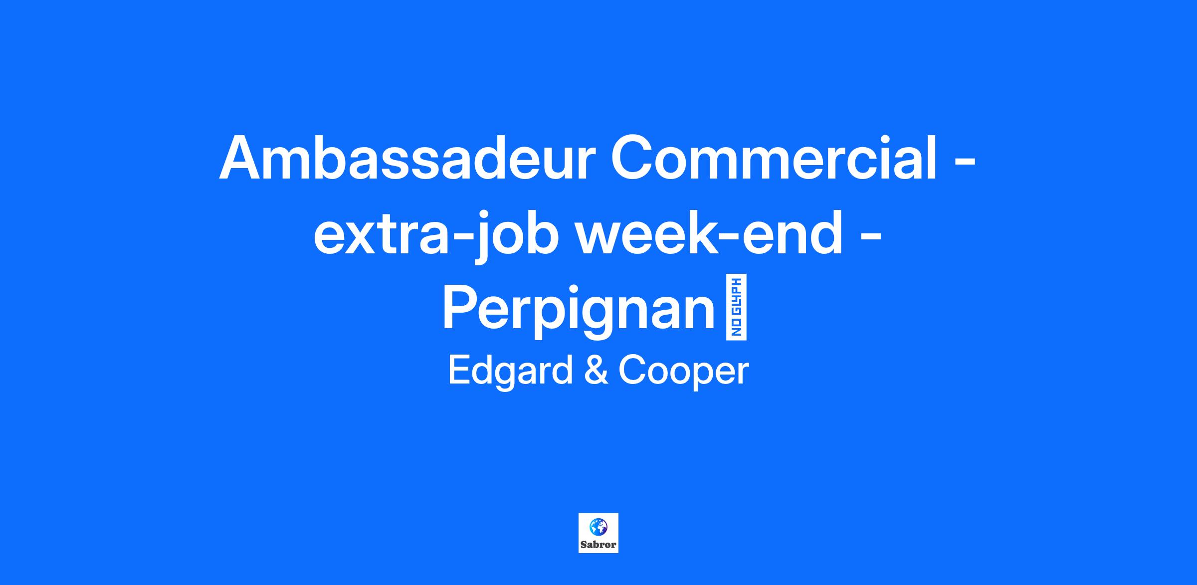 Ambassadeur Commercial - extra-job week-end - Perpignanđ Perpignan, France đŸDeviens Ambassadeur Commercial pour Edgard & Cooper!đŸ Ton nouveau rĂŽle ? Champion de la croquette & pro de la conversation! Tu veux dĂ©velopper tes compĂ©tences en vente, gagner en assurance, et rejoindre une communautĂ© dynamique de passionnĂ©s dâanimaux ? En tant que Brand Activator pour Edgard & Cooper, tu reprĂ©senteras notre alimentation saine pour animaux, Ă base de viande fraĂźche, dans les animaleries et supermarchĂ©s prĂšs de chez toi. Ton rĂŽle : engager de vraies conversations, aider les propriĂ©taires Ă choisir ce quâil y a de mieux pour leurs boules de poils, et leur montrer pourquoi Edgard & Cooper est le choix le plus malin â pour eux et pour leurs animaux. Pourquoi tu vas adorer : đ§ Une formation rĂ©munĂ©rĂ©e pour devenir un.e vrai.e expert.e en pet food đœïž 10 ⏠de panier repas par mission đ Frais de dĂ©placement remboursĂ©s (indemnitĂ© kilomĂ©trique) đ° Un salaire attractif de 13 ⏠brut/heure pour valoriser ton temps et ton engagement đ Salaire doublĂ© le dimanche đ Fais partie dâune communautĂ© pleine dâĂ©nergie : entraide, bonnes vibes et apprentissage garantis đ Un pack de bienvenue avec des goodies Edgard & Cooper pour bien commencer Tu te reconnais dans ce profil dâambassadeur commercial ? PassionnĂ©e par les animaux et la planĂšte, avec lâenvie dâaider les autres Ă faire les bons choix Ă lâaise pour discuter et crĂ©er facilement du lien avec les gens Sympa, sĂ»re de toi, proactive et autonome Envie dâacquĂ©rir de lâexpĂ©rience en vente et en communication Permis de conduire + voiture Ă disposition Ok pour te dĂ©placer jusquâĂ 30 minutes pour rejoindre les magasins Ă lâaise avec lâutilisation dâun smartphone dans le cadre du travail Travail principalement les vendredis et samedis, avec des dimanches occasionnels si nĂ©cessaire IndemnitĂ© kilomĂ©trique : 0,32 ⏠par km, dans la limite de 100 km Ă propos dâEdgard & Cooper Tout a commencĂ© avec deux chiens, Edgard et Cooper. Leurs humains voulaient leur offrir une alimentation vraiment saine et respectueuse de la planĂšte. Faute de trouver ce quâil fallait, ils lâont créée eux-mĂȘmes â Ă base dâingrĂ©dients frais, simples, et bons pour tout le monde. Aujourdâhui, on a vendu plus de 10 millions de sacs, constituĂ© une team de plus de 200 personnes Ă travers lâEurope, et reversĂ© plus de 3 millions dâeuros via notre fondation â tout ça pour rendre les animaux, les humains et la planĂšte un peu plus heureux. Des chances Ă©gales pour tous On croit quâune meute est plus forte quand elle est constituĂ©e de profils divers. Peu importe qui tu es, dâoĂč tu viens, ce que tu crois ou ce qui tâinspire, on a hĂąte de dĂ©couvrir ta candidature. PrĂȘt Ă faire remuer des queues (et sourire les humains) ? Rejoins la meute ! đ€©