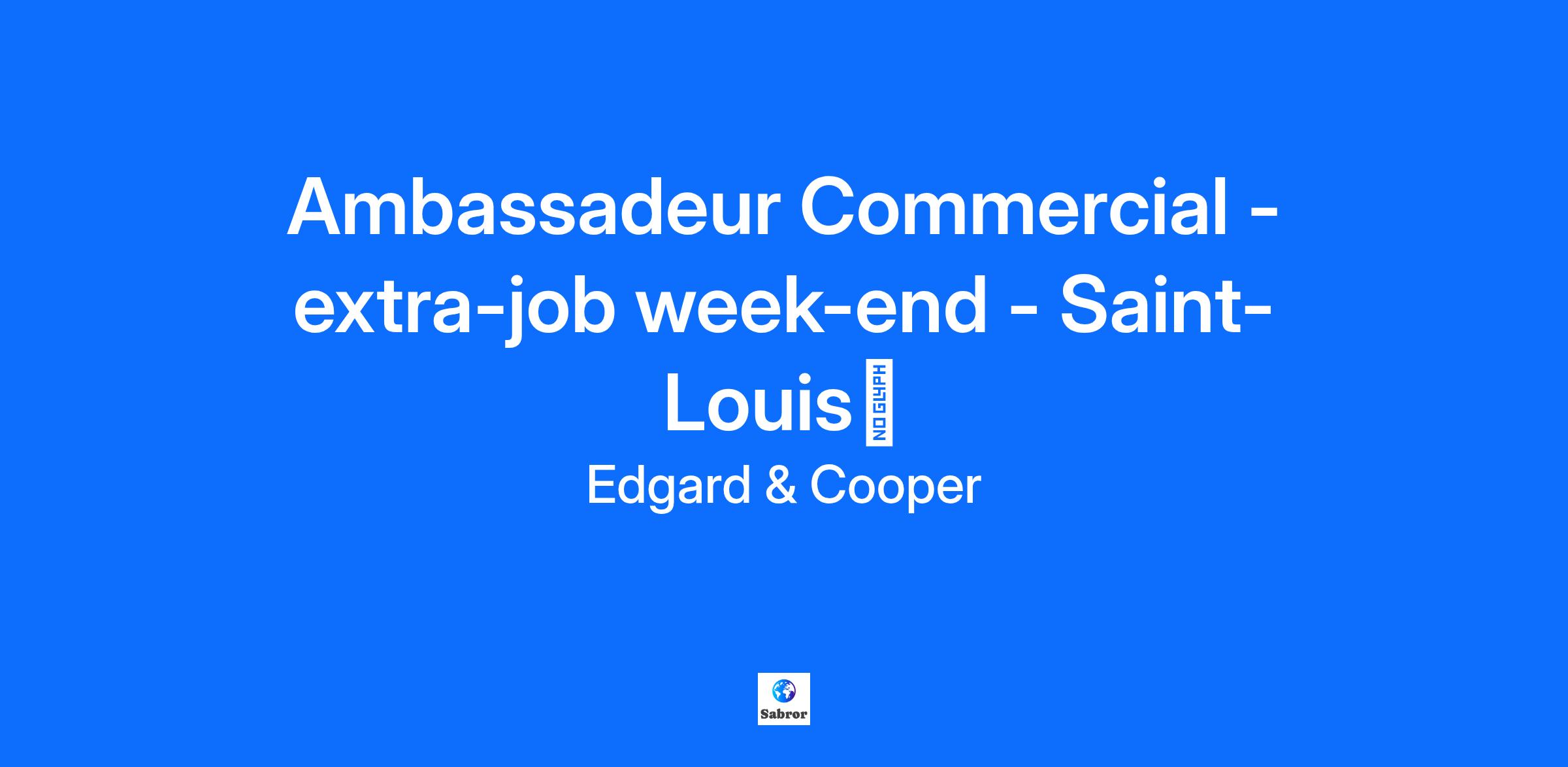Ambassadeur Commercial - extra-job week-end - Saint-Louisđ Saint-Louis, France đŸDeviens Ambassadeur Commercial pour Edgard & Cooper!đŸ Ton nouveau rĂŽle ? Champion de la croquette & pro de la conversation! Tu veux dĂ©velopper tes compĂ©tences en vente, gagner en assurance, et rejoindre une communautĂ© dynamique de passionnĂ©s dâanimaux ? En tant que Brand Activator pour Edgard & Cooper, tu reprĂ©senteras notre alimentation saine pour animaux, Ă base de viande fraĂźche, dans les animaleries et supermarchĂ©s prĂšs de chez toi. Ton rĂŽle : engager de vraies conversations, aider les propriĂ©taires Ă choisir ce quâil y a de mieux pour leurs boules de poils, et leur montrer pourquoi Edgard & Cooper est le choix le plus malin â pour eux et pour leurs animaux. Pourquoi tu vas adorer : đ§ Une formation rĂ©munĂ©rĂ©e pour devenir un.e vrai.e expert.e en pet food đœïž 10 ⏠de panier repas par mission đ Frais de dĂ©placement remboursĂ©s (indemnitĂ© kilomĂ©trique) đ° Un salaire attractif de 13 ⏠brut/heure pour valoriser ton temps et ton engagement đ Salaire doublĂ© le dimanche đ Fais partie dâune communautĂ© pleine dâĂ©nergie : entraide, bonnes vibes et apprentissage garantis đ Un pack de bienvenue avec des goodies Edgard & Cooper pour bien commencer Tu te reconnais dans ce profil dâambassadeur commercial ? PassionnĂ©e par les animaux et la planĂšte, avec lâenvie dâaider les autres Ă faire les bons choix Ă lâaise pour discuter et crĂ©er facilement du lien avec les gens Sympa, sĂ»re de toi, proactive et autonome Envie dâacquĂ©rir de lâexpĂ©rience en vente et en communication Permis de conduire + voiture Ă disposition Ok pour te dĂ©placer jusquâĂ 30 minutes pour rejoindre les magasins Ă lâaise avec lâutilisation dâun smartphone dans le cadre du travail Travail principalement les vendredis et samedis, avec des dimanches occasionnels si nĂ©cessaire IndemnitĂ© kilomĂ©trique : 0,32 ⏠par km, dans la limite de 100 km Ă propos dâEdgard & Cooper Tout a commencĂ© avec deux chiens, Edgard et Cooper. Leurs humains voulaient leur offrir une alimentation vraiment saine et respectueuse de la planĂšte. Faute de trouver ce quâil fallait, ils lâont créée eux-mĂȘmes â Ă base dâingrĂ©dients frais, simples, et bons pour tout le monde. Aujourdâhui, on a vendu plus de 10 millions de sacs, constituĂ© une team de plus de 200 personnes Ă travers lâEurope, et reversĂ© plus de 3 millions dâeuros via notre fondation â tout ça pour rendre les animaux, les humains et la planĂšte un peu plus heureux. Des chances Ă©gales pour tous On croit quâune meute est plus forte quand elle est constituĂ©e de profils divers. Peu importe qui tu es, dâoĂč tu viens, ce que tu crois ou ce qui tâinspire, on a hĂąte de dĂ©couvrir ta candidature. PrĂȘt Ă faire remuer des queues (et sourire les humains) ? Rejoins la meute ! đ€©