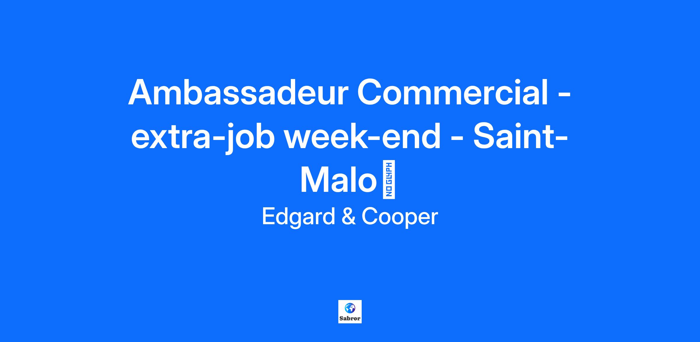 Ambassadeur Commercial - extra-job week-end - Saint-Malođ Saint-Malo, France đŸDeviens Ambassadeur Commercial pour Edgard & Cooper!đŸ Ton nouveau rĂŽle ? Champion de la croquette & pro de la conversation! Tu veux dĂ©velopper tes compĂ©tences en vente, gagner en assurance, et rejoindre une communautĂ© dynamique de passionnĂ©s dâanimaux ? En tant que Brand Activator pour Edgard & Cooper, tu reprĂ©senteras notre alimentation saine pour animaux, Ă base de viande fraĂźche, dans les animaleries et supermarchĂ©s prĂšs de chez toi. Ton rĂŽle : engager de vraies conversations, aider les propriĂ©taires Ă choisir ce quâil y a de mieux pour leurs boules de poils, et leur montrer pourquoi Edgard & Cooper est le choix le plus malin â pour eux et pour leurs animaux. Pourquoi tu vas adorer : đ§ Une formation rĂ©munĂ©rĂ©e pour devenir un.e vrai.e expert.e en pet food đœïž 10 ⏠de panier repas par mission đ Frais de dĂ©placement remboursĂ©s (indemnitĂ© kilomĂ©trique) đ° Un salaire attractif de 13 ⏠brut/heure pour valoriser ton temps et ton engagement đ Salaire doublĂ© le dimanche đ Fais partie dâune communautĂ© pleine dâĂ©nergie : entraide, bonnes vibes et apprentissage garantis đ Un pack de bienvenue avec des goodies Edgard & Cooper pour bien commencer Tu te reconnais dans ce profil dâambassadeur commercial ? PassionnĂ©e par les animaux et la planĂšte, avec lâenvie dâaider les autres Ă faire les bons choix Ă lâaise pour discuter et crĂ©er facilement du lien avec les gens Sympa, sĂ»re de toi, proactive et autonome Envie dâacquĂ©rir de lâexpĂ©rience en vente et en communication Permis de conduire + voiture Ă disposition Ok pour te dĂ©placer jusquâĂ 30 minutes pour rejoindre les magasins Ă lâaise avec lâutilisation dâun smartphone dans le cadre du travail Travail principalement les vendredis et samedis, avec des dimanches occasionnels si nĂ©cessaire IndemnitĂ© kilomĂ©trique : 0,32 ⏠par km, dans la limite de 100 km Ă propos dâEdgard & Cooper Tout a commencĂ© avec deux chiens, Edgard et Cooper. Leurs humains voulaient leur offrir une alimentation vraiment saine et respectueuse de la planĂšte. Faute de trouver ce quâil fallait, ils lâont créée eux-mĂȘmes â Ă base dâingrĂ©dients frais, simples, et bons pour tout le monde. Aujourdâhui, on a vendu plus de 10 millions de sacs, constituĂ© une team de plus de 200 personnes Ă travers lâEurope, et reversĂ© plus de 3 millions dâeuros via notre fondation â tout ça pour rendre les animaux, les humains et la planĂšte un peu plus heureux. Des chances Ă©gales pour tous On croit quâune meute est plus forte quand elle est constituĂ©e de profils divers. Peu importe qui tu es, dâoĂč tu viens, ce que tu crois ou ce qui tâinspire, on a hĂąte de dĂ©couvrir ta candidature. PrĂȘt Ă faire remuer des queues (et sourire les humains) ? Rejoins la meute ! đ€©